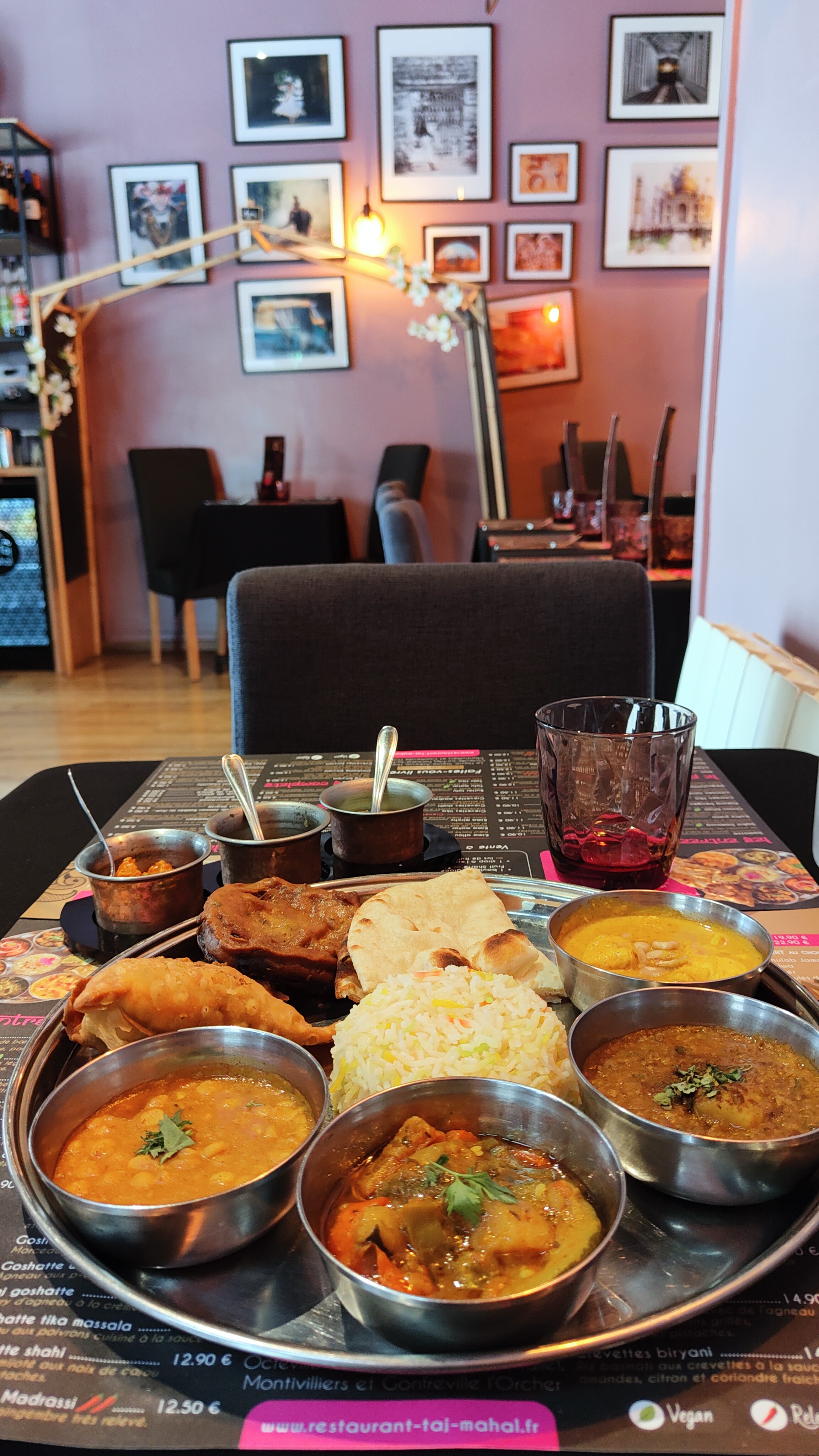 J'ai offert un dîner Thali pour découvrir avec mon compagnon, délicieux, beaucoup de choix sur le plateau, je recommande, d ailleurs il m invite pour mon anniversaire samedi soir. Hâte 👍 Page Facebook Saint François d aujourd'hui et d hier Le 04 décembre 2023 Dîner chez nous, repas thaly mets raffinés goûts excellents, nous nous sommes régalés, A recommander pour un repas en amoureux. Merci à toute l équipe du Taj Mahal. Au plaisir. Martine et Fabrice