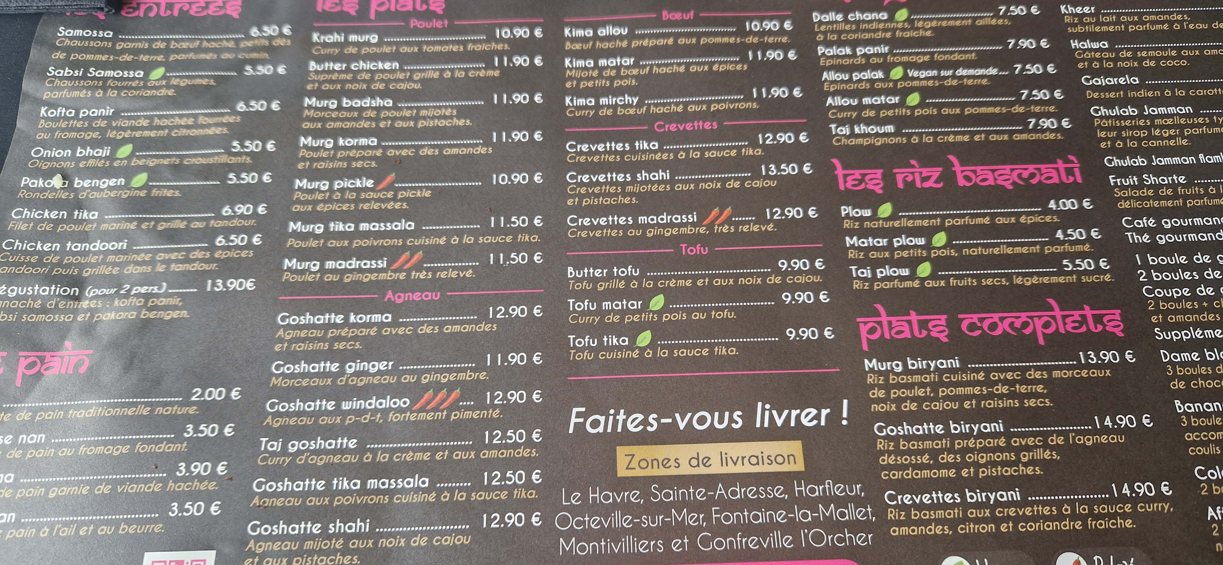 Je suis une grande habituée du restaurant et c’est pour moi le meilleur restaurant Indien du Havre. Les serveurs et la serveuse sont accueillants, sympathiques et très attentionnés. Jamais déçue, à chaque fois que ce soit à emporter ou sur place c’est toujours aussi bon.