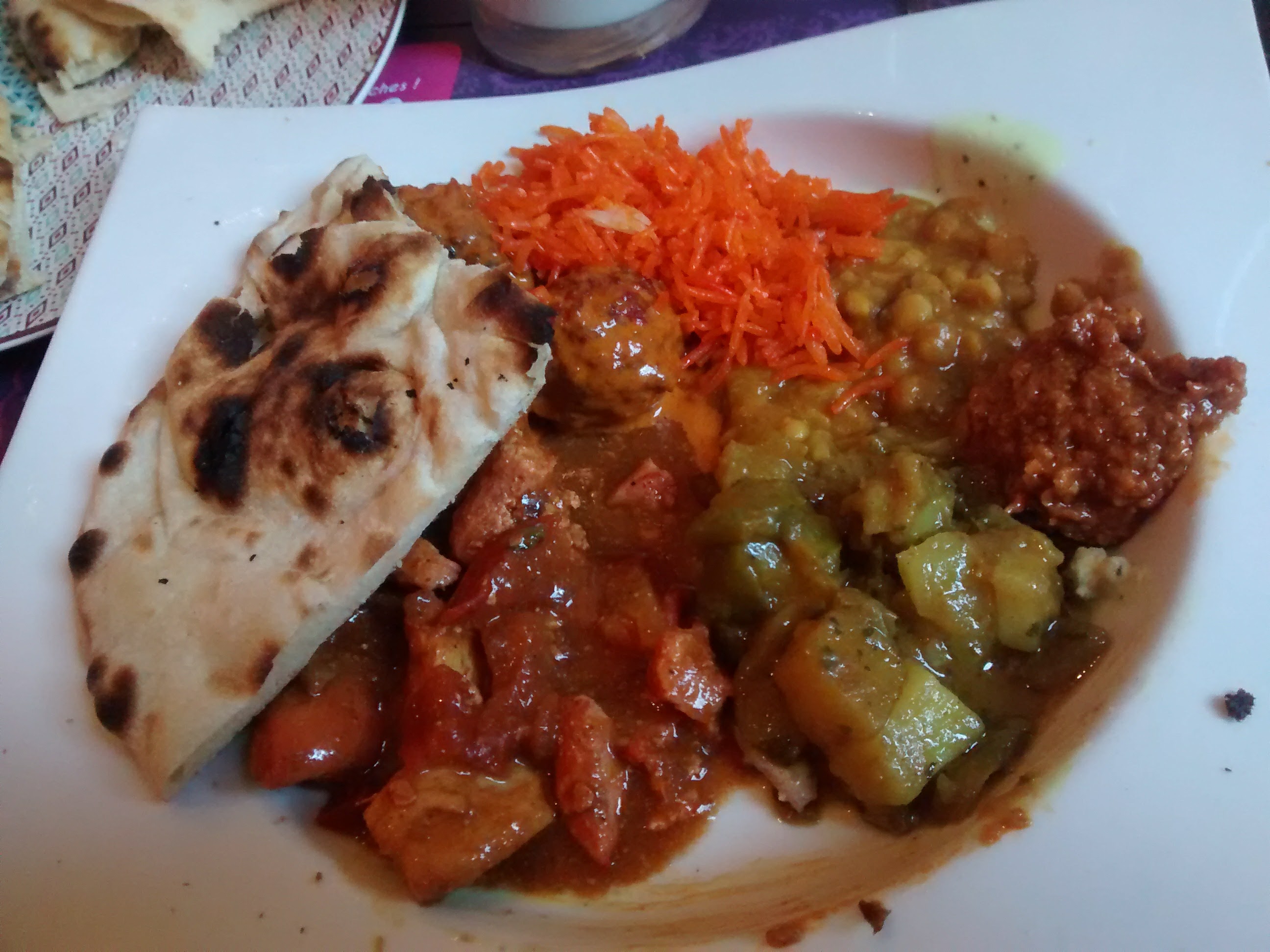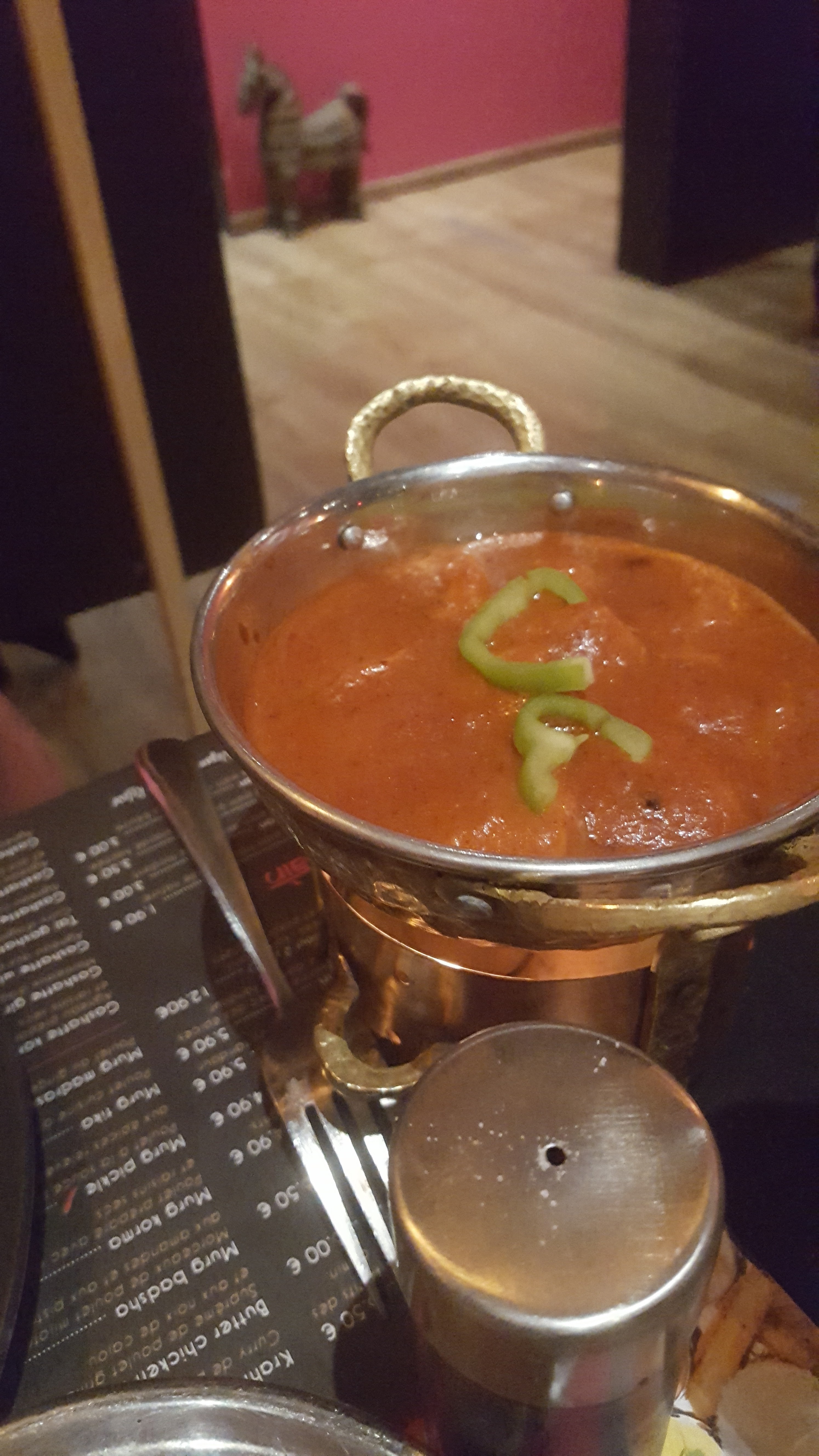 Un lieu convivial, un bon service bien que lent. Les entrées sont excellentes, pour les plats nous avons pris un agneau Windalloo et un butter chicken. Les viandes étaient un peu sèches. Malgré cela c'est une bonne table, plutôt bien située.