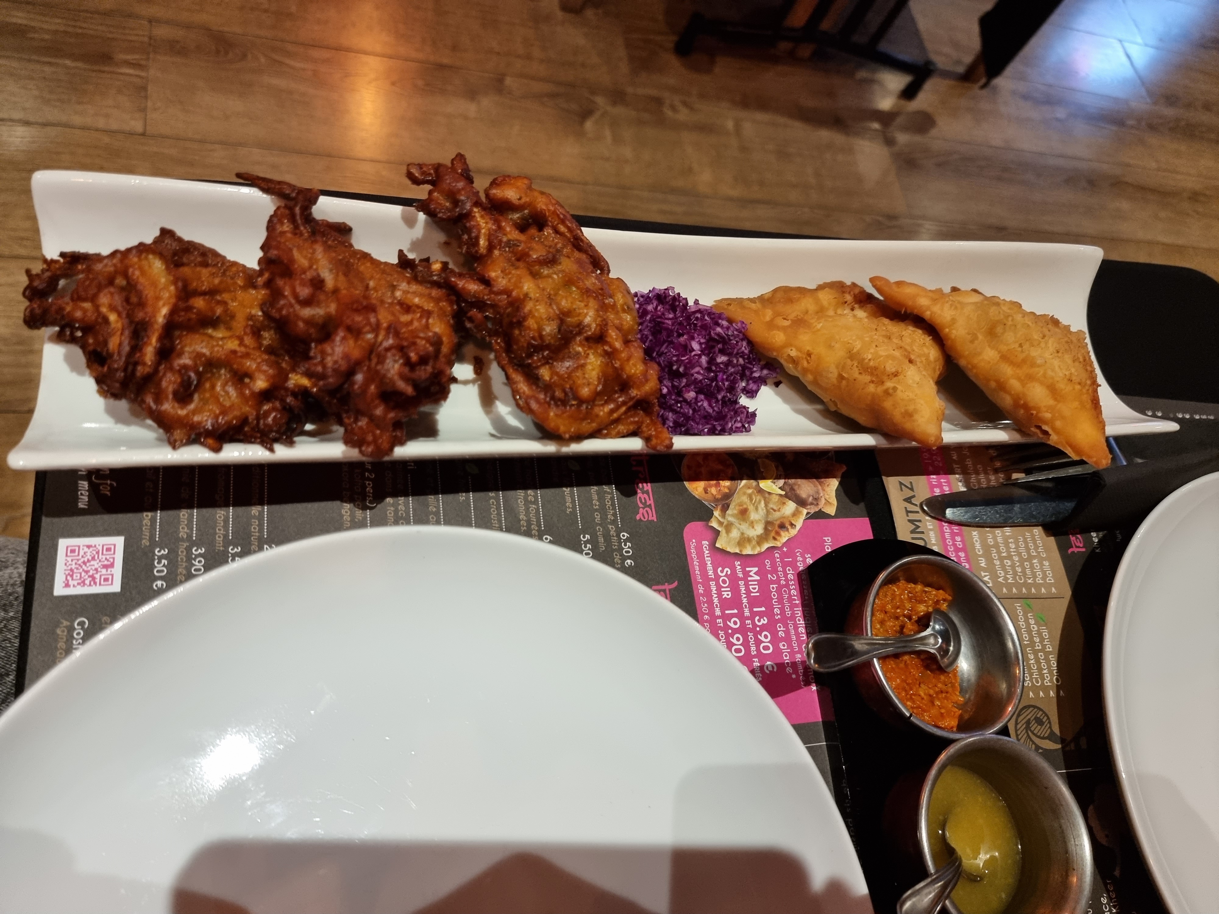 Très bonne surprise ce restaurant indien. Un délice. Sucré salé. Épicé mais pas forcément piquant. Plat généreux et même des samoussas frits ne sont pas gras. Le pain au fromage est un incontournable. On reviendra ou on commandera vu que c'est possible aussi. 👍