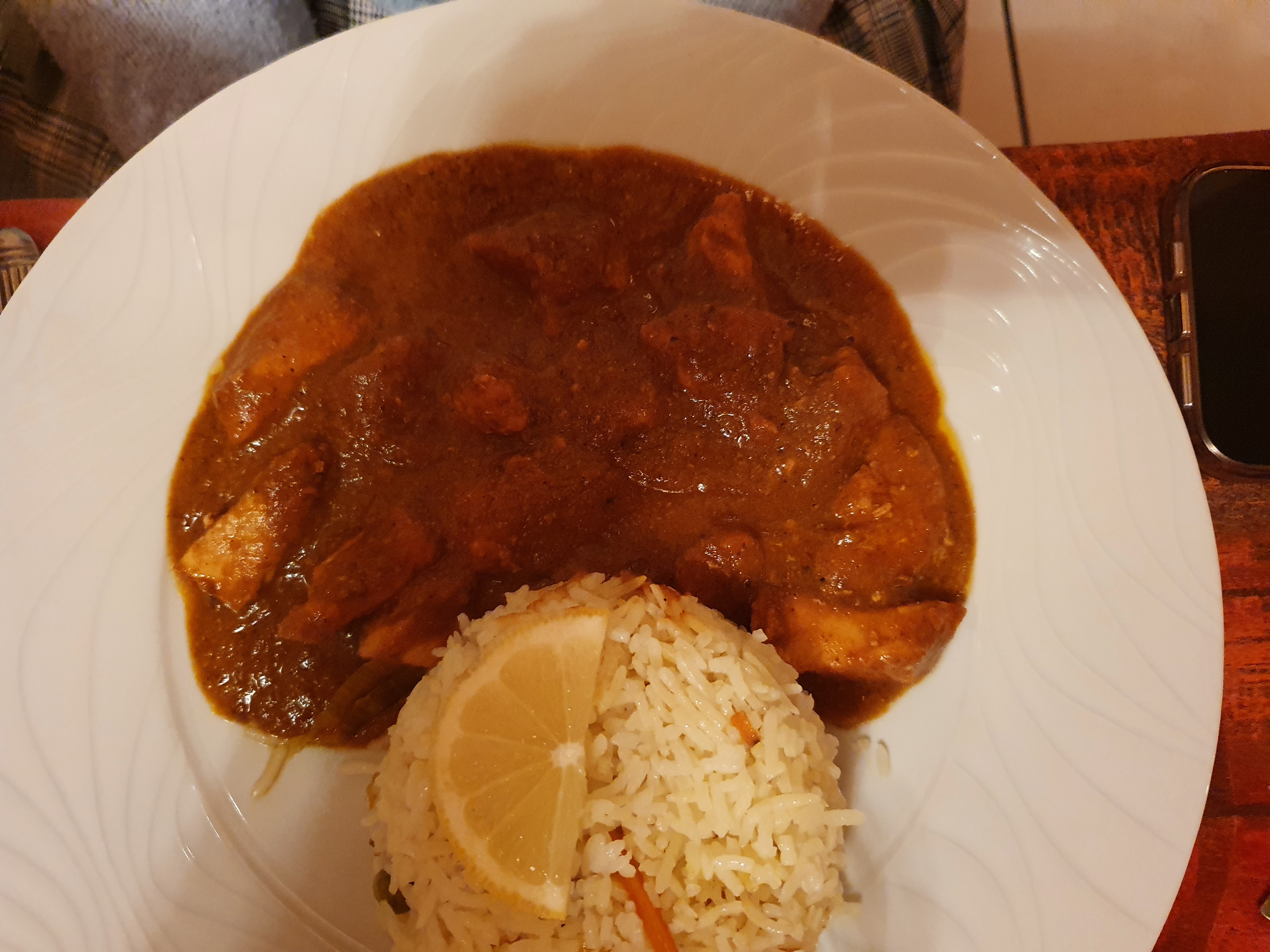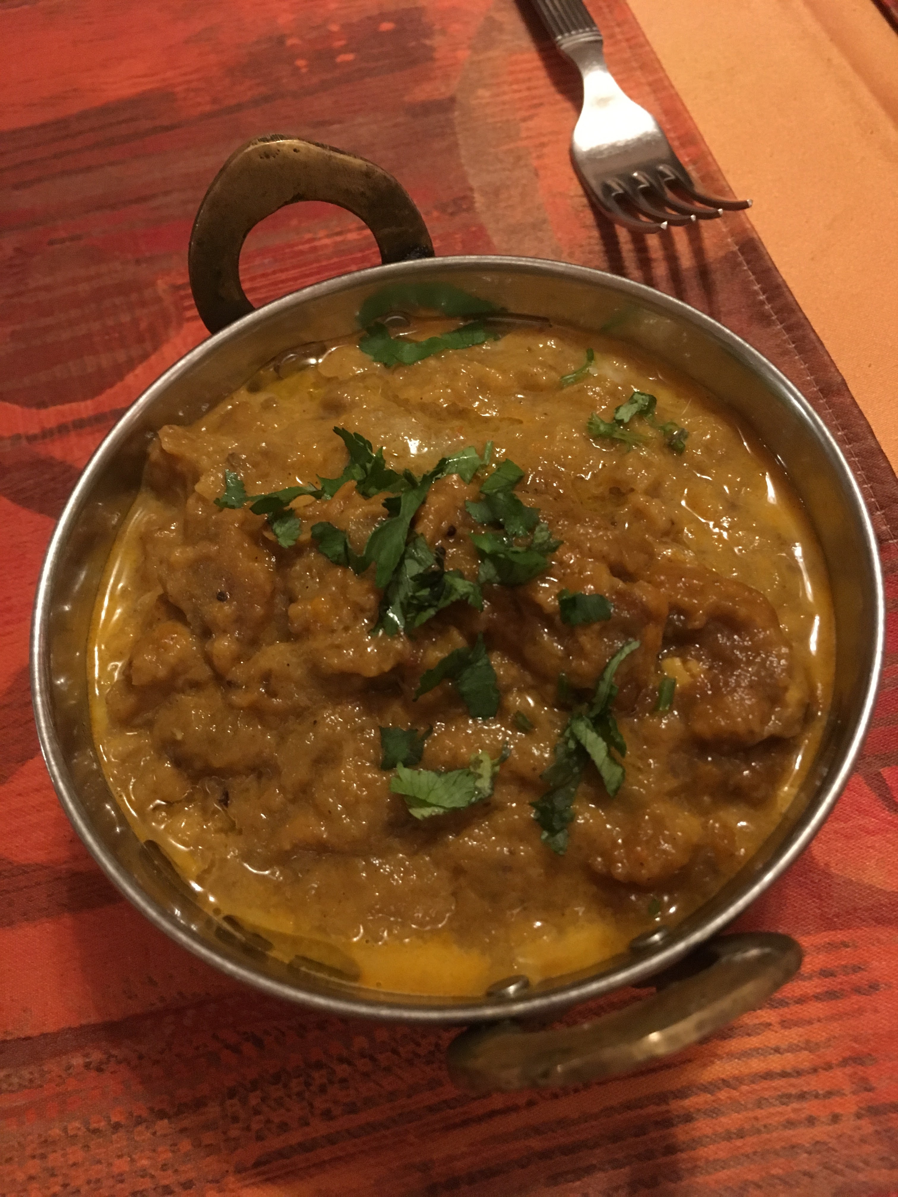 Rien quand entrant dans le restaurant on sent les épices 😊 Ça donne vraiment l'eau à la bouche. Pas déçue du repas 😀 excellent.