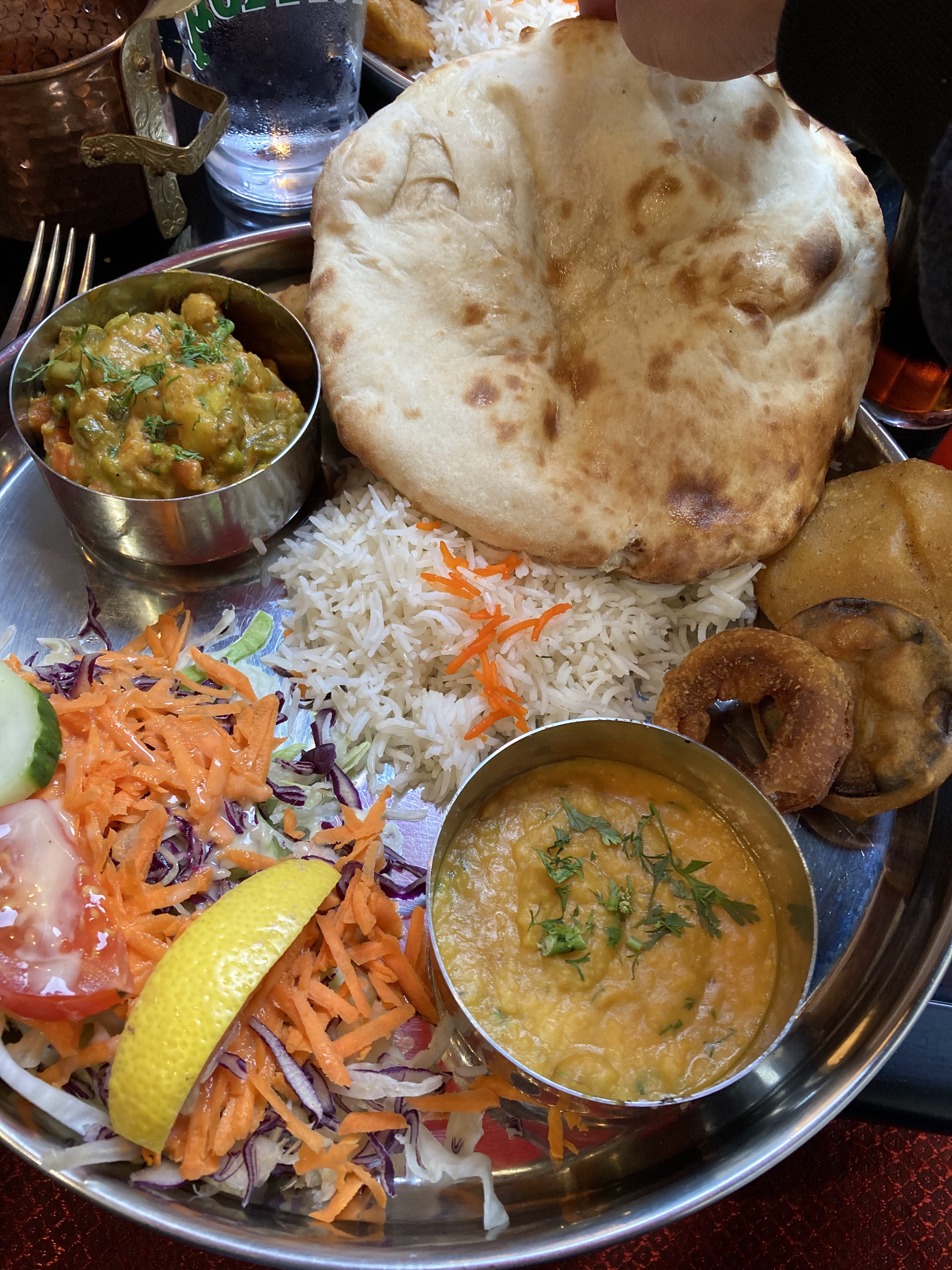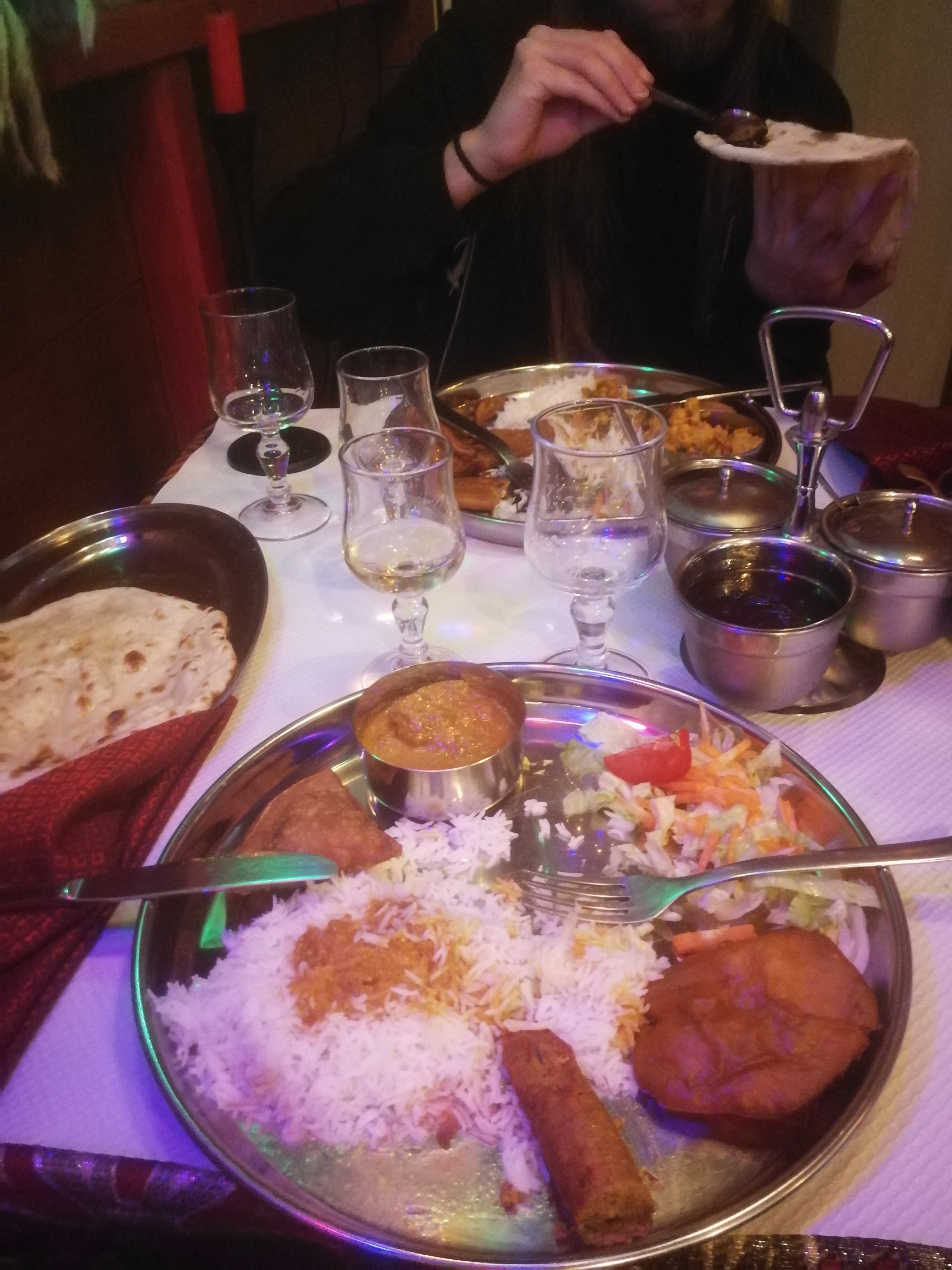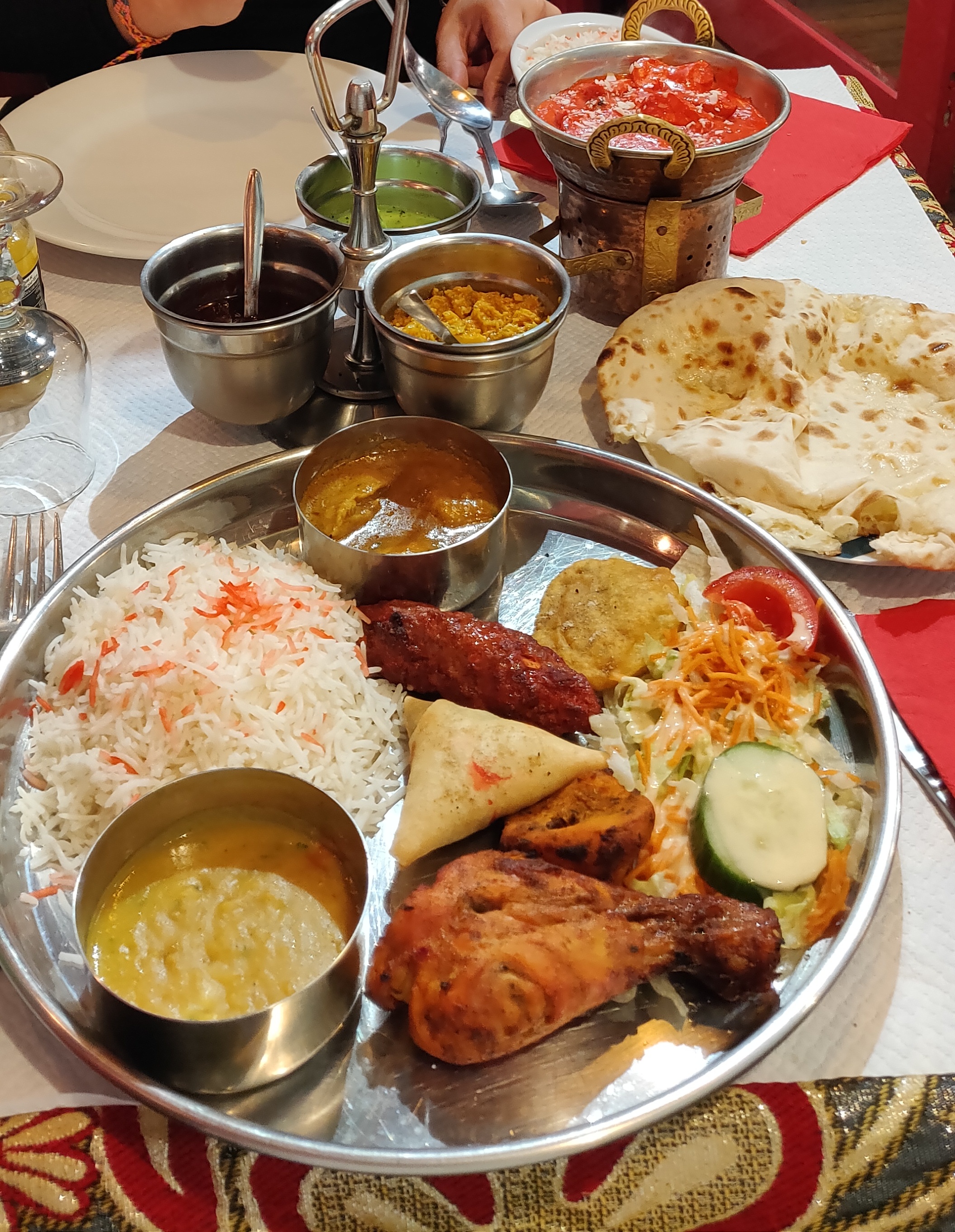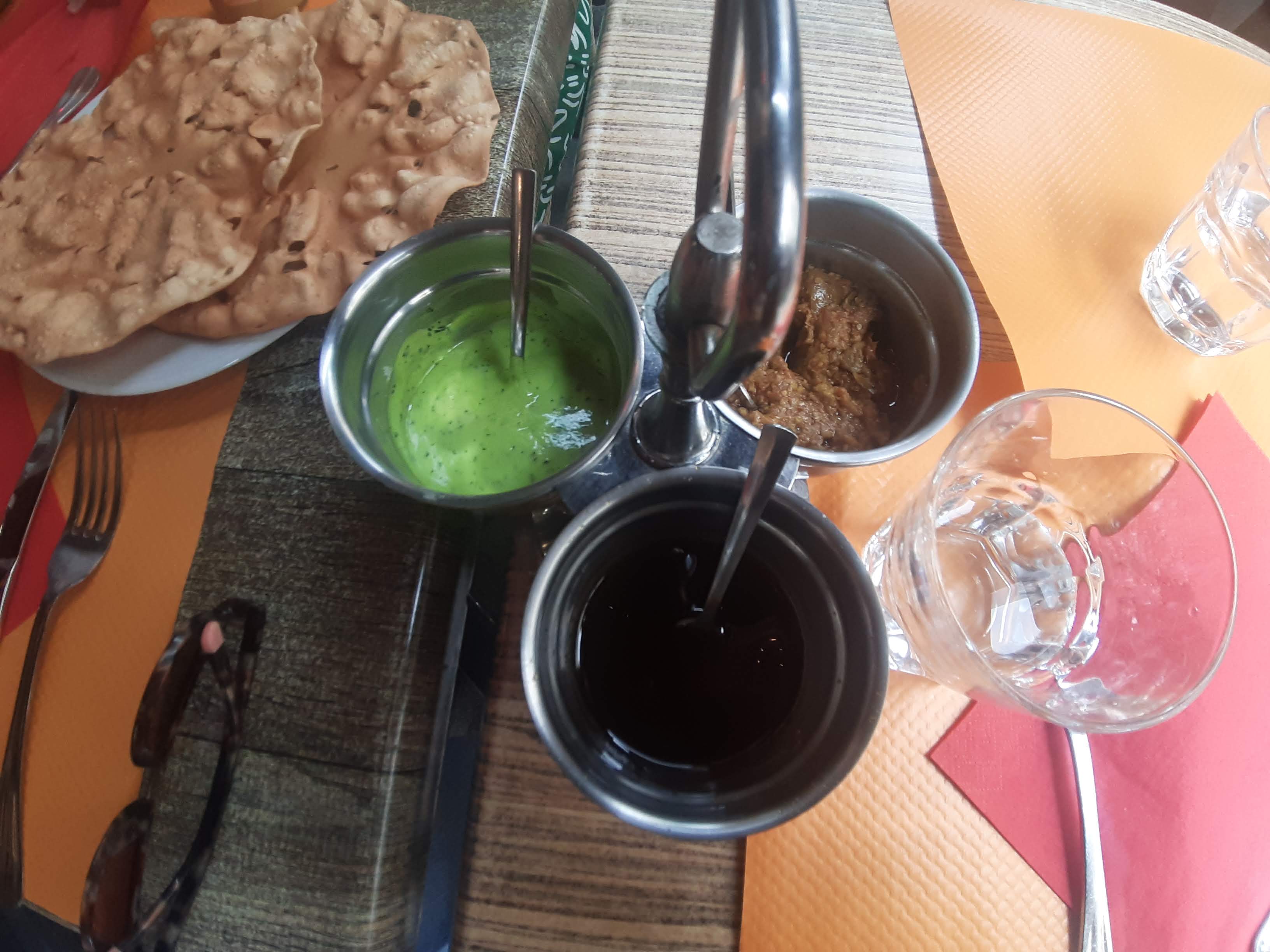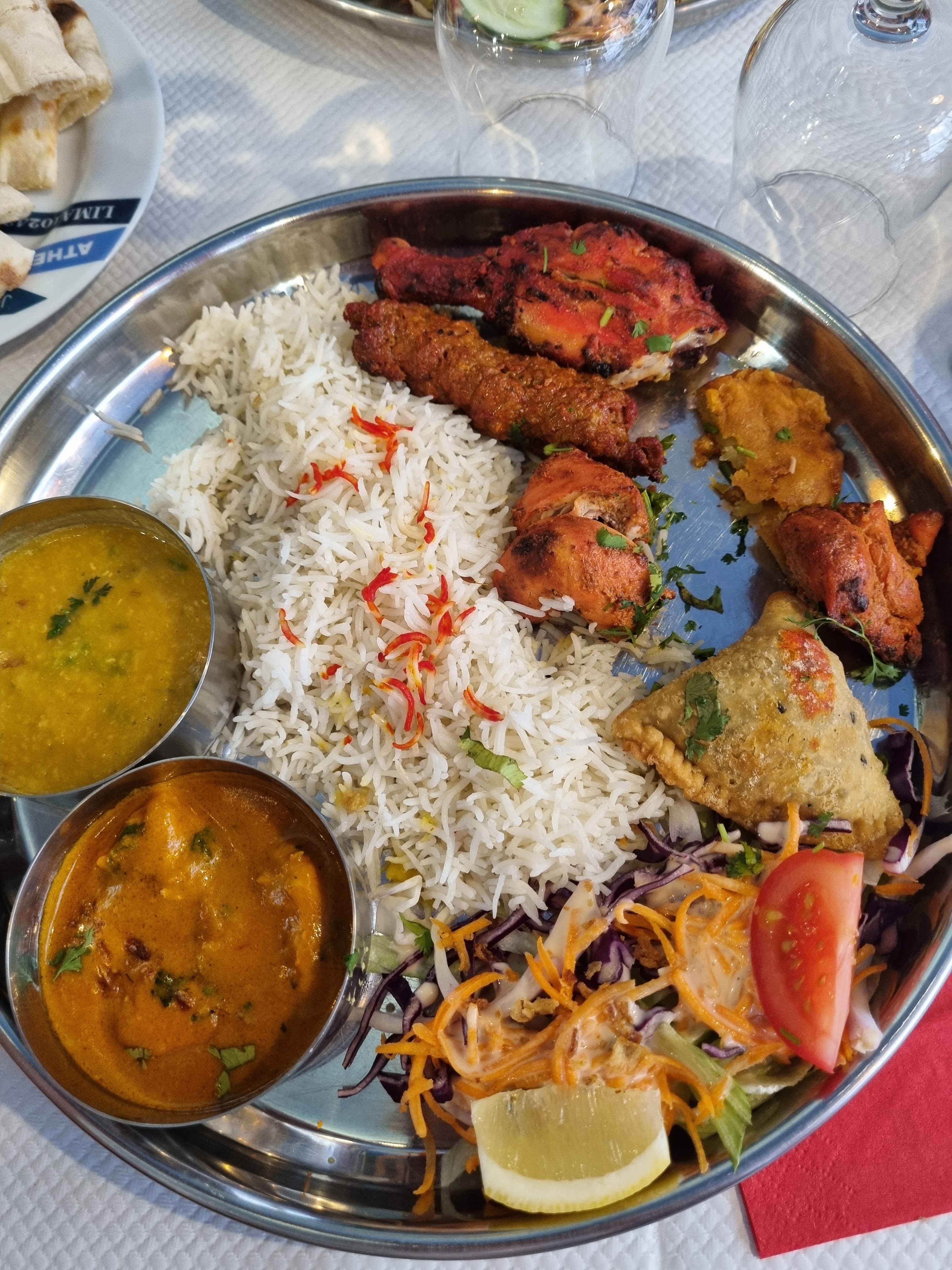 Si on veut découvrir les plats indien, je conseille le menu découverte à 21€. Il y a même un menu à 10,90€. Le manger est bon mais malheureusement ce n’est pas ce que je préfère. Le menu découverte, il y a plein de petit « amuses bouches » suivi d’un plat principal. Par contre leur poulet aux épices des amuses bouches était très bon! Le personnel est gentil. Dommage qu’ils ne proposent que des glaces et une pâtisserie pour le désert. C’est bien pour essayer indien mais je ne pense pas y retourner (mais juste pour des raisons de préférences personnelles).