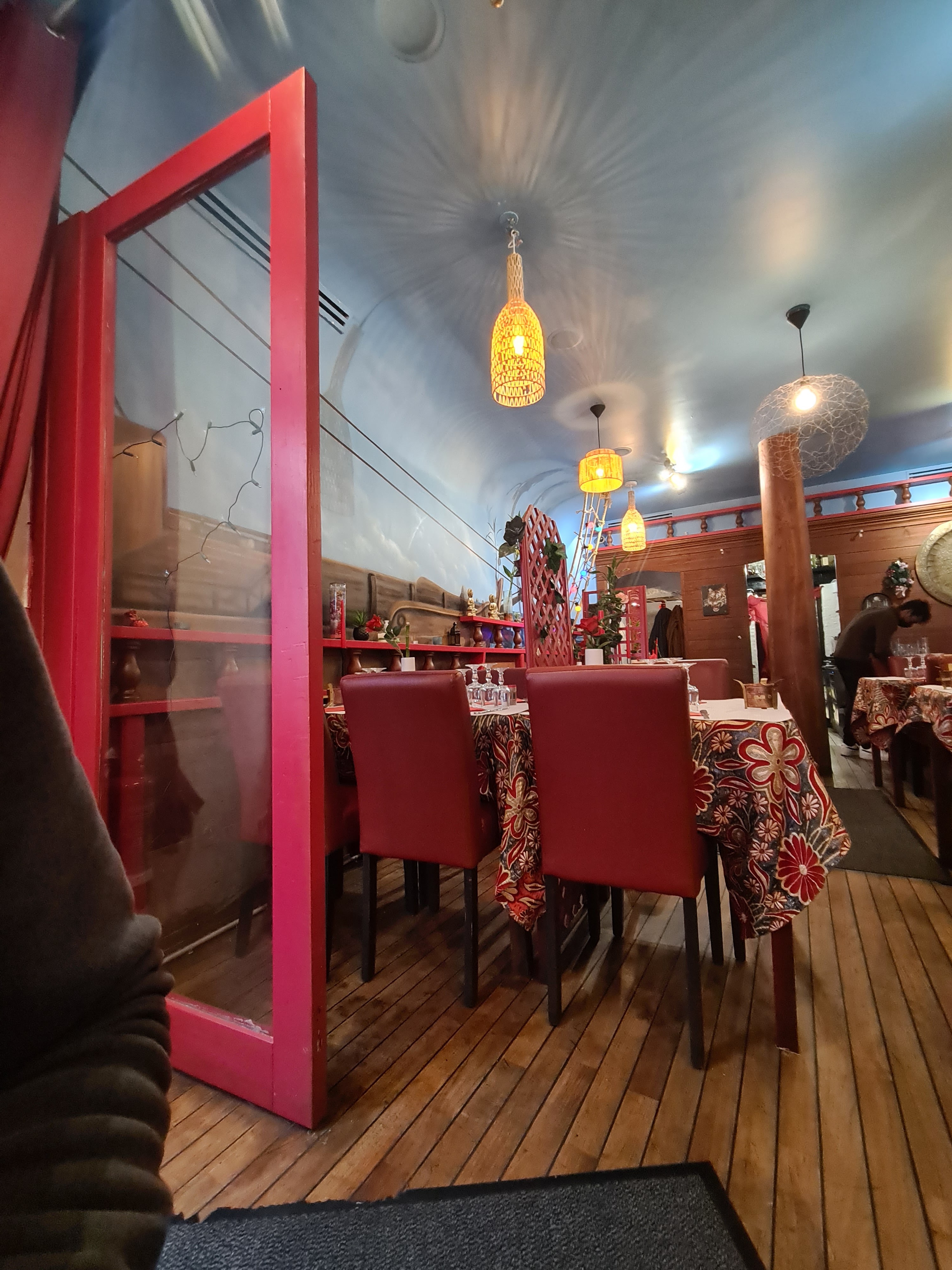 Restaurant joliment décoré situé dans une rue vivante et chaleureuse, les plats y sont nombreux et savamment parfumés !