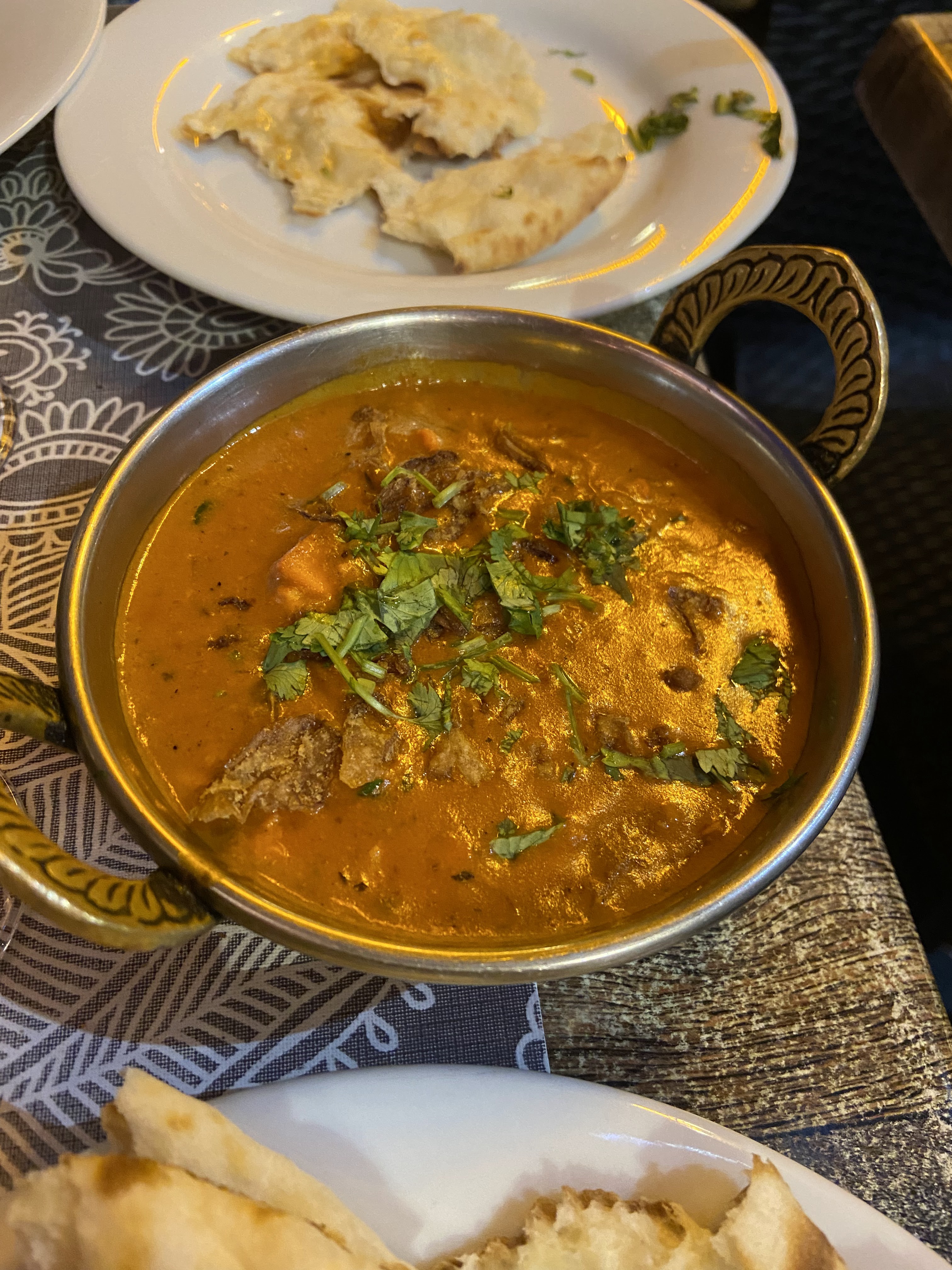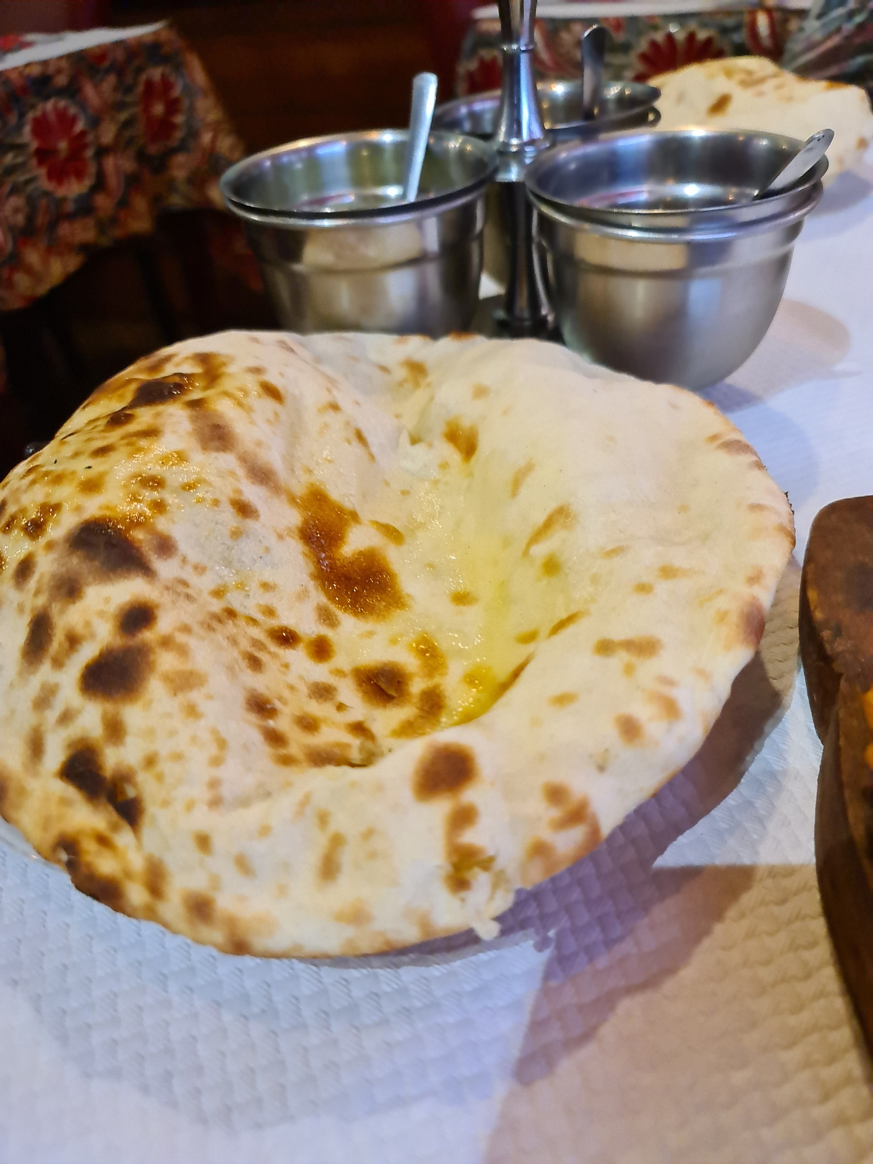 Mon restaurant indien préféré ! Dépaysement garanti. Le butter chicken et les naan au fromage ❤️ savoureux, copieux et bien chaud
