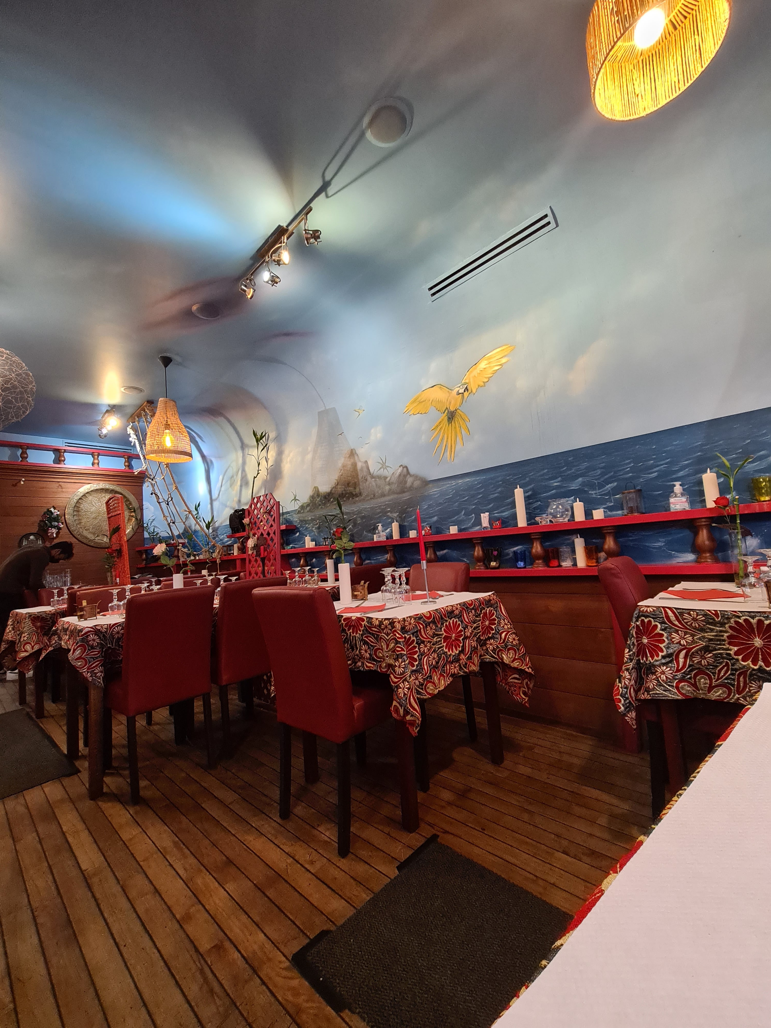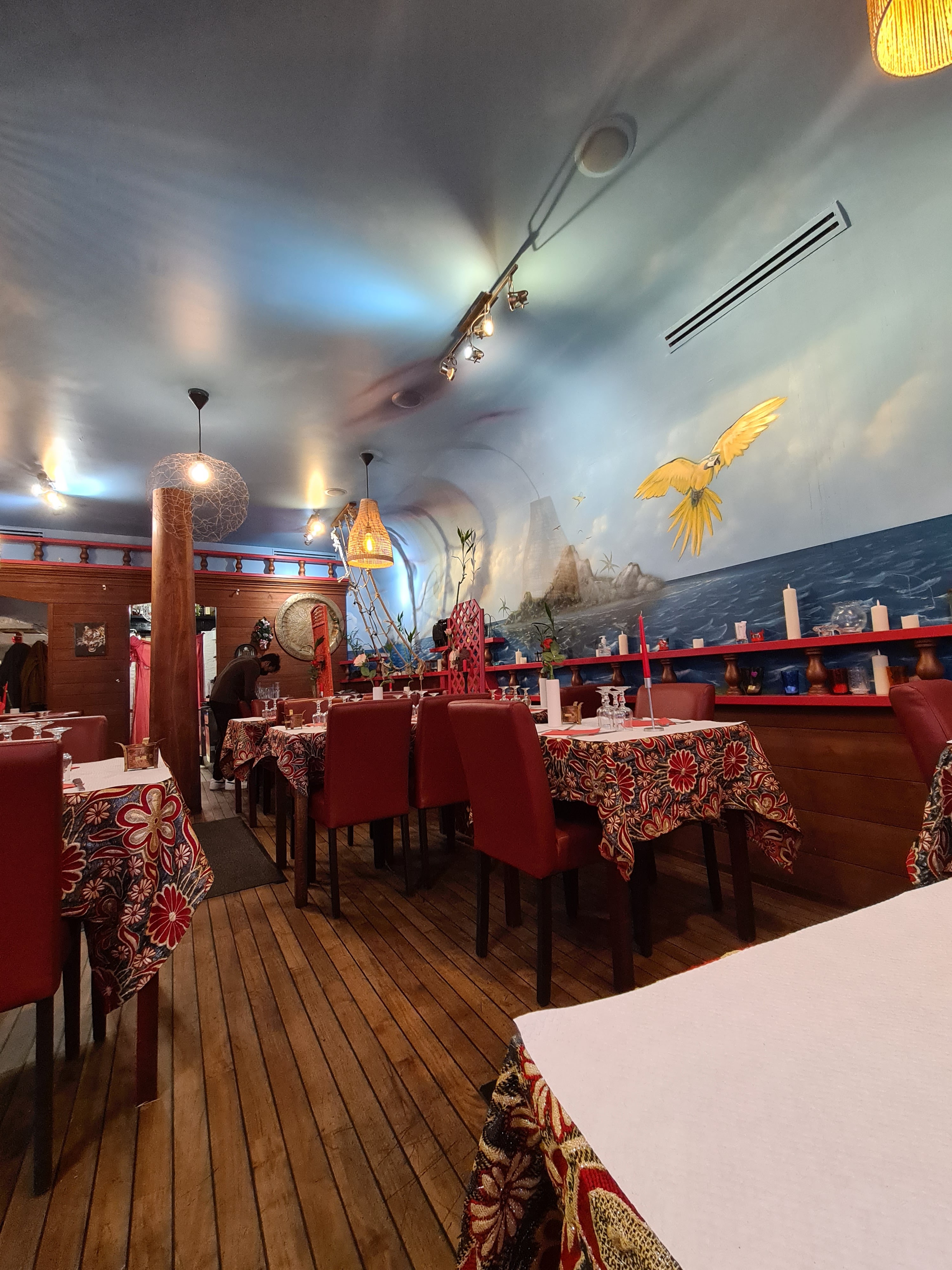 un lieu agréable, avec de jolies fresques et décoration. le cadre est donc convivial et le personnel est très aimable et Poli. en ce qui concerne la nourriture, j'ai trouvé les gambas (entrée) un peu chère, mais ne connaissant pas les prix du marché je ne préfère pas m'avancer, cependant le repas était vraiment succulent, la quantité était généreuse, et on se sent nourri à la fin du repas je recommande ;)