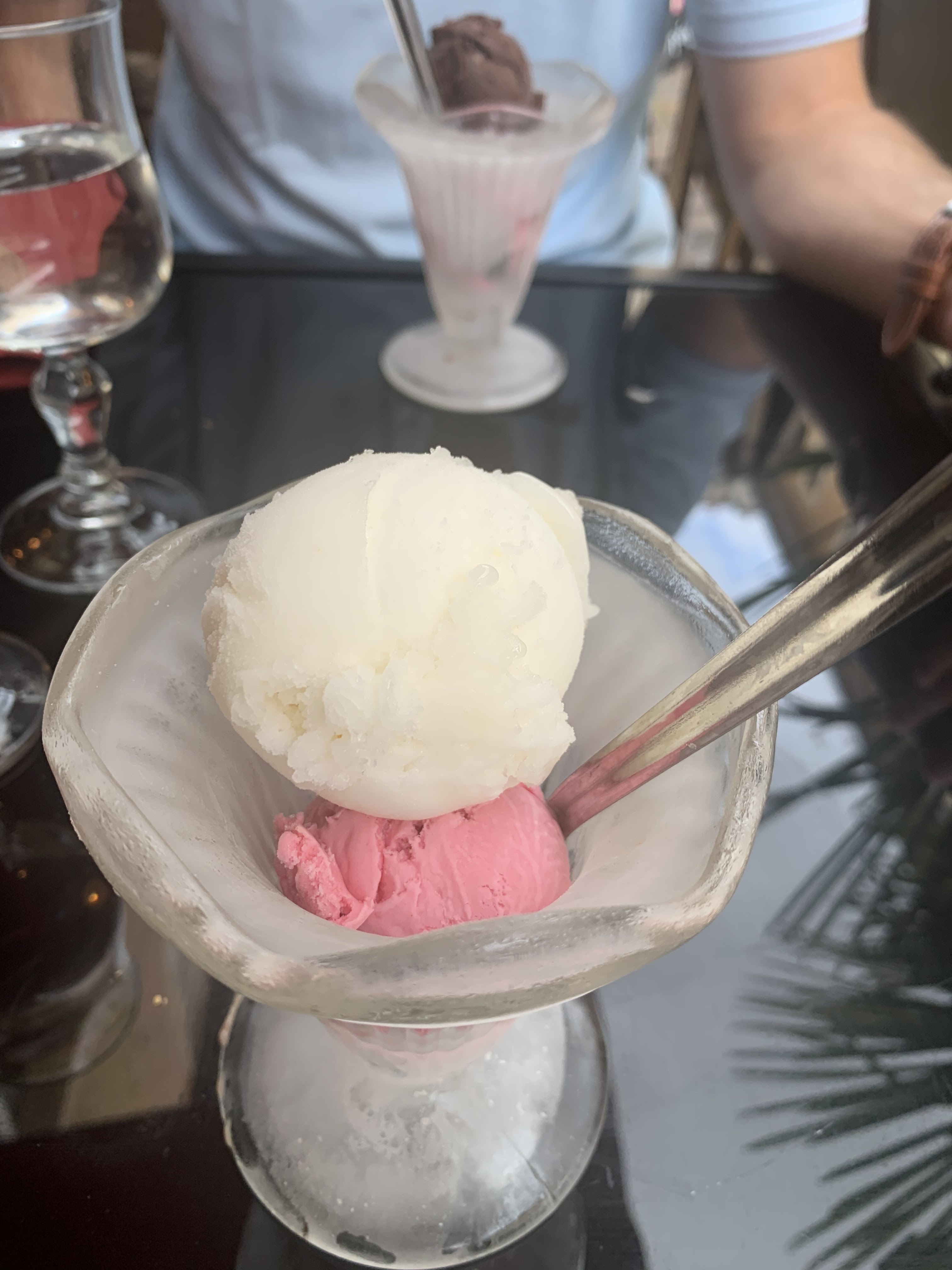 Plutôt sympa J’ai bien aimé le naan au fromage et les aiguillettes de poulet.👍🏼 Pour ceux qui on du mal avec la coriandre, pensez à demander de l’enlever pour le plat au curry, l’arrière-goût n’était pas top pour moi. Glaces classiques Service classique
