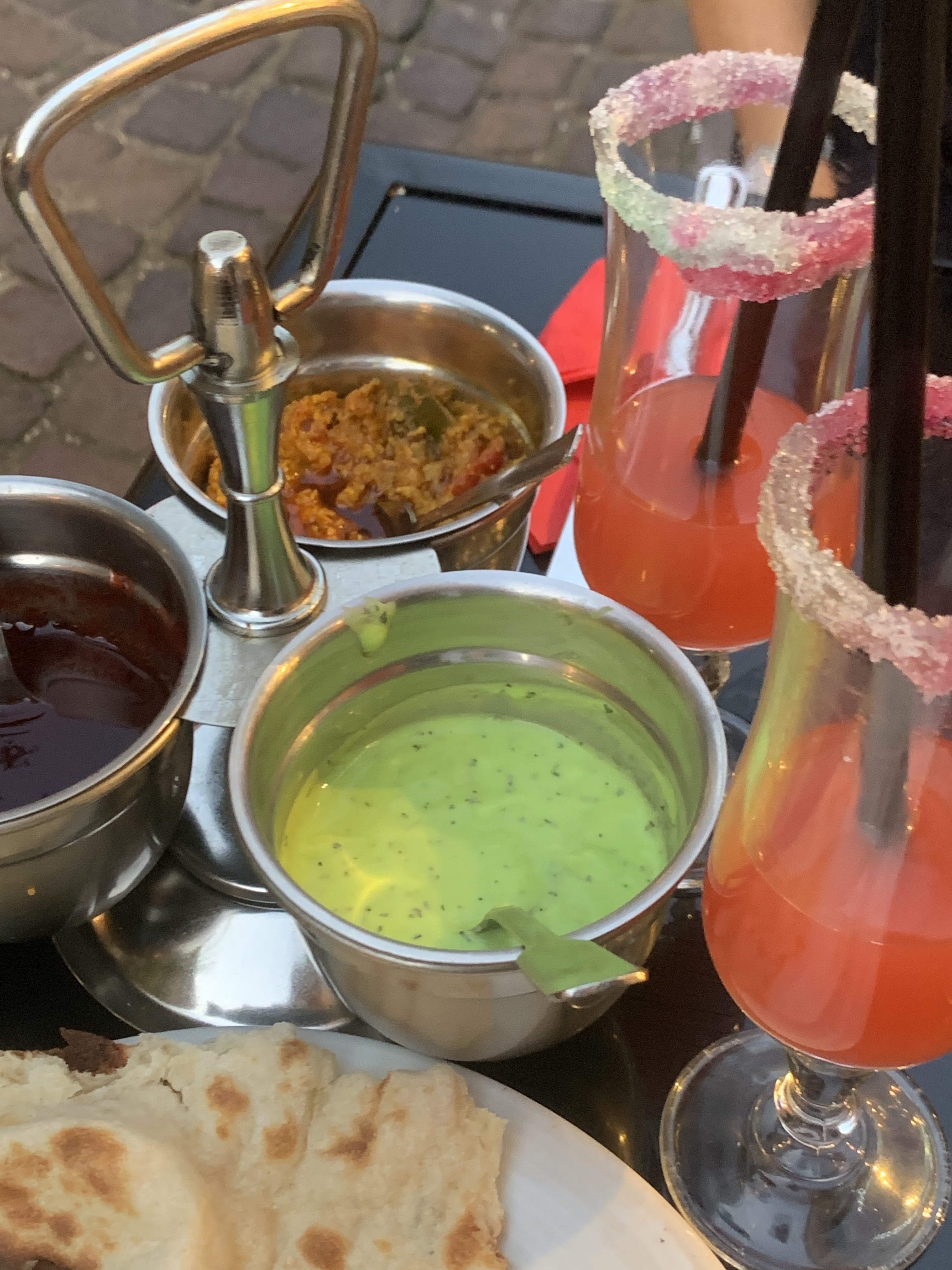 Rapport qualité prix très intéressant. J'ai pris un Lassi à la mangue, il est excellent. Les naans, trempés dans la sauce des plats sont délicieux...bref un repas agréable, un restaurant ambiance indienne avec des fresques que j'ai beaucoup aimés. Très bon accueil.