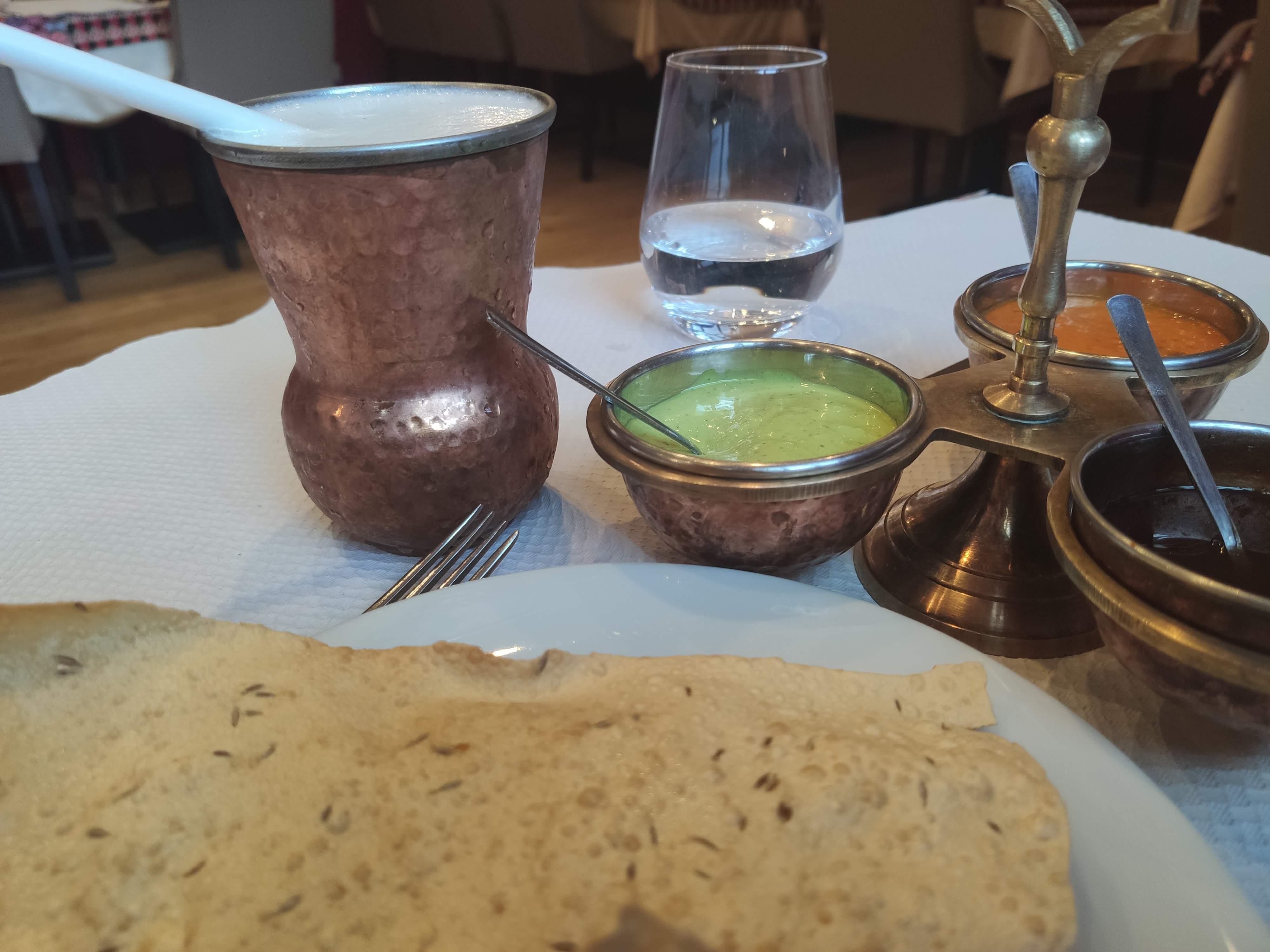 J'ai pris le nimbu pani en boisson (gingembre, citron). C'est très bon, les serveurs sont très sympathiques et l'ambiance est sobre. Il n'y avait personne le samedi soir. Le plat remplit bien, il n'est pas conseillé de prendre plus qu'une viande et un riz.