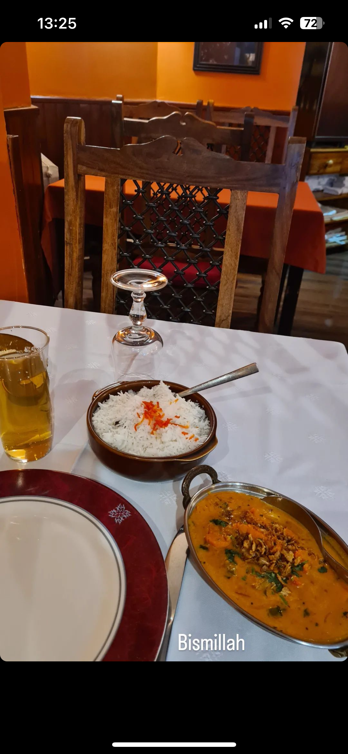 Une découverte surprenante faite y a 3 ans. Le byriani au poulet est une spécialité à goûter absolument. Le marahani pakora est également un excellent starter ( ou entrée) pour commencer. Le lassi mangue est quant à lui très frais et très apprécié lors du dessert ou en été. Le service est impeccable, les serveurs sont très courtois. Les toilettes valent également le détour car très peu commune ^^ Pour les amoureux de la cuisine épicée, il est possible de relever les plats. Il suffit juste de le demander au serveur. Comme vous l aurez deviné, je suis une adepte de ce restaurant et je le recommande vivement.