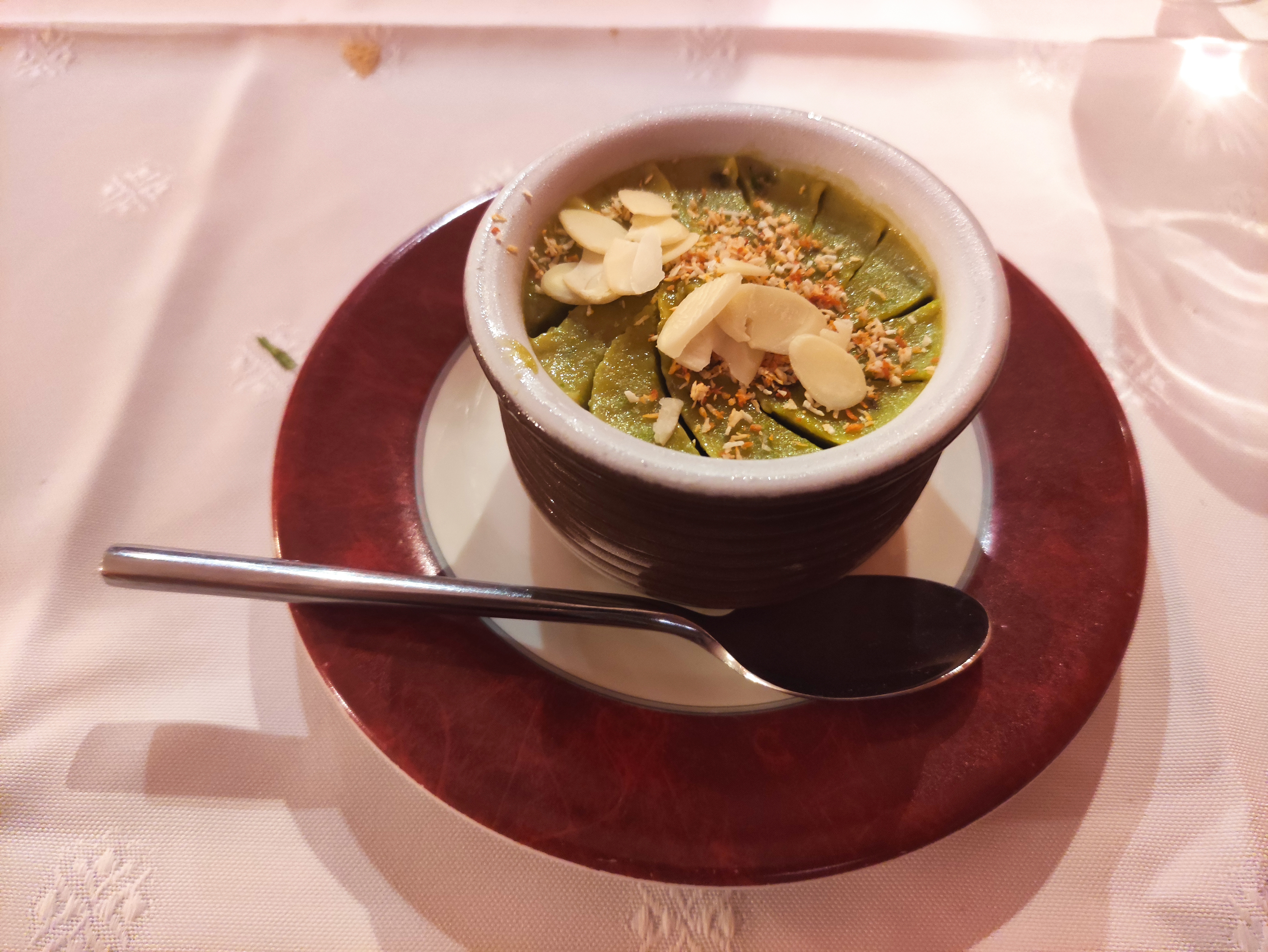Service discret et efficace. Plats très dépaysants et raffinés. J y retournerais a coup sûr.