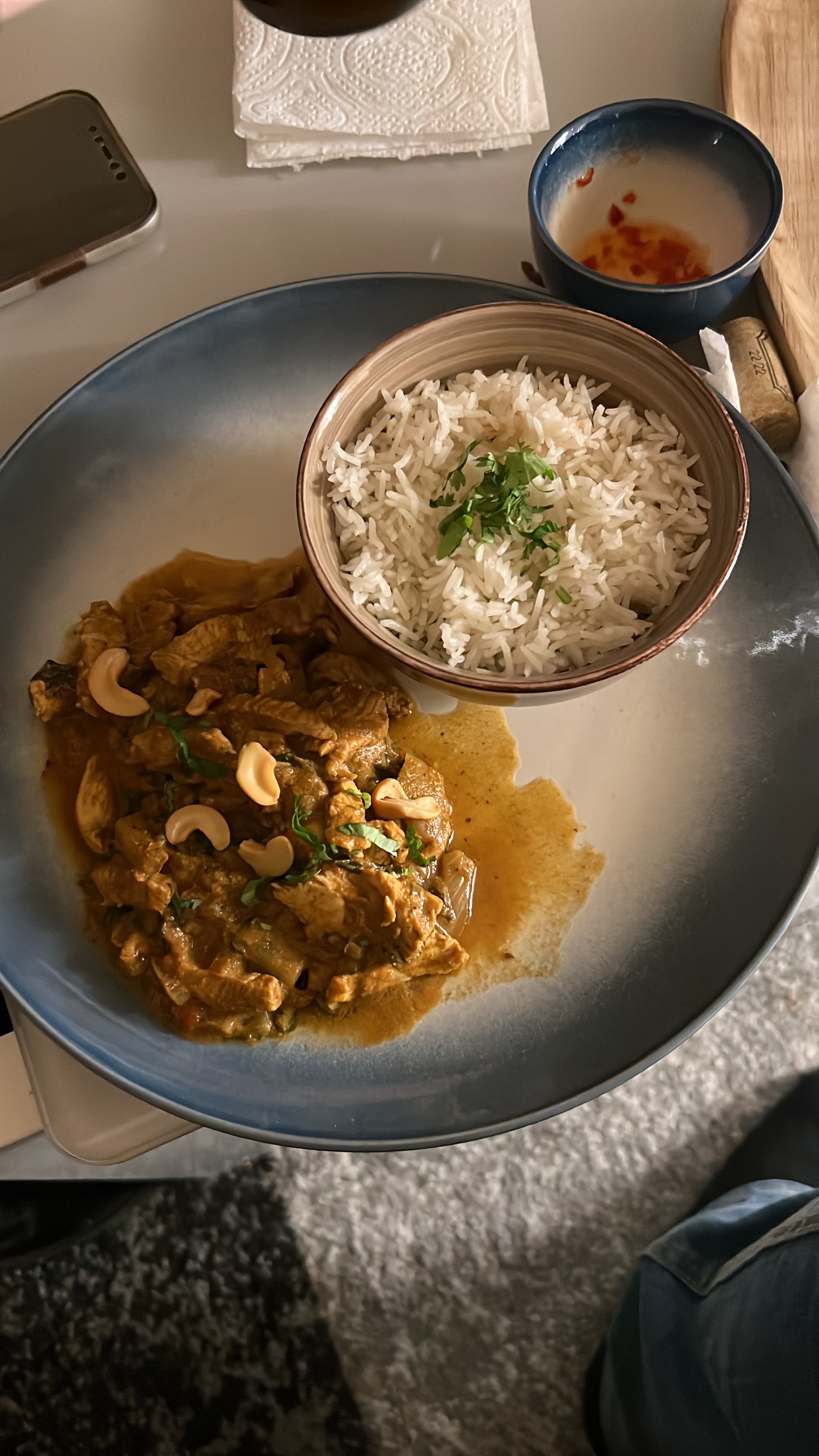 Menu midi à 19e avec un nan au fromage en sus 😁 Le poulet curry n'était pas à mon goût je préfère le blanc ce qui n'était pas le cas mais la sauce était parfaite par contre😍 Les épinards étaient bons. Je trouve qu'il n'y avait pas beaucoup de riz c'est dommage... Le raïta bof bof aussi sans plus... Le gâteau semoule raisins secs tiède par contre était excellent gros coup de ❤ Le serveur était super sympa et souriant et le restaurant très joliment décoré 😊 Je recommande pour le prix mini du menu midi et le service 😌