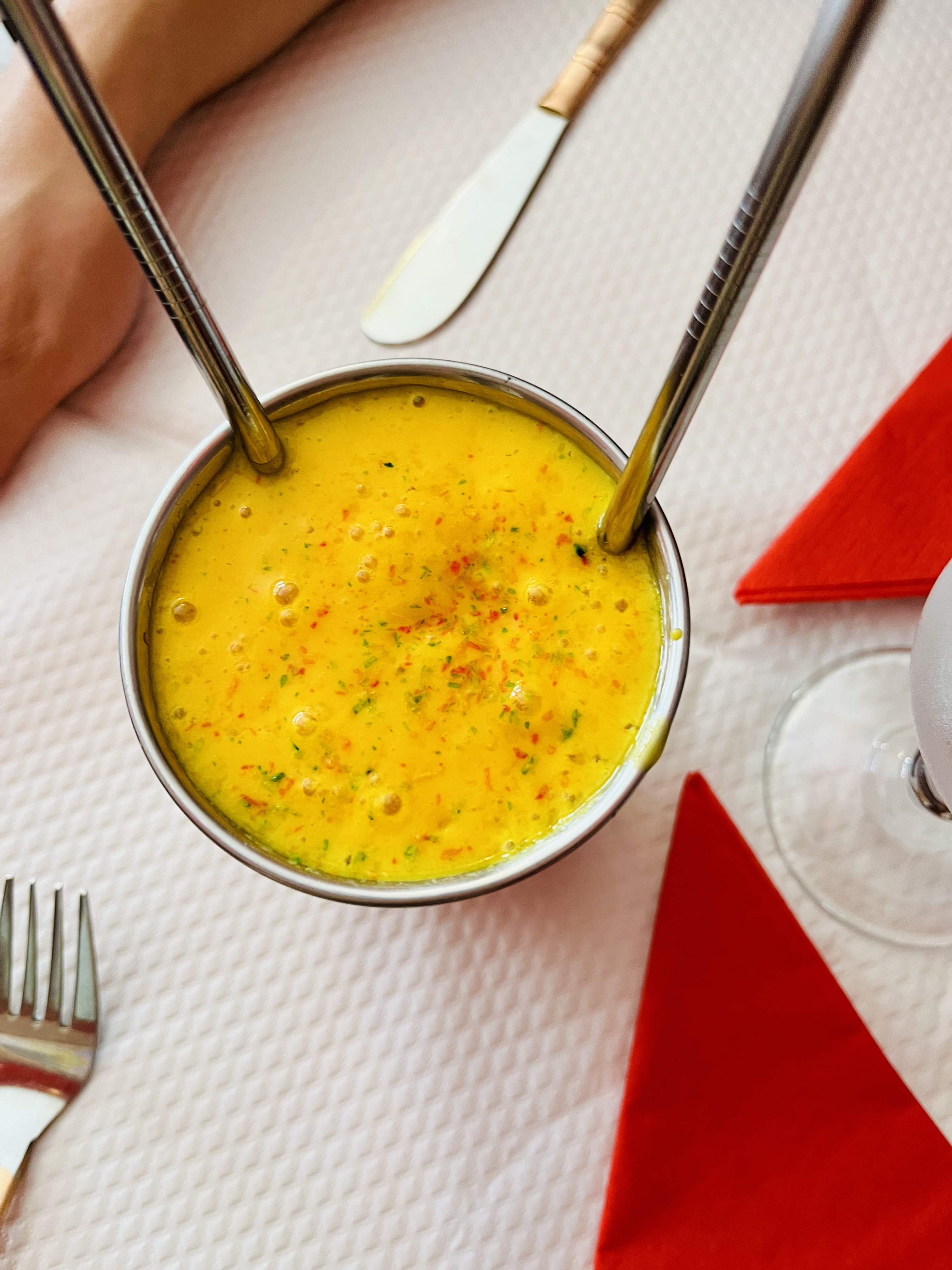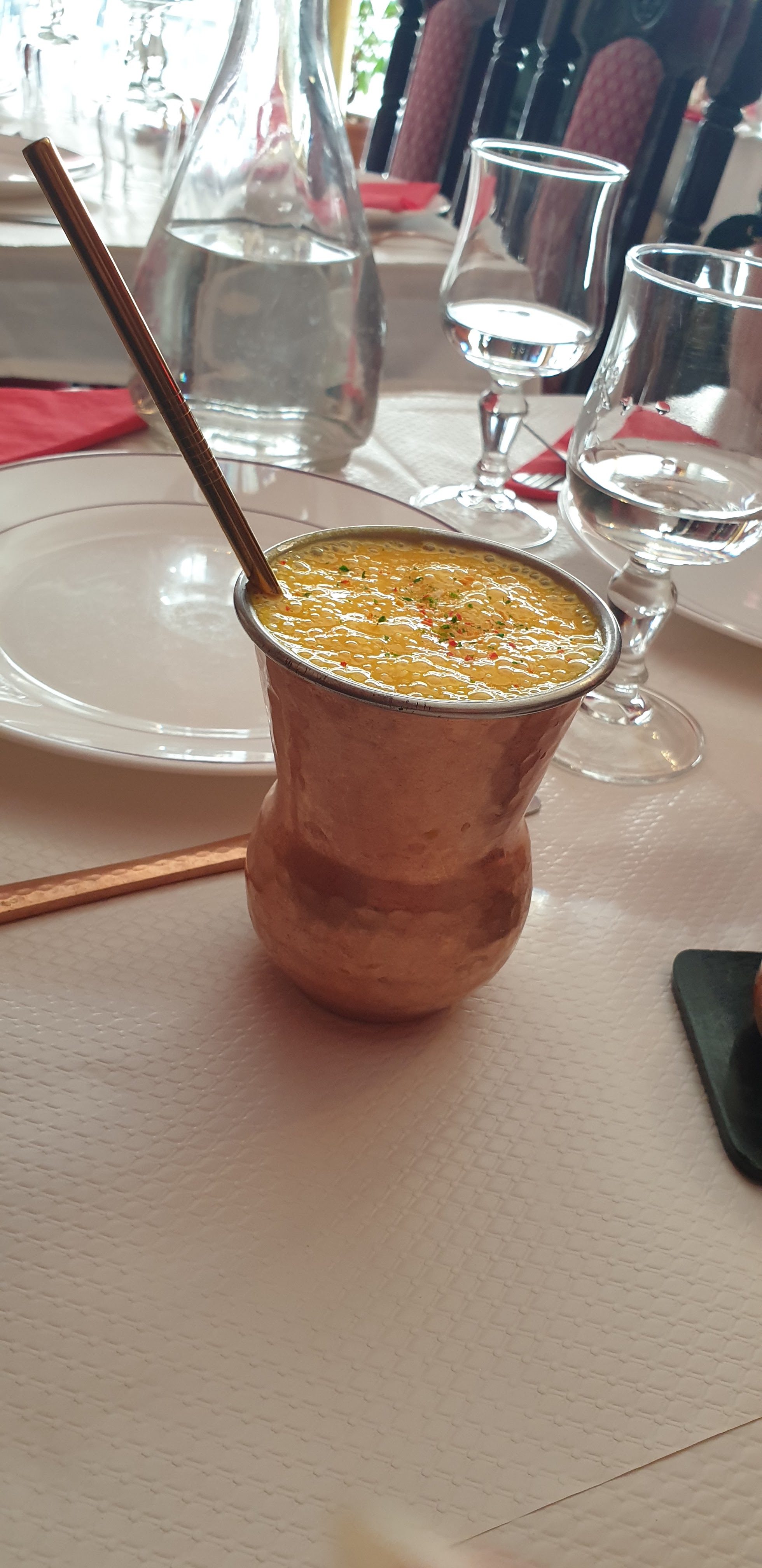 Excellente cuisine, belle présentation sur table (on a tous nos petits chauffe-plat) Très calme, pas de musique, service discret Un moment de plaisir complet.