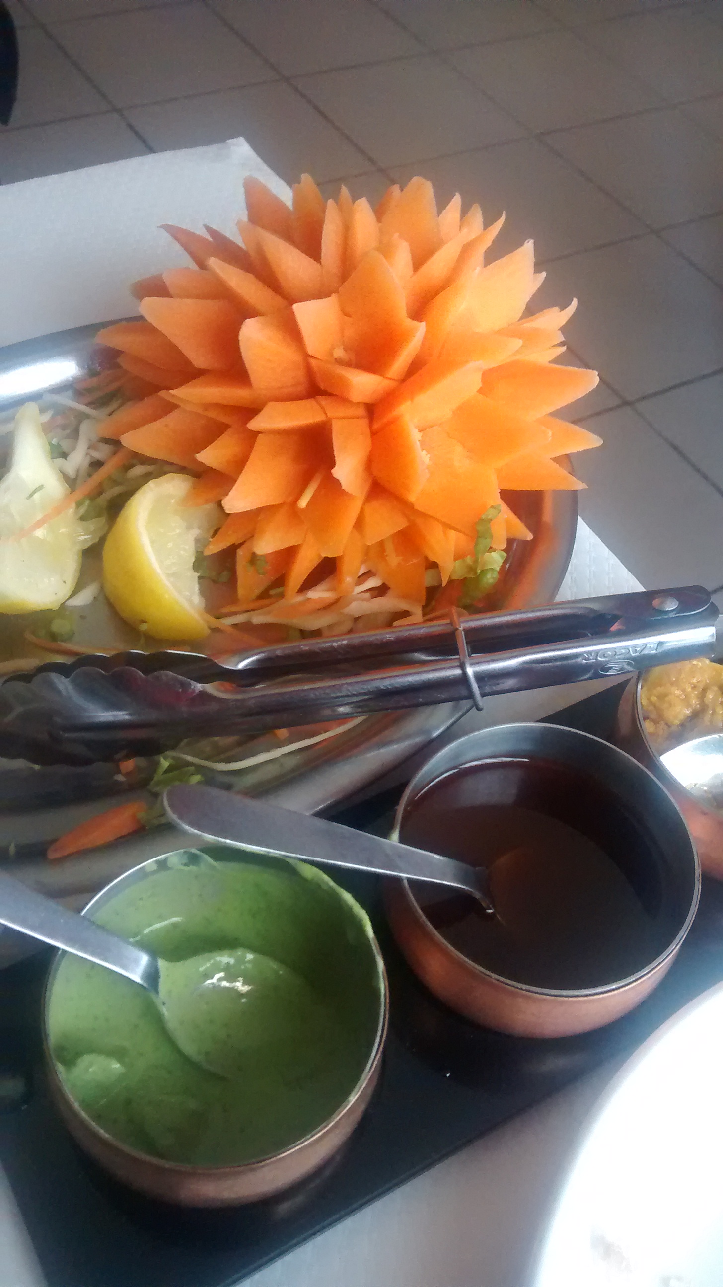 Bonne cuisine copieuse et bien présentée (jolies touches déco de crudités) ambiance sereine. Beignets légers, sauces réconfortantes et bien dosée selon la force choisie. Bons prix, même les vins. Je recommande vivement pour une chaleureuse tablée entre amis.
