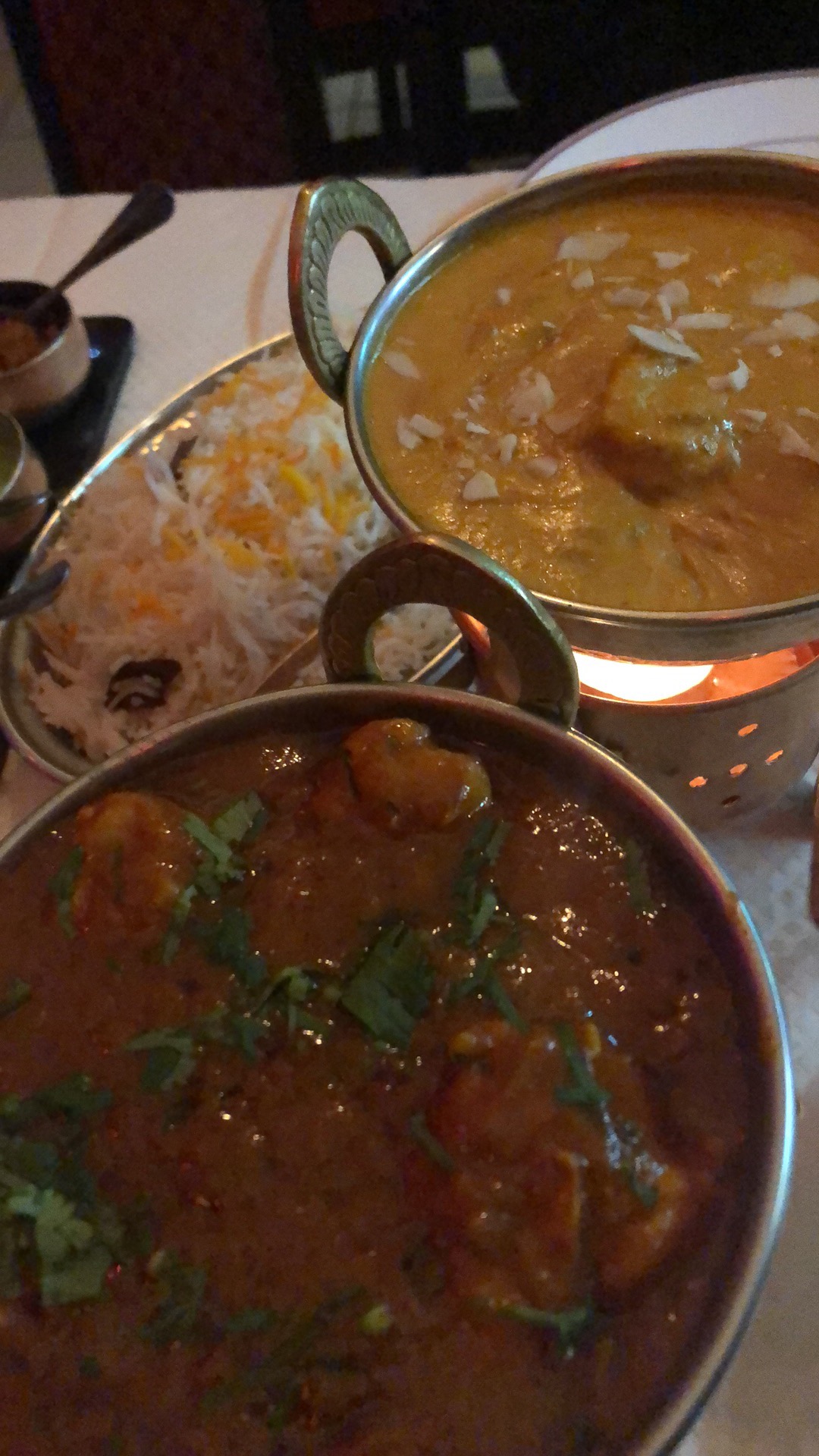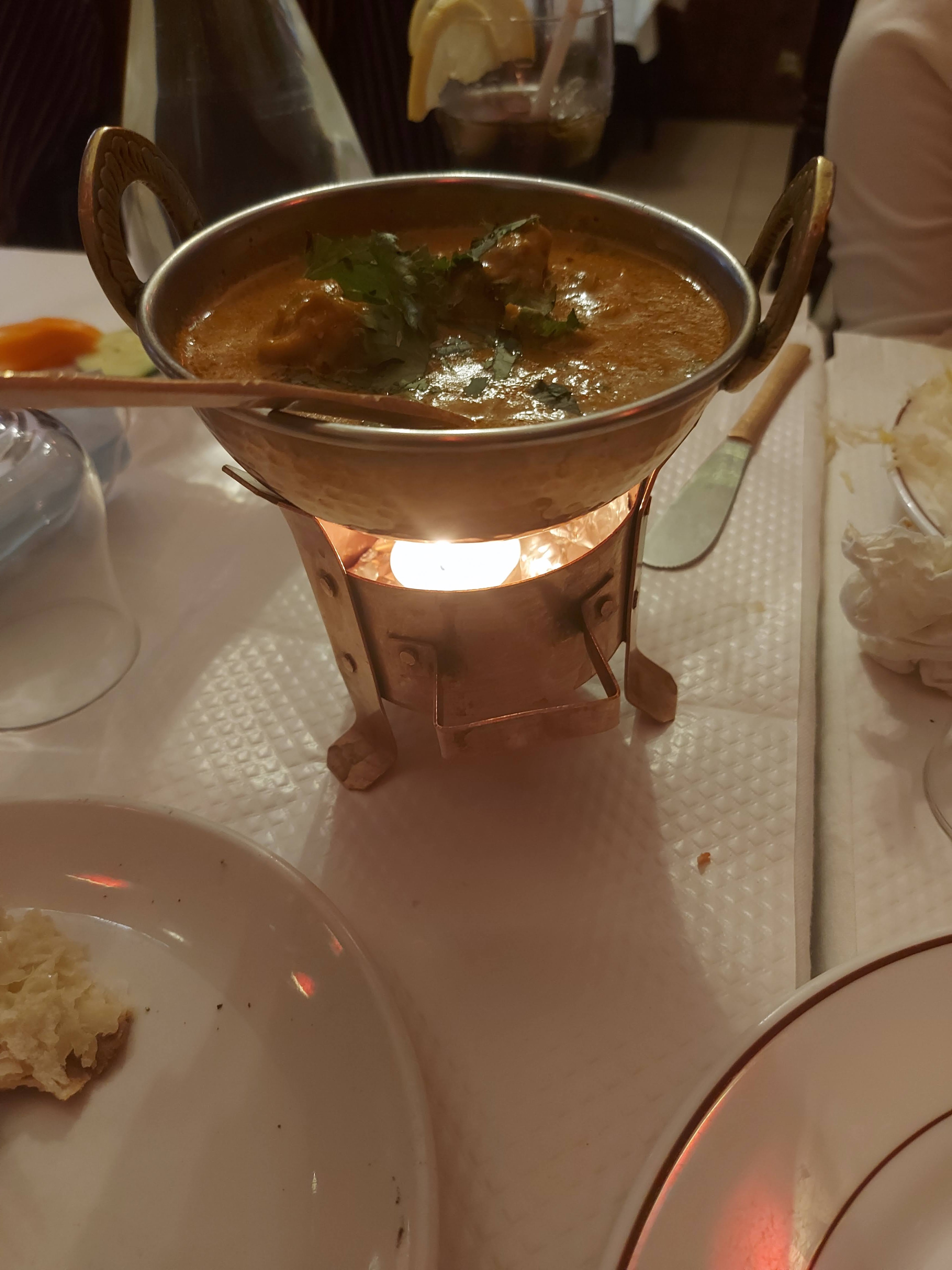 Un curry excellent ! Je cuisine des currys plusieurs fois par semaine et je m'intéresse sérieusement à la cuisine indienne. J'ai vraiment apprécié un madras de crevettes, du tarka dhal et du riz ce soir. calme .. je n'hésiterais pas à y rendre une visite !