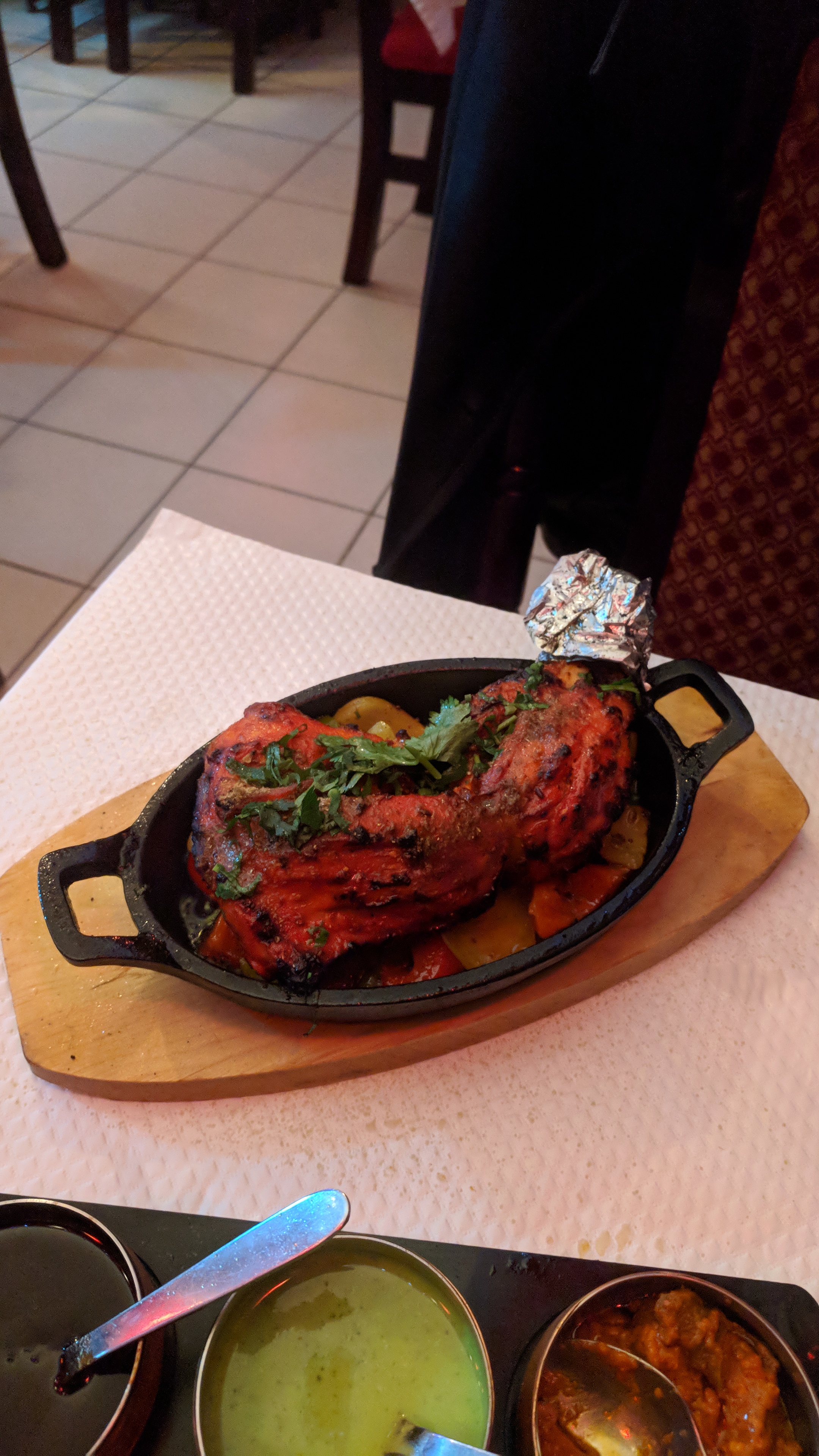 Bien que le restaurant soit petit, il y a une très bonne ambiance. Le personnel disponible est très attentionné et serviable. La nourriture était délicieuse et très indienne au goût. Je suis allé en famille pour un dîner et j'ai essayé le poulet tandoori, le poulet tikka Masala, le Naan. La facture était plus élevée mais compte tenu des portions, elle est conforme. Hautement recommandé.
