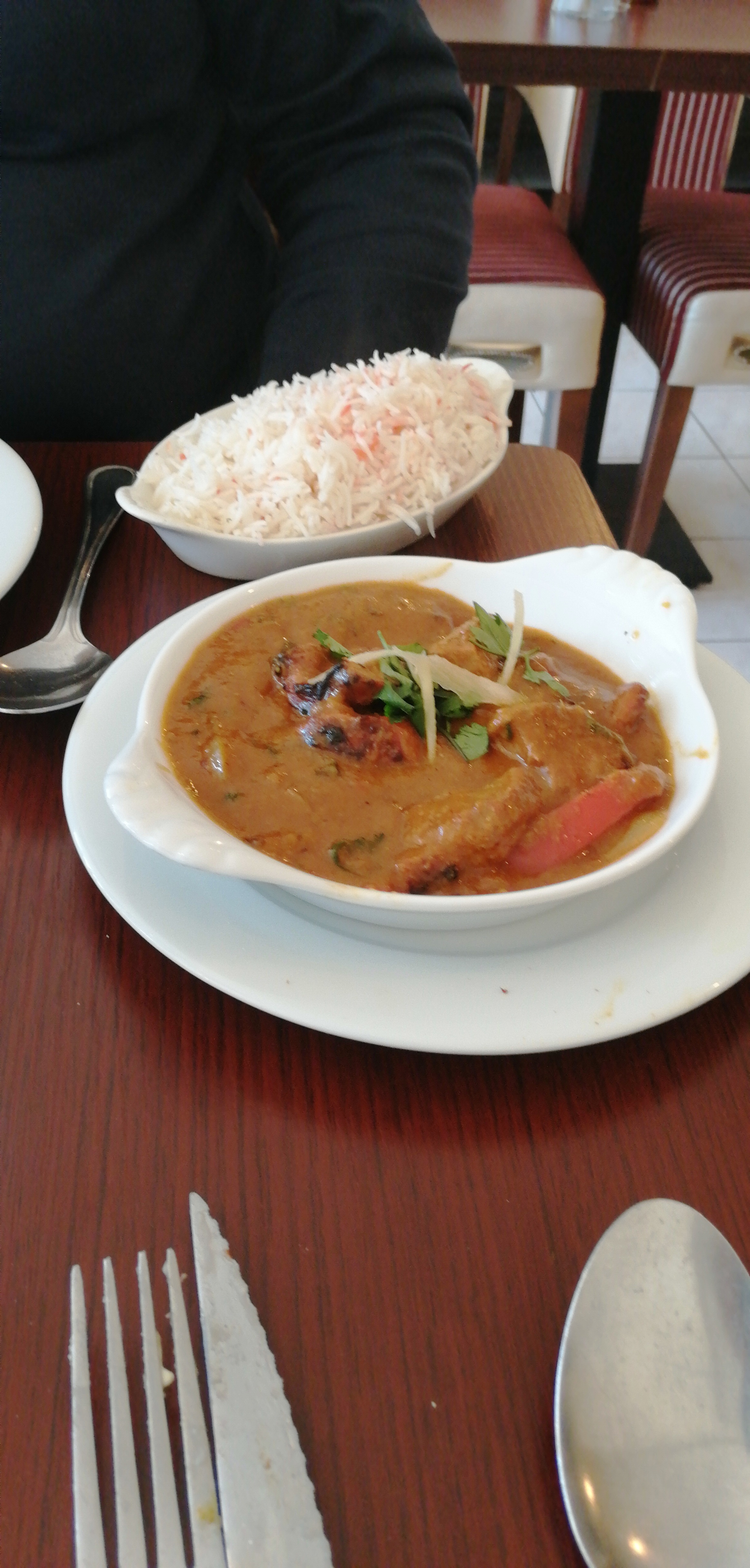 Le naan à l'ail était un peu moins savoureux que ce à quoi je m'attendais. Du coup, j’ai fait attention à mon poulet au beurre. Mais mon assiette est complètement vide. Jusqu'au dernier grain de riz. L'ambiance était un peu basique ainsi que le service. Cette dernière pourrait aussi être due au fait que j'étais seul et que je savais exactement ce que je voulais. Mais ni l'un ni l'autre n'ont rendu la nourriture moins ou mauvaise du tout. Je reviendrai certainement.