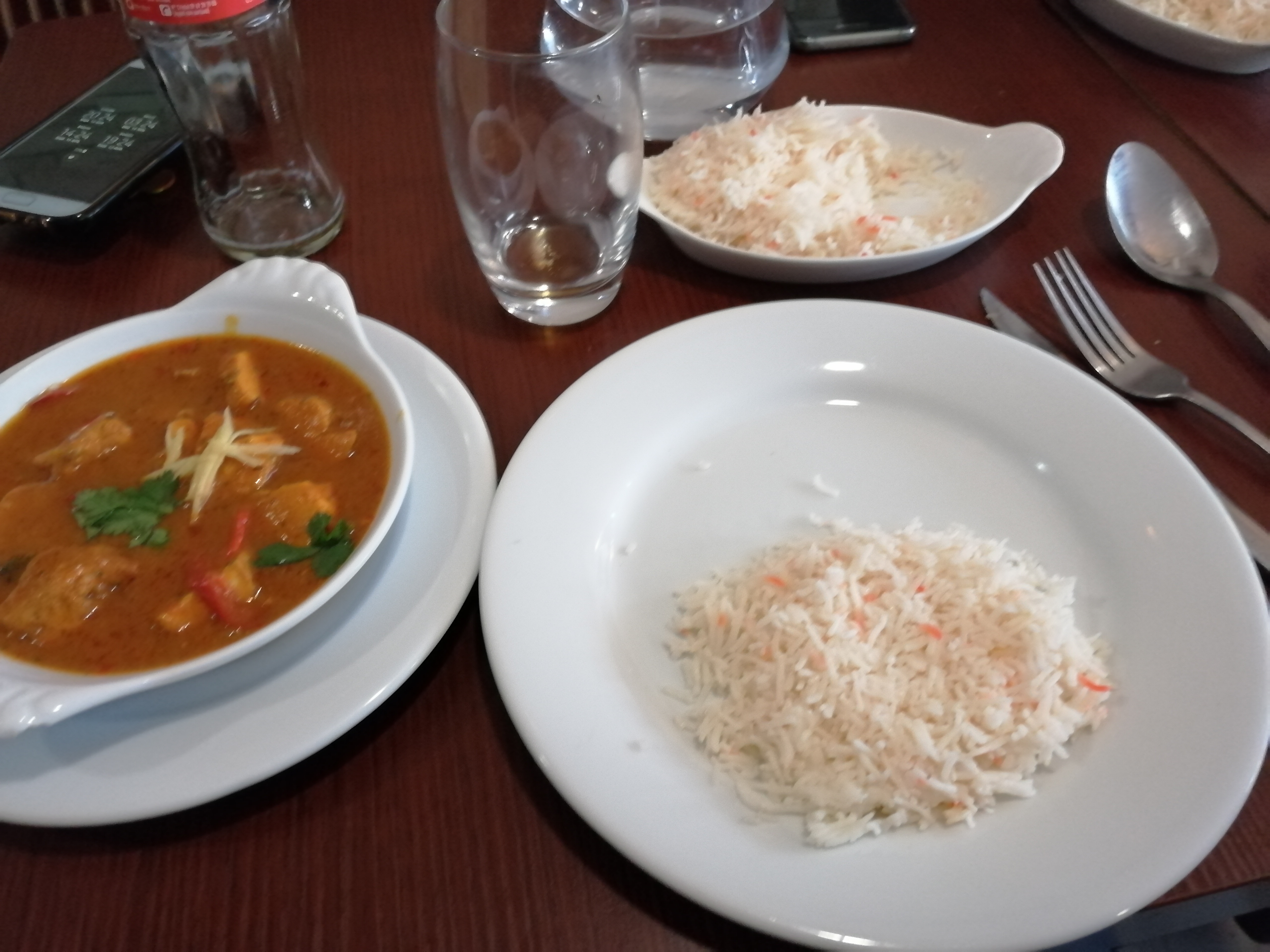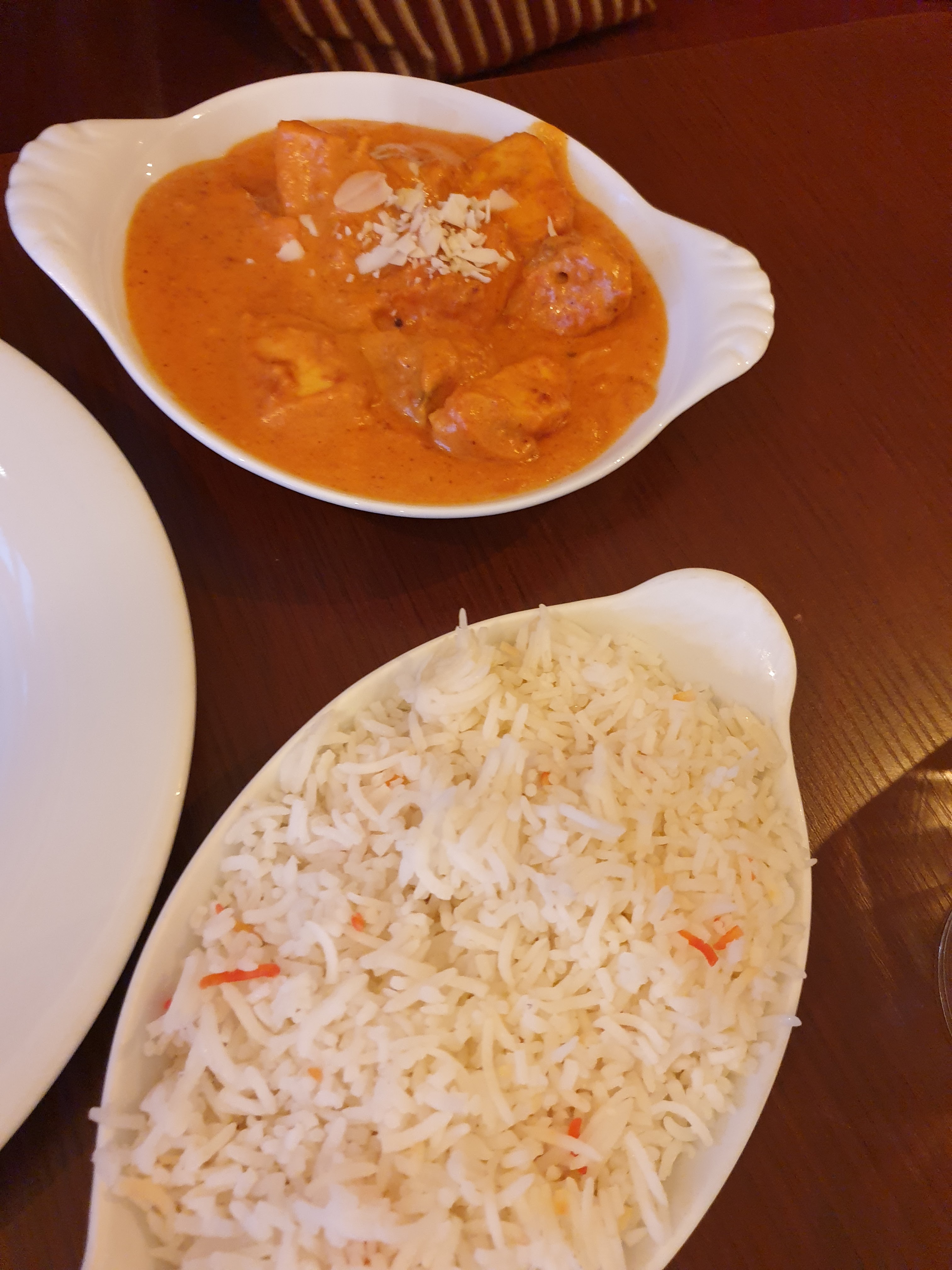 - l'attente interminable : malgré le peu de clients présents le rythme de service est très lent dû d'une part au manque de cuisinier et d'autre part à l'inefficacité du serveur en salle. - plat: quantité ok. Mais très salé. Le sel est là pour combler le manque de saveur chose inhabituelle pour un restaurant indien... riz pas parfumé... viande dure et pas moelleuse, peu de viande pour un plat à 16euros... Naan pas savoureux non plus Bref au niveau du goût grosse déception. La présentation est elle aussi très sommaire... sur de simples assiettes. on a connu beaucoup mieux - qui plus est les plats ne sont pas donnés et tournent autour de 15euros pour 1 plat, 6 7 euros pour une entrée. Je ne comprends pas la notation générale à 4 étoiles, soit on est tombé sur un mauvais jour, en tout cas nous ne reviendrons pas.