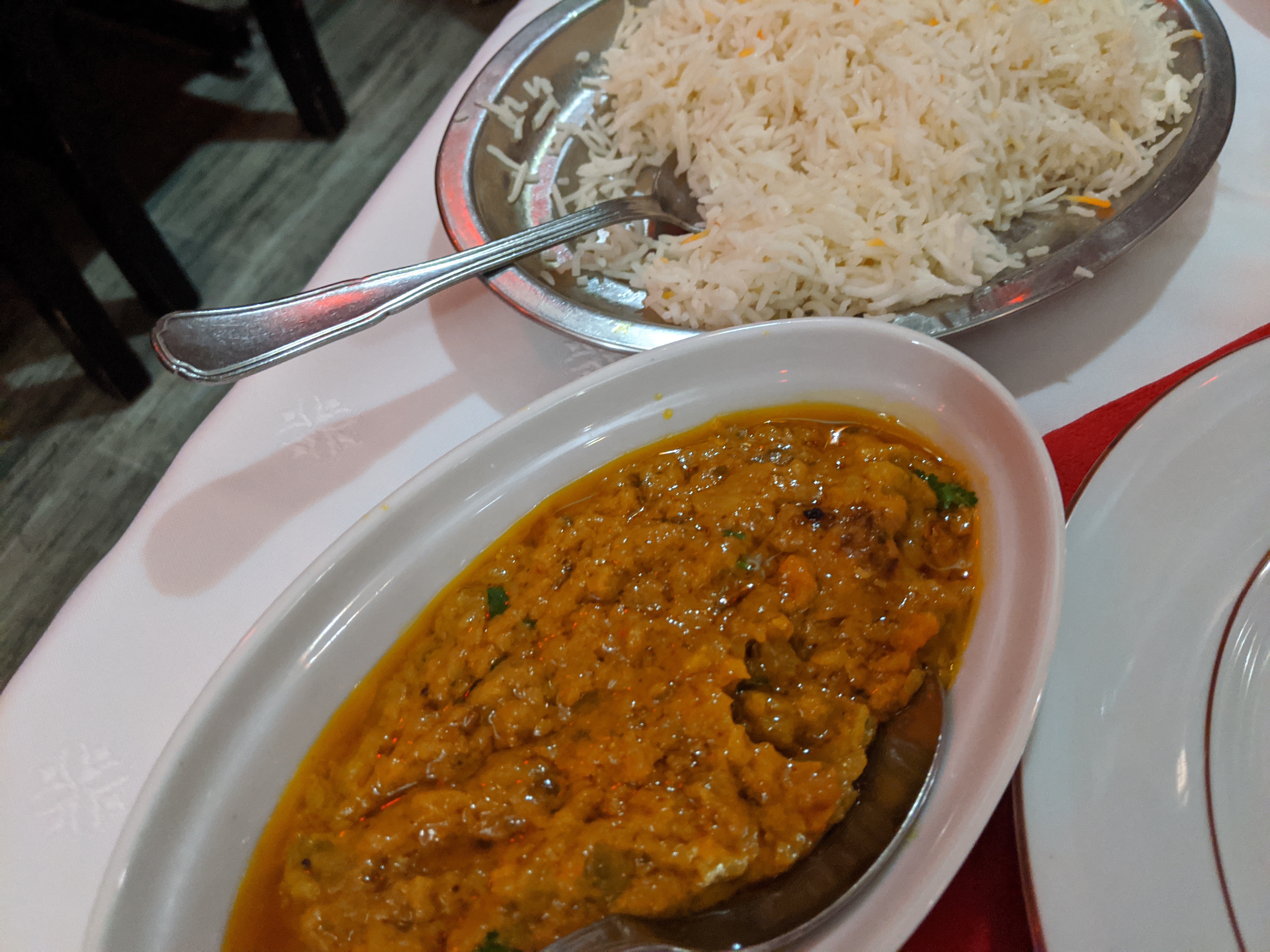 un service rapide, un délicieux agneau korma et un prix doux. Que demander de plus?
