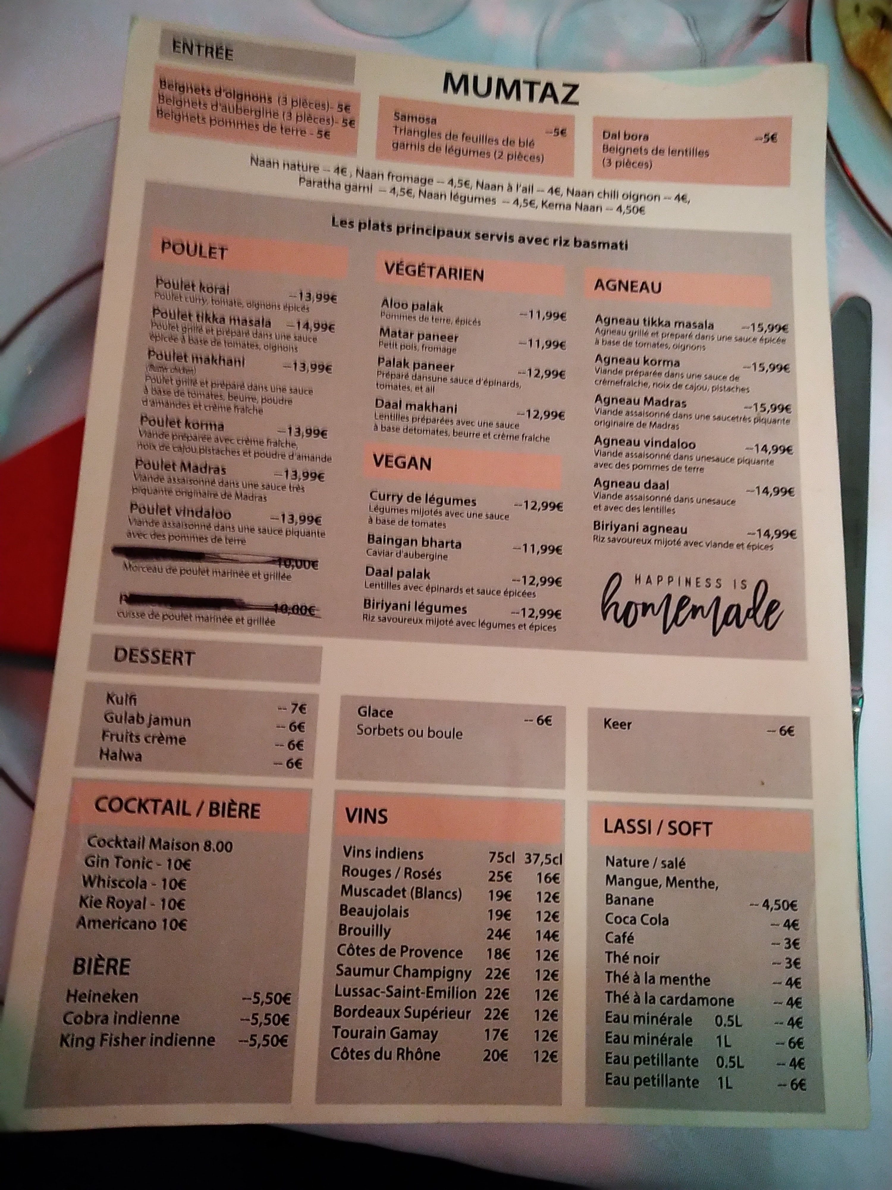 Super repas au Mumtaz !! Menu pas cher, entrée (samoussas et beignets d'aubergines) au top, plats savoureux (tikka massala), sauces délicieuses, et dessert léger, avec un service agréable et dévoué ! Je recommande fortement 👌🏼
