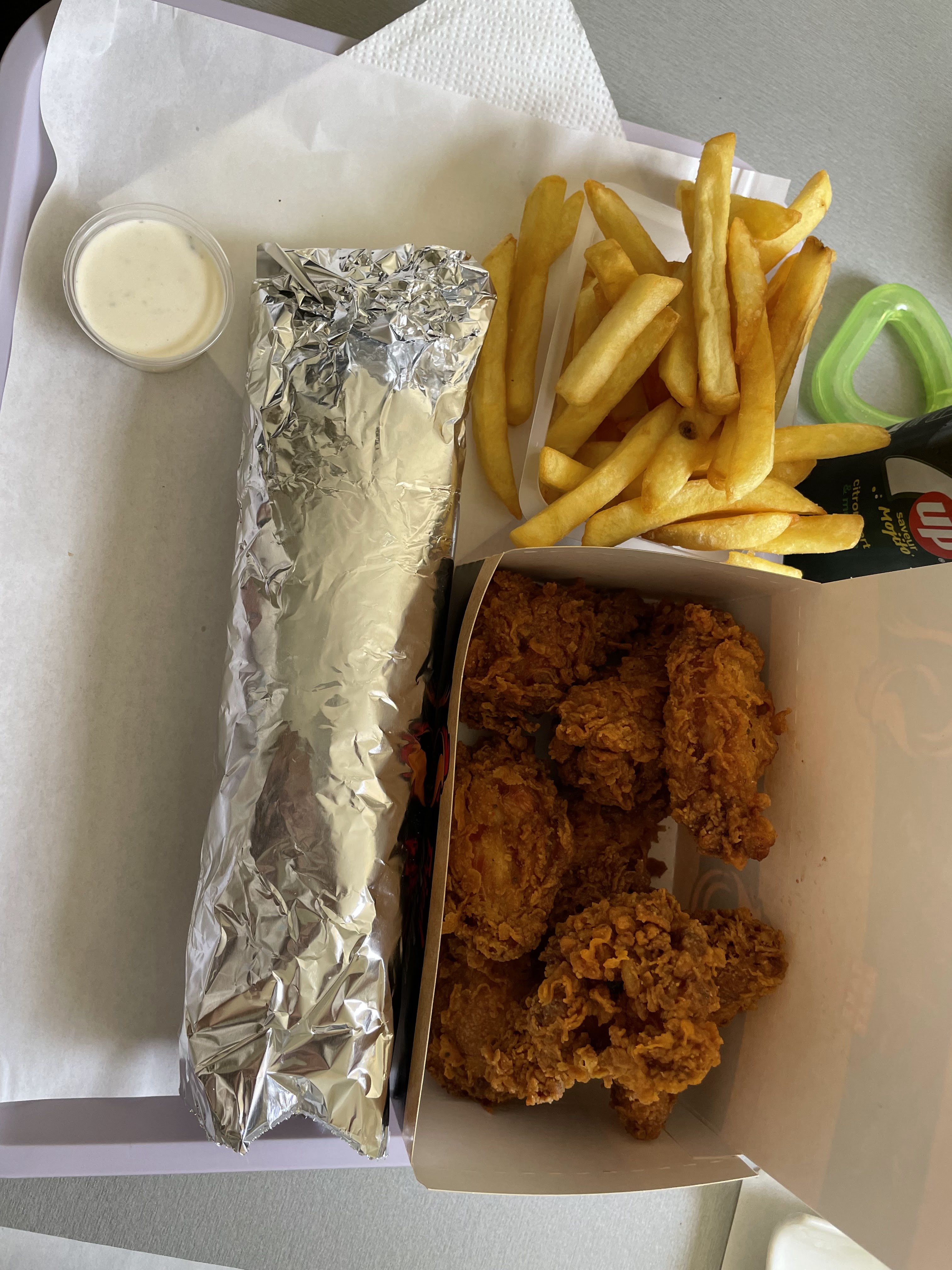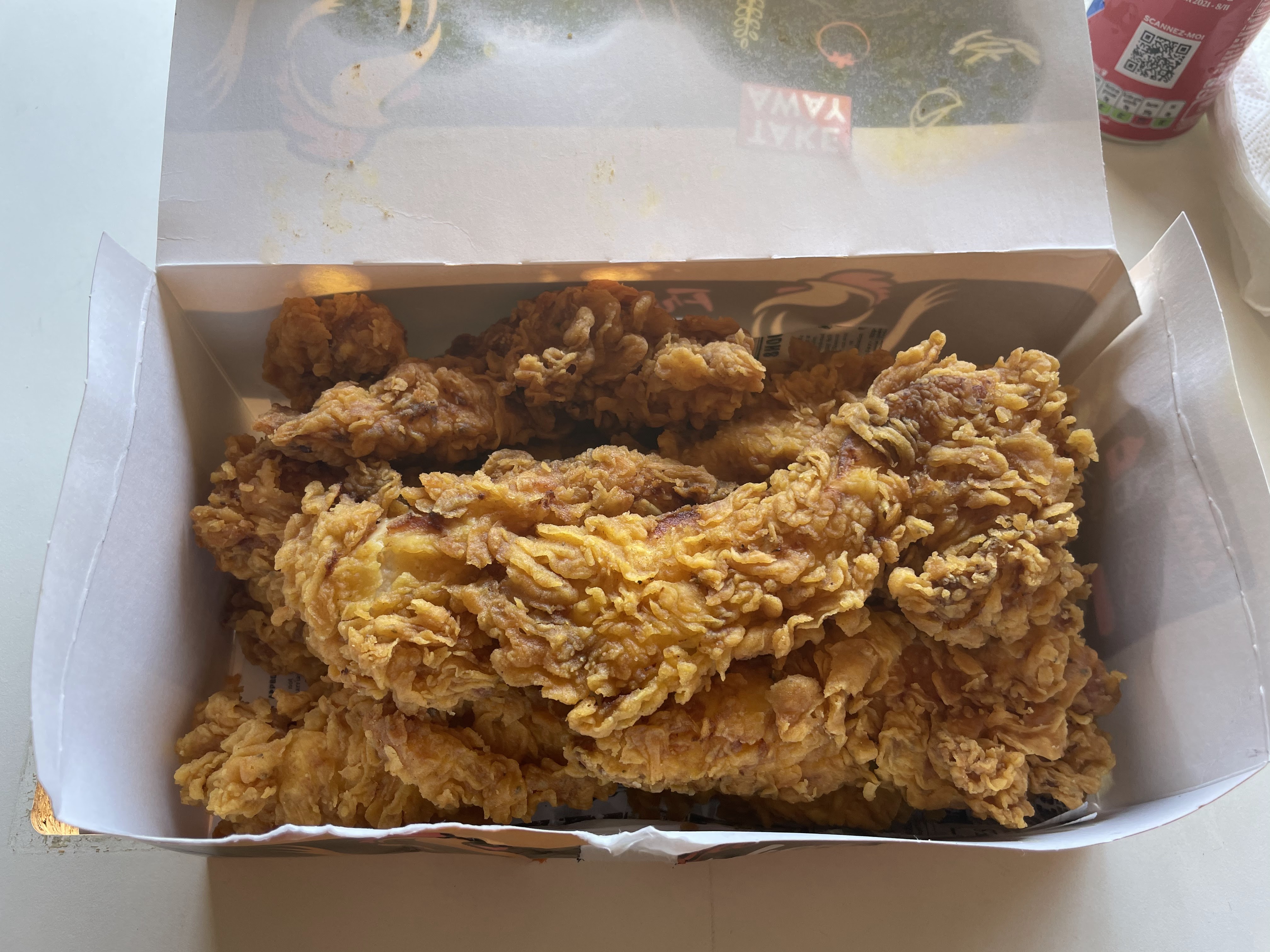 Honnêtement SUR côté : le poulet frit est vraiment pas terrible surtout pour le prix (27€ le family mix) La chapelure adhère à peine au poulet et certaines pièces sont chaudes et d'autres froides. Donc même si le personnel à l'air sympathique le résultat dans l'assiette est très décevant.