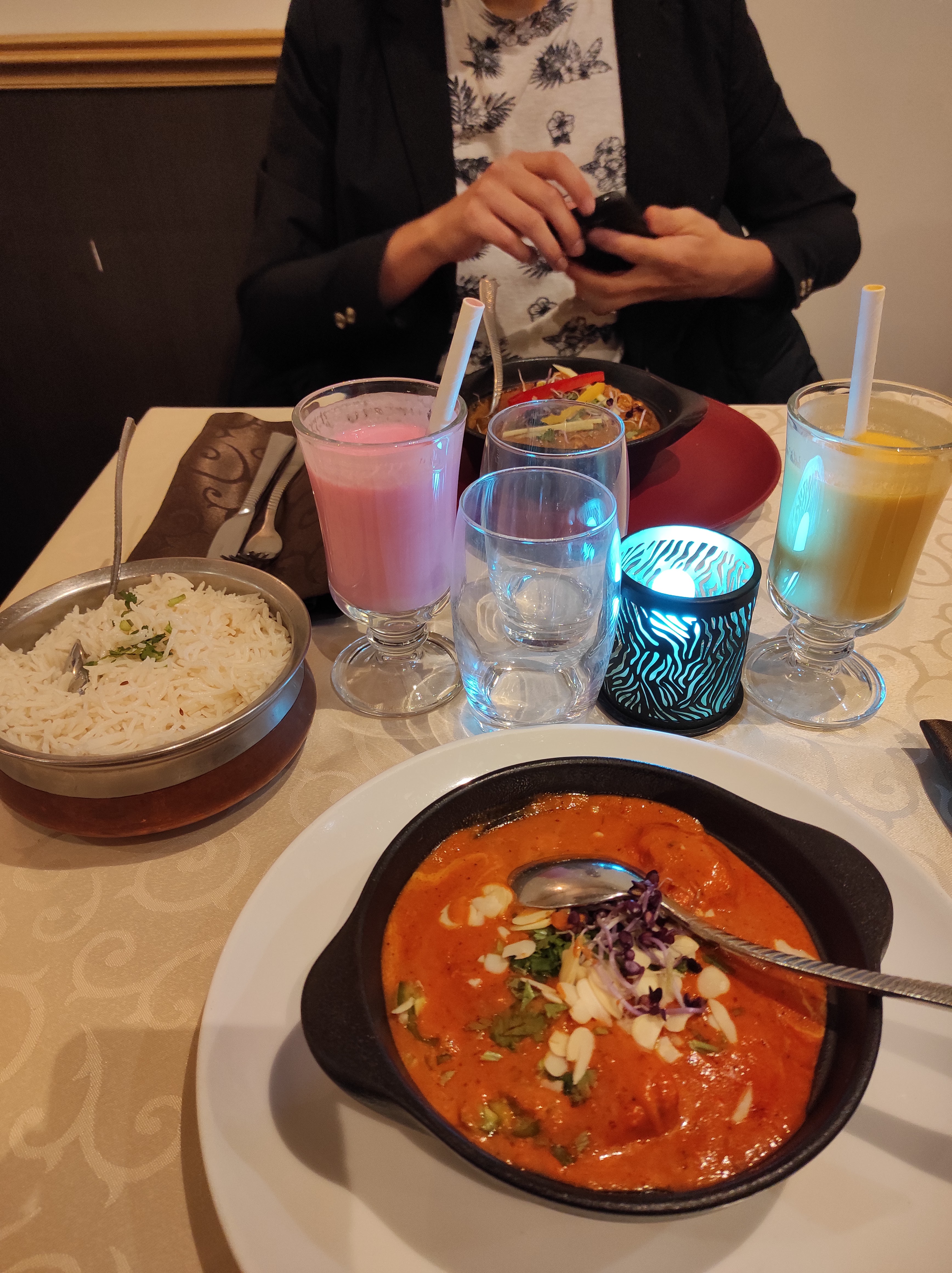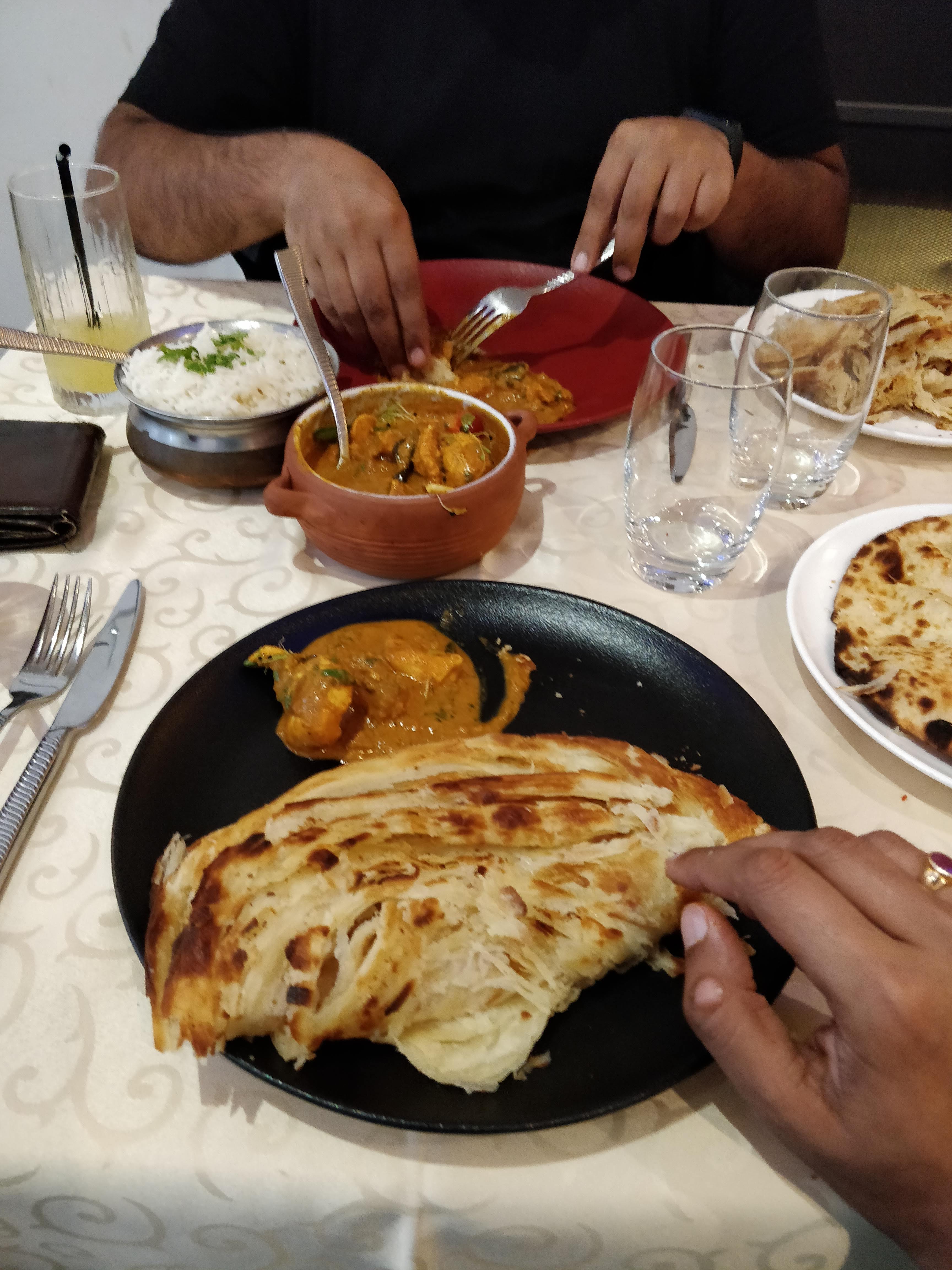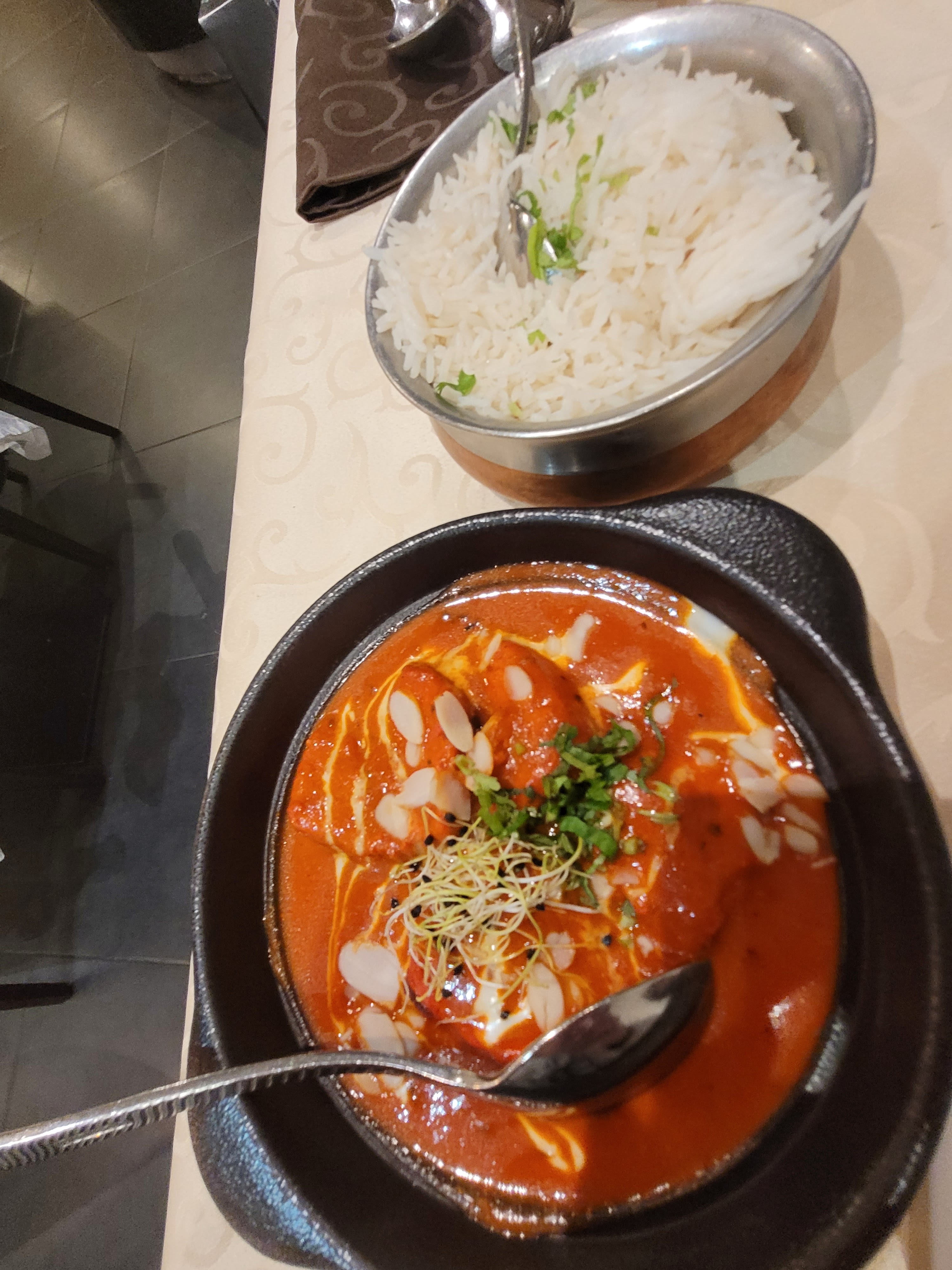 Première dans ce restaurant et étant amateurs de bonne cuisine étrangère en l’occurrence ici indien on y mange vraiment bien de bon plat avec du riz pour deux largement suffisant il y en a juste ce qu’il faut. Les plats sont gourmands et bien assaisonner et il y a de quoi être satisfait si on aime les plats épicés. Le service quand à lui est bien le serveur est agréable, souriant et bien organisé. Un plaisir à renouveler.
