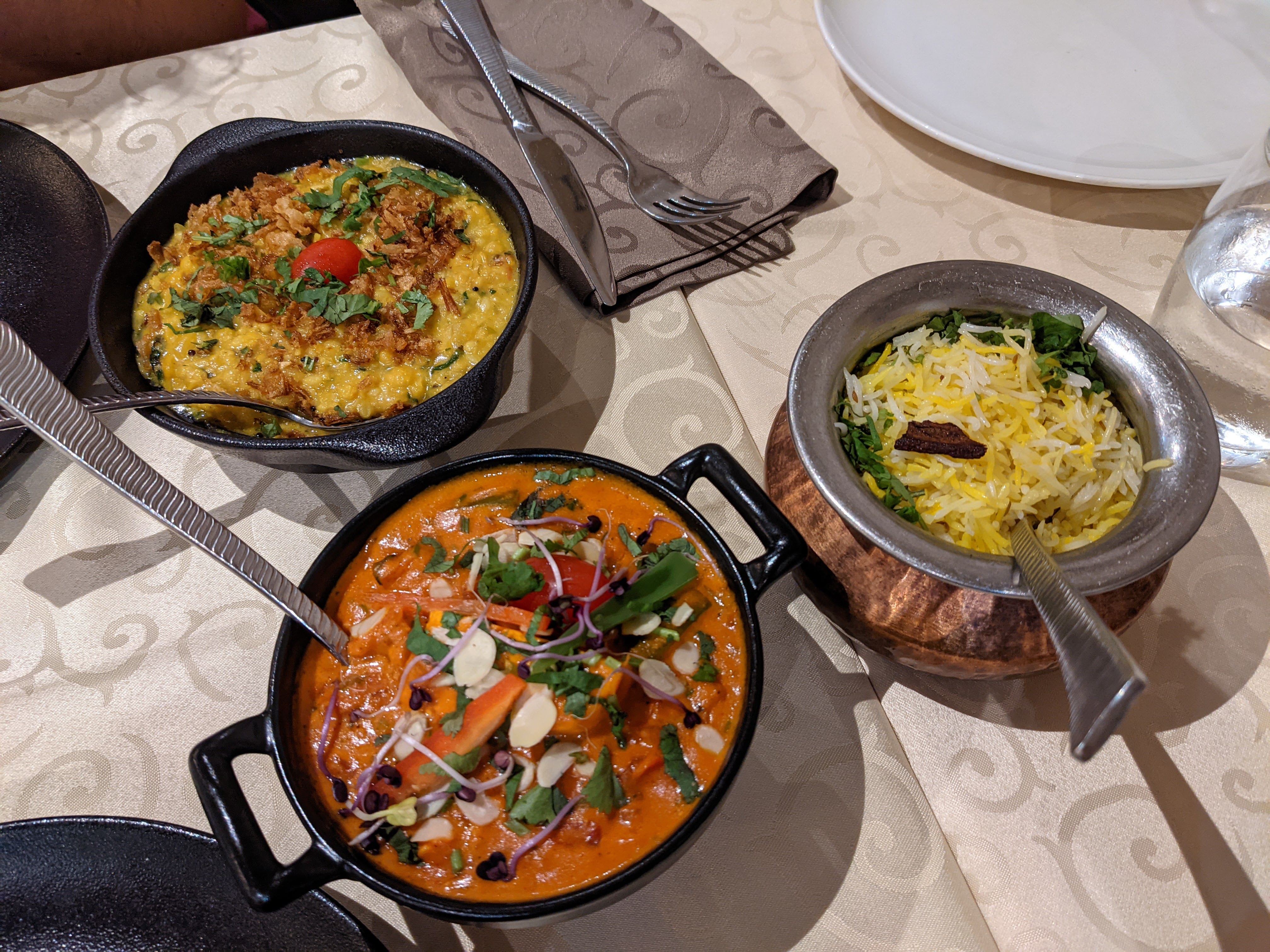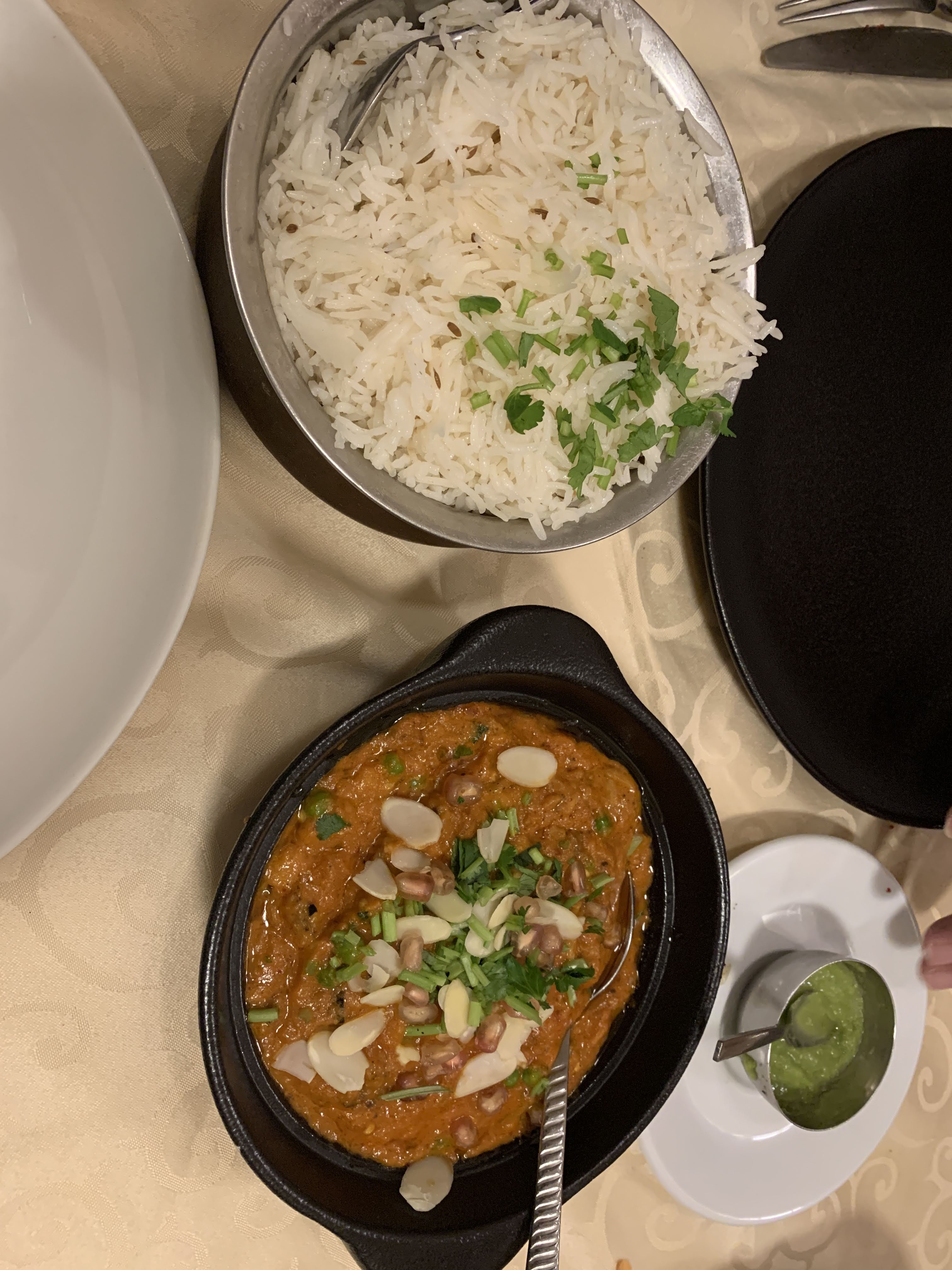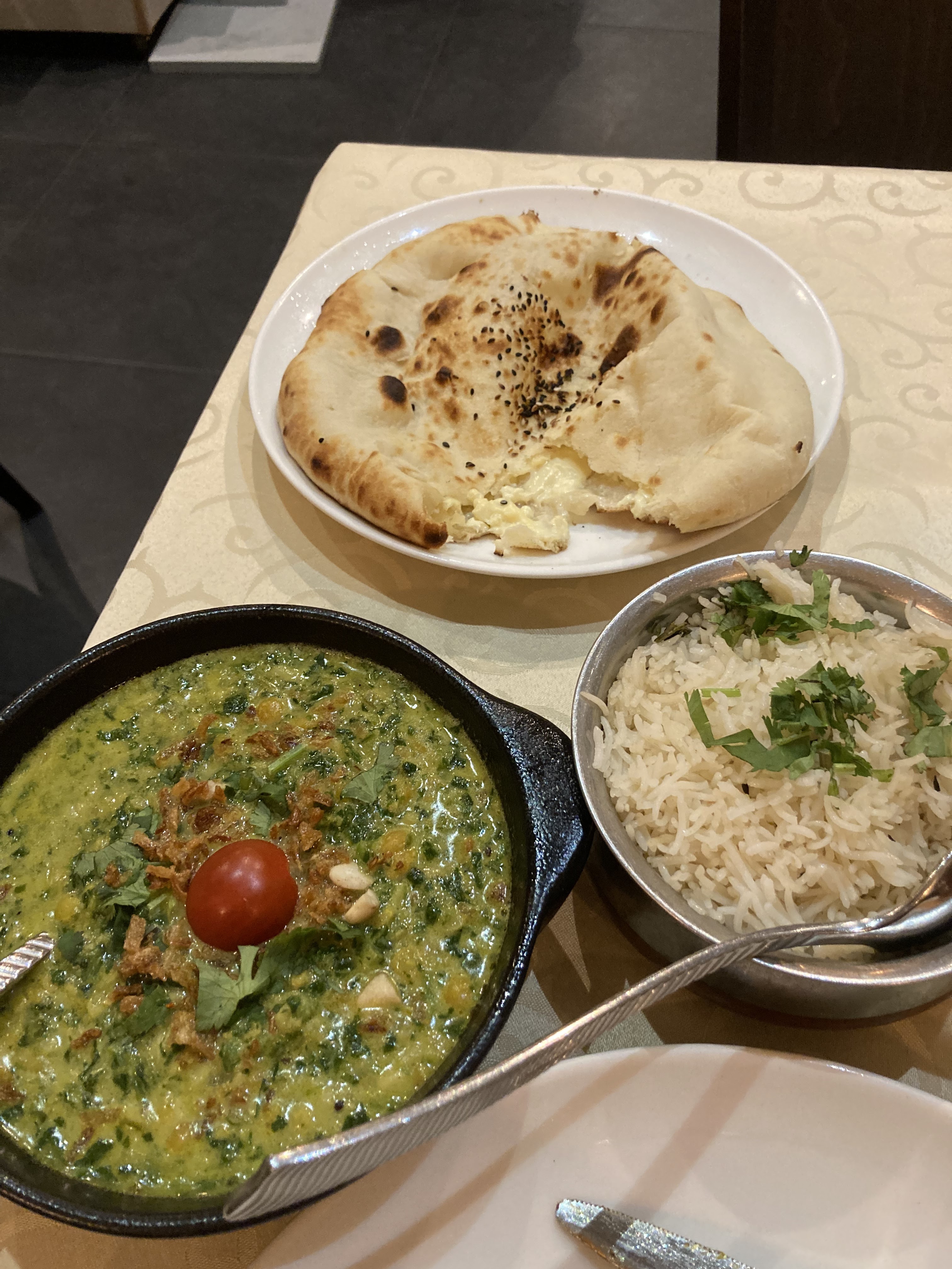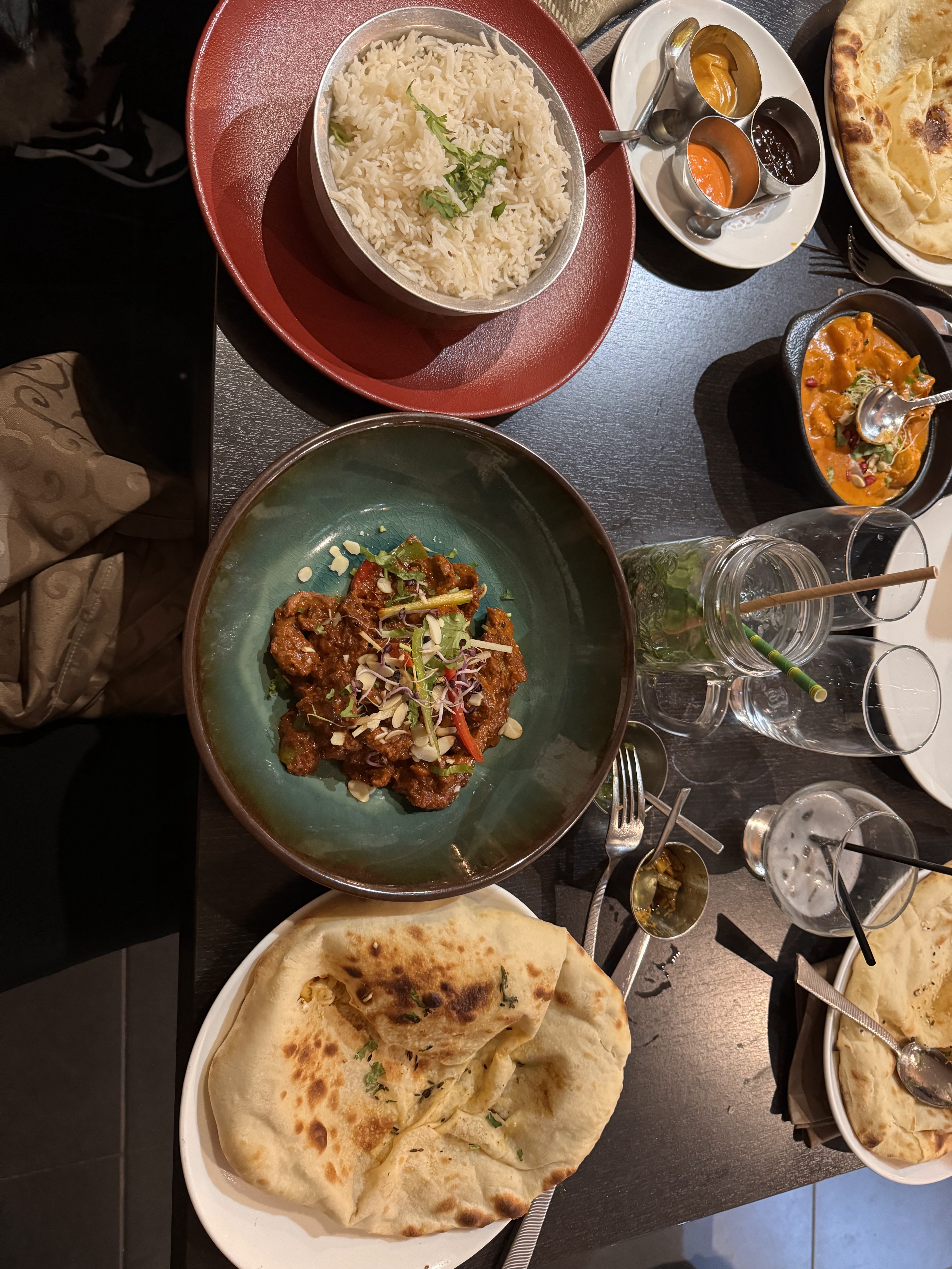 Première dans ce restaurant et étant amateurs de bonne cuisine étrangère en l’occurrence ici indien on y mange vraiment bien de bon plat avec du riz pour deux largement suffisant il y en a juste ce qu’il faut. Les plats sont gourmands et bien assaisonner et il y a de quoi être satisfait si on aime les plats épicés. Le service quand à lui est bien le serveur est agréable, souriant et bien organisé. Un plaisir à renouveler.