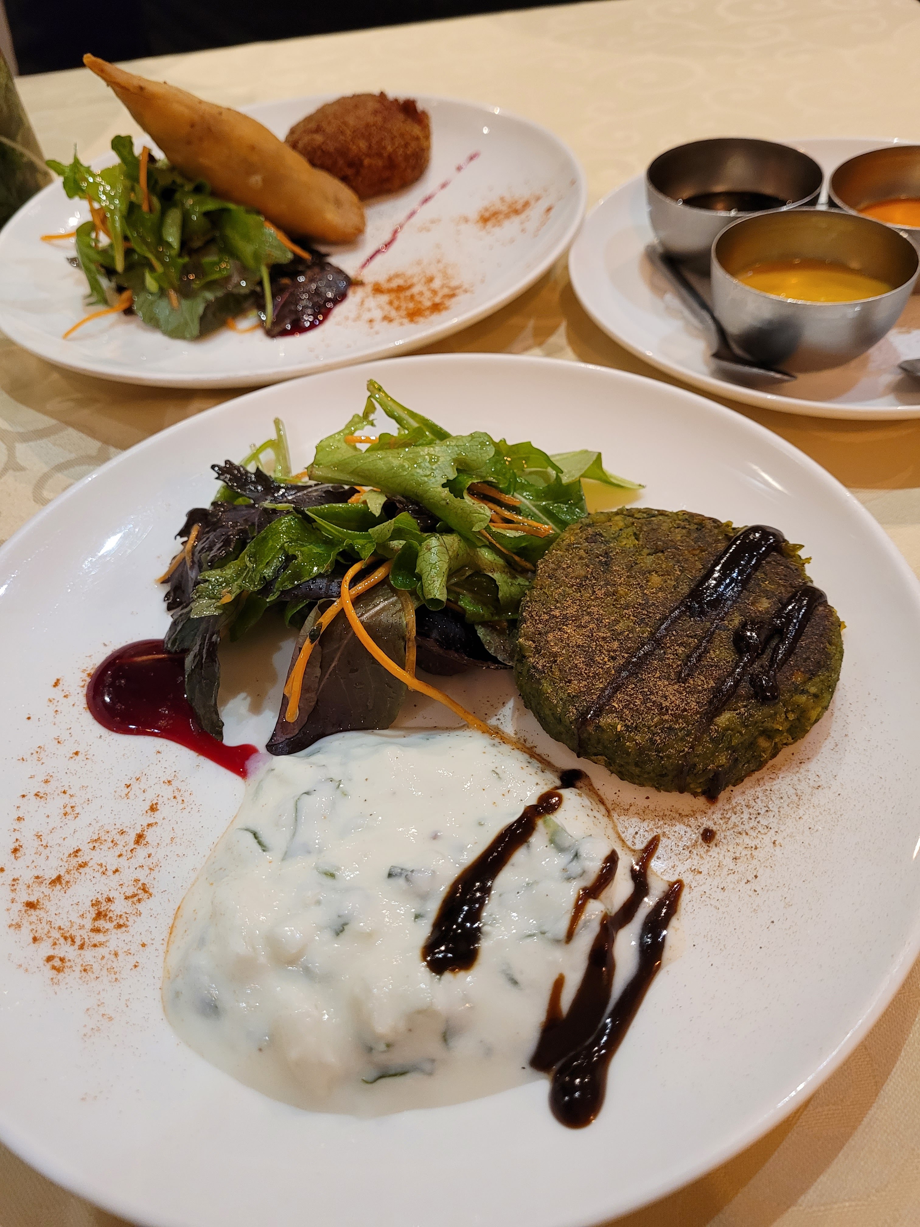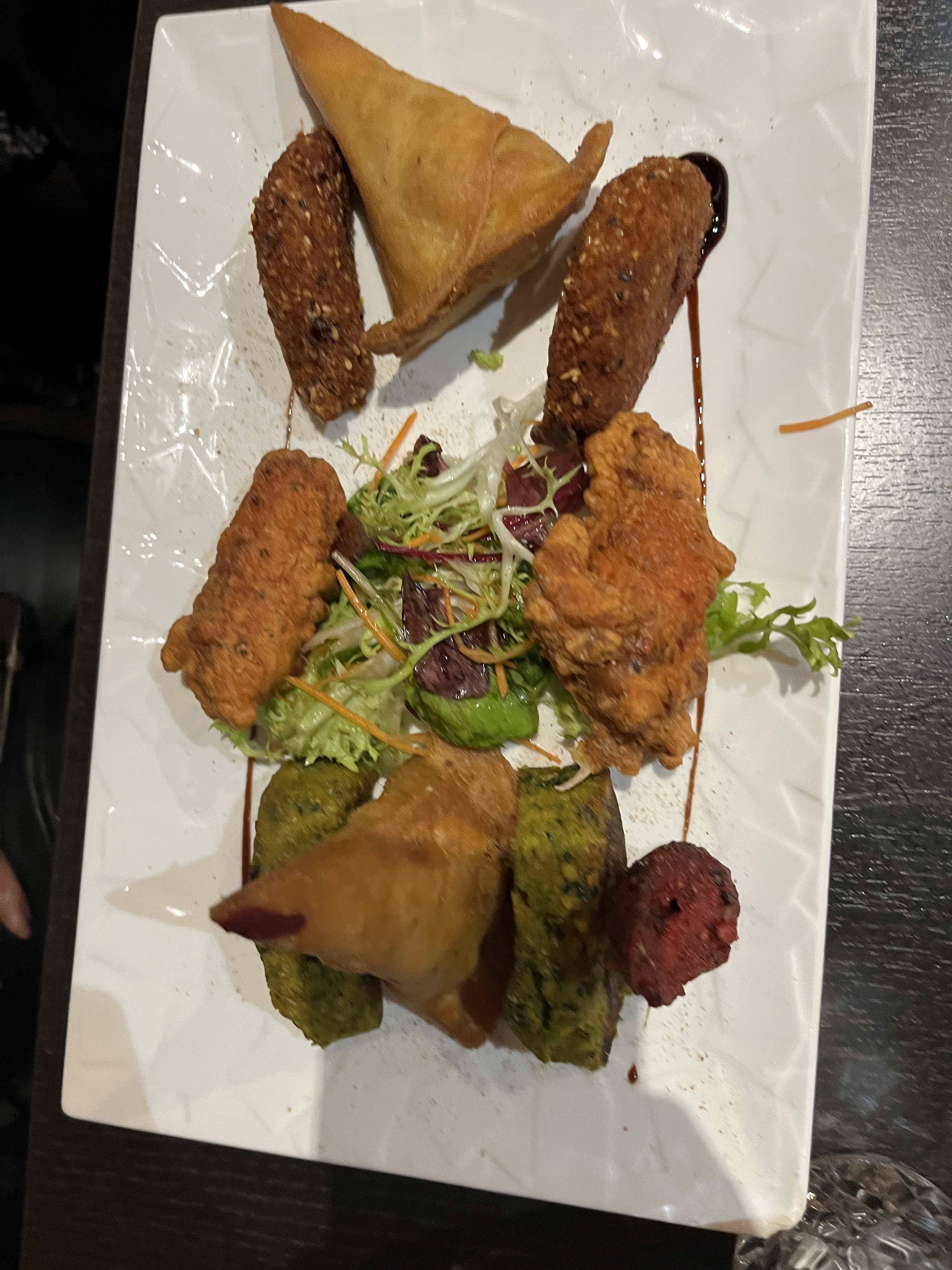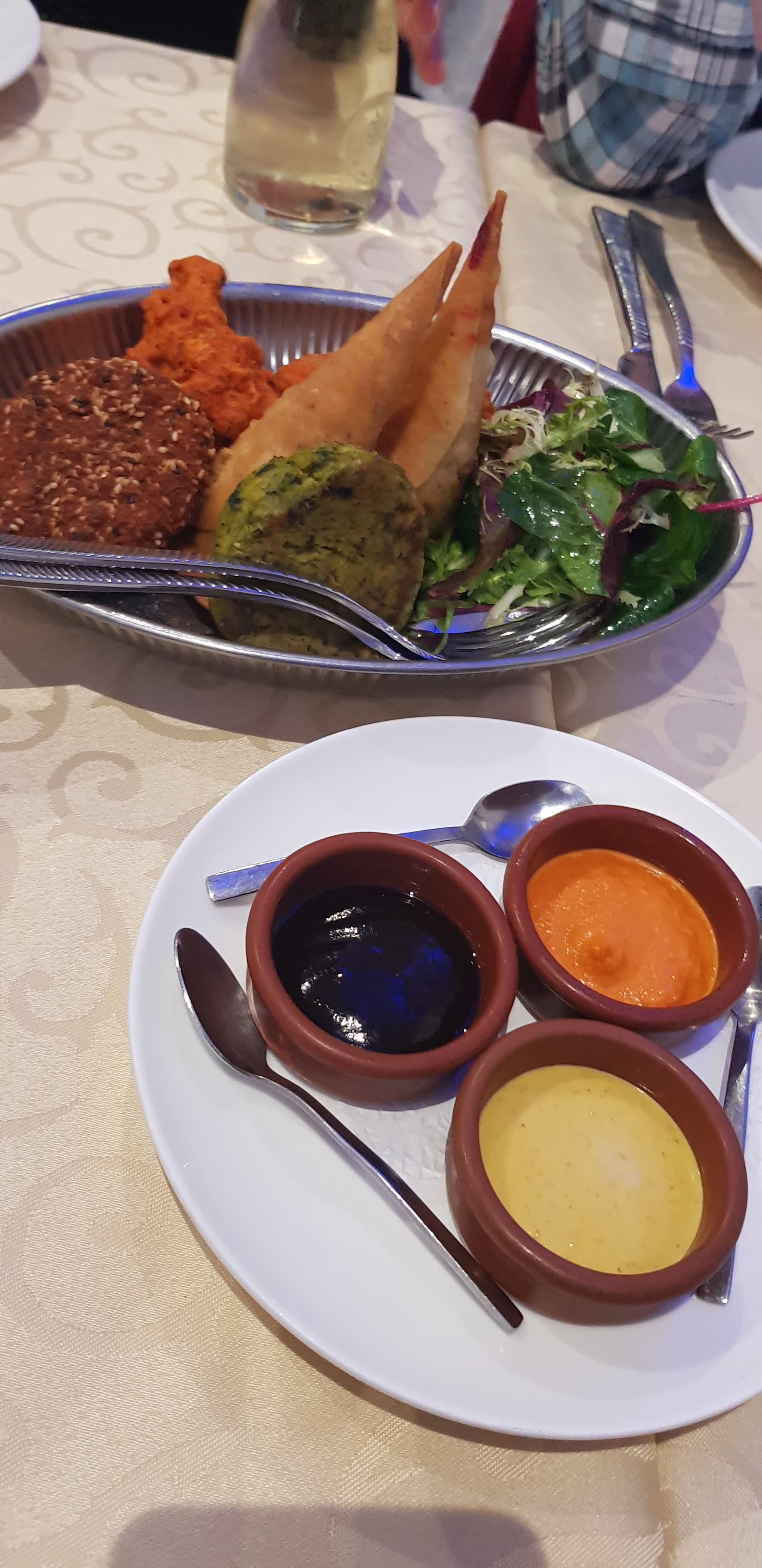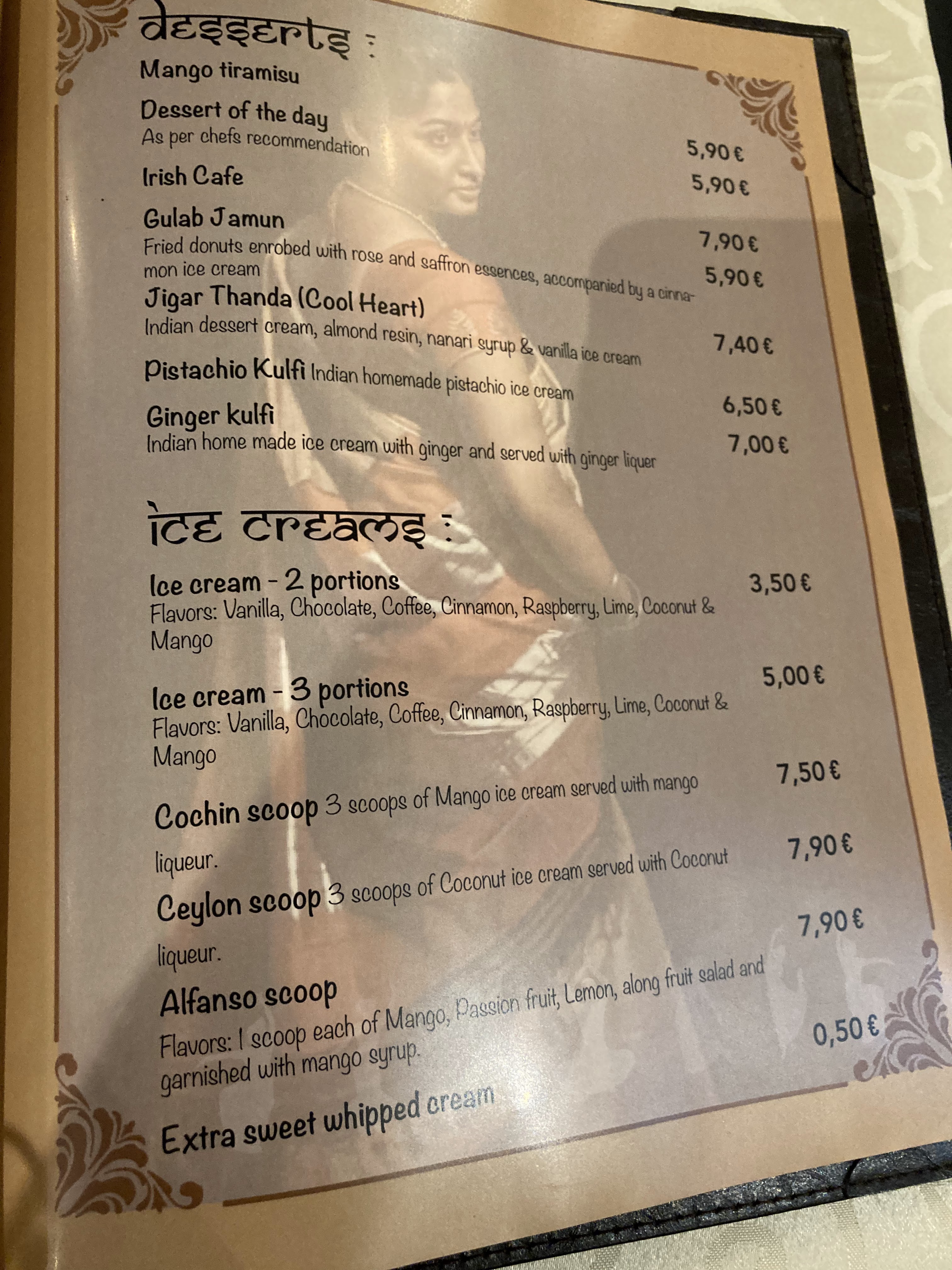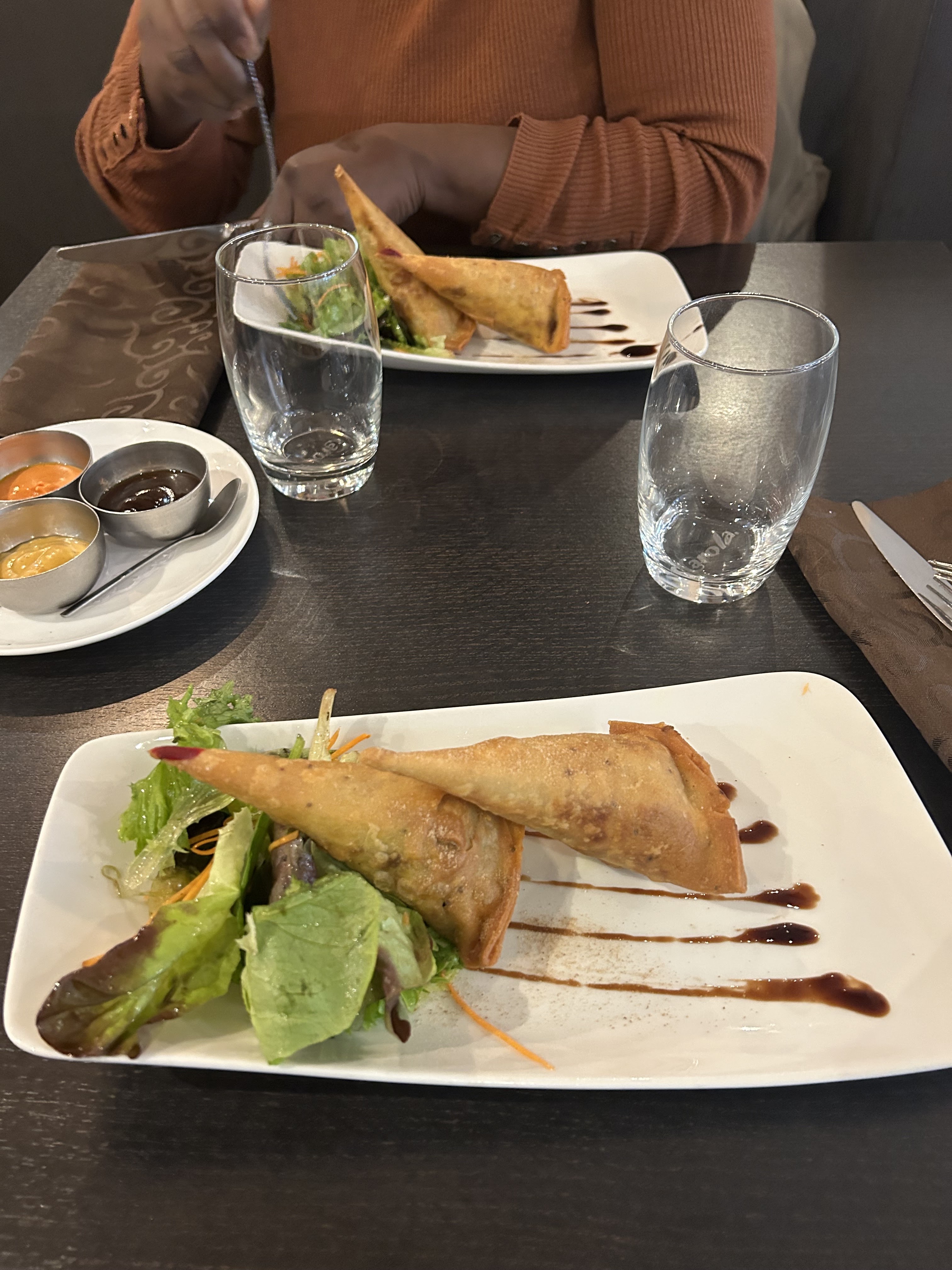 Très typique ! L’entrée était bonne (samoussa légumes), mais un peu trop gras (il y avait de l’huile - ça montre que c’était frais mais quand meme). Les sauces sont très bonnes ! J’ai pris un plat végétarien (navaratna kotma) et les légumes n’étaient pas très frais… j’avais l’impression que c’était du surgelé.. Je n’ai pas trop aimé, il manquait du goût. Par contre j’étais accompagné et la personne a goûté une grillade royale et elle a bien aimé. Rien à dire sur le service, qui était rapide et très soigneux ! Les naams sont trop bons ! J’ai goûté un lassi à la mangue qui était incroyable ! Ma suggestion serait un plat végé qui soit juste un peu de chaque plat principal (caviar d’aubergines, lentilles, paneer, légumes) et sauces avec du riz (et si jamais, des naams !!!)