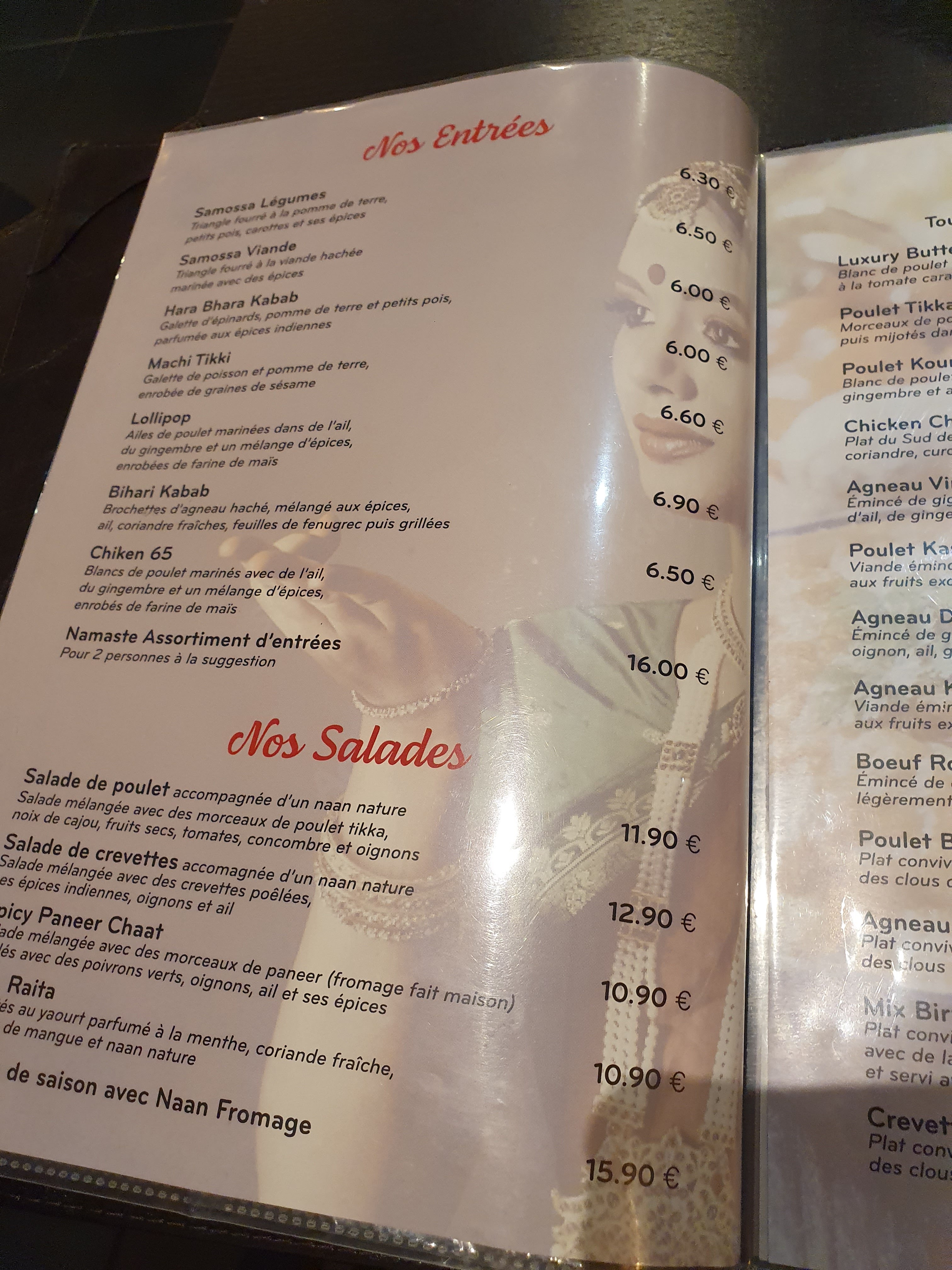Un vrai bonheur du début à la fin! Tout y est excellent, je vous recommande le Mojito Namaste au gingembre pour commencer, un régal! Les plats sont goûtus, copieux et délicieux. Ils viennent même servis avec du riz, ce qui est rare dans les restaurants indiens (c'est normalement toujours en supplément). Rapport qualité/ prix parfait. A tester de toute urgence!