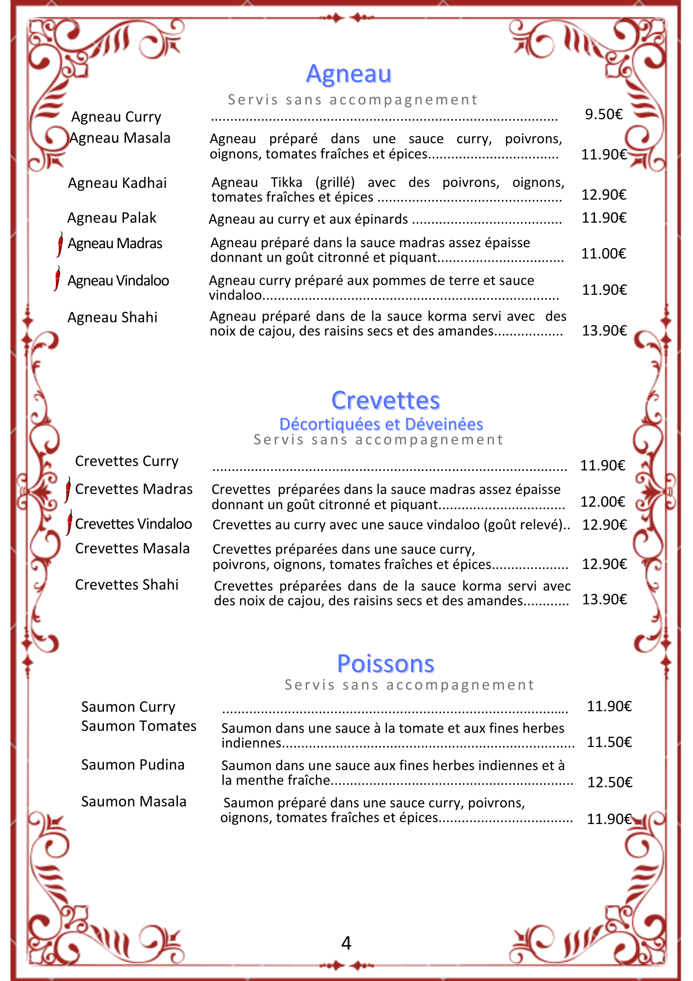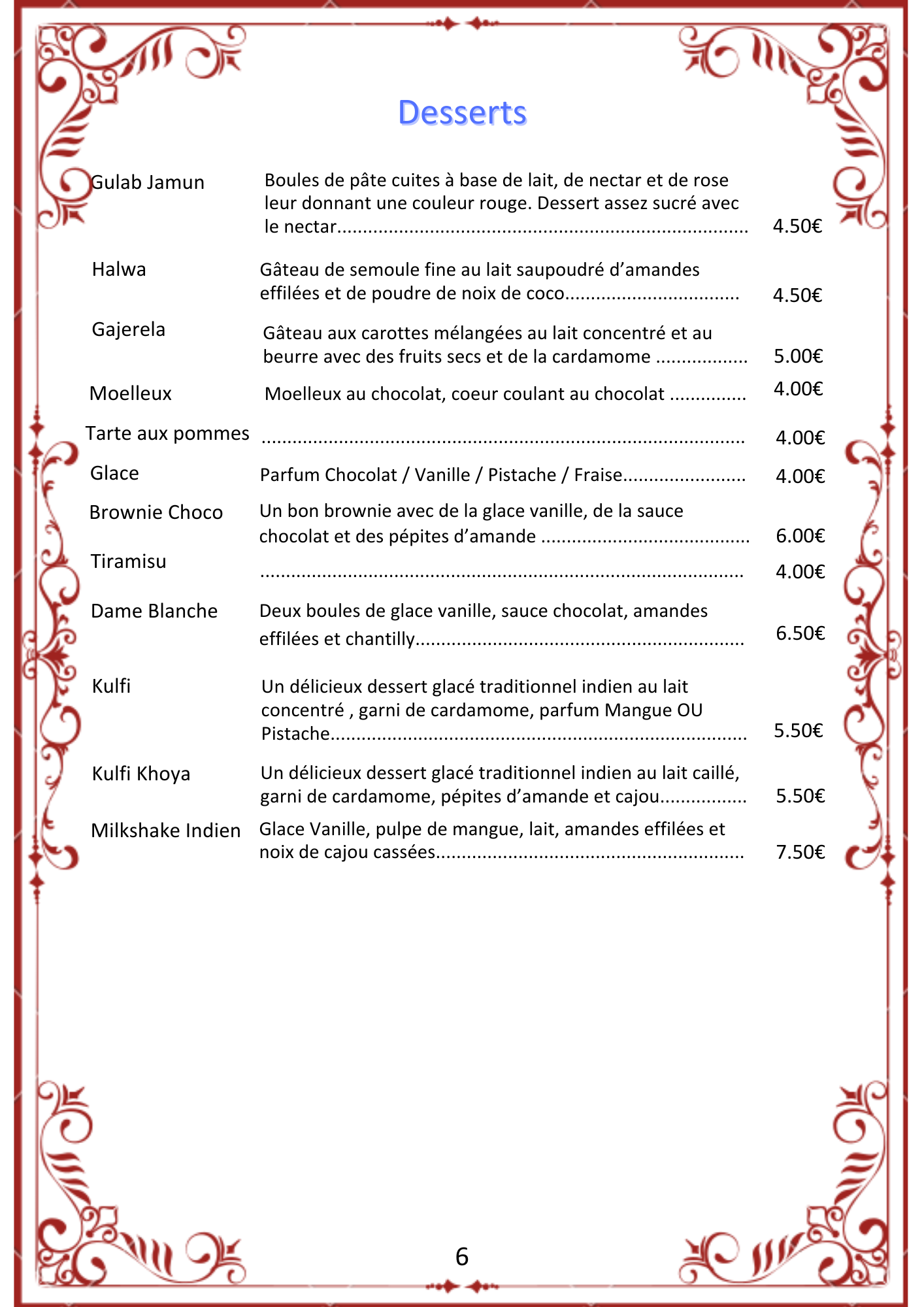 Decor et ambiance Indian kitch mais c est dépaysant. Service très sympas et détendu. Cuisine excellente et pas trop. Épicé. Nan fromage et fromage oignon vraiment bon. Les plats sont bon et parfumé. Même les desserts sont sympas ce qui est rare chez les indiens.