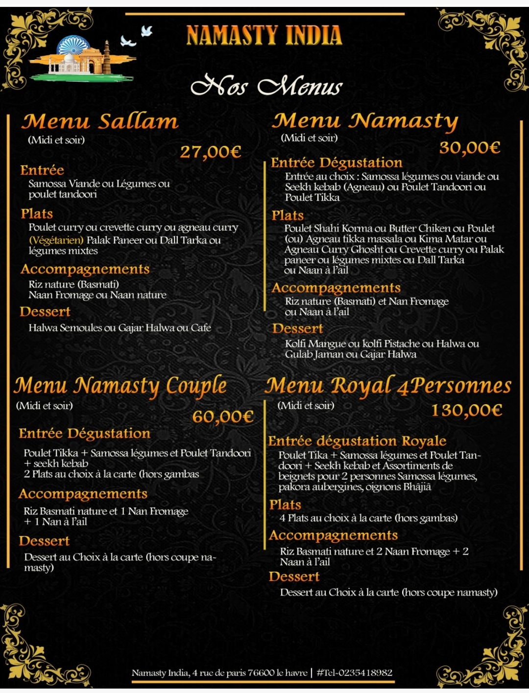 Meilleur resto Indien du Havre. Le service est exceptionnel, la nourriture excellente. J’ai pris le menu Namasty c’était parfait et très copieux :) ! Vous pouvez y aller les yeux fermés !