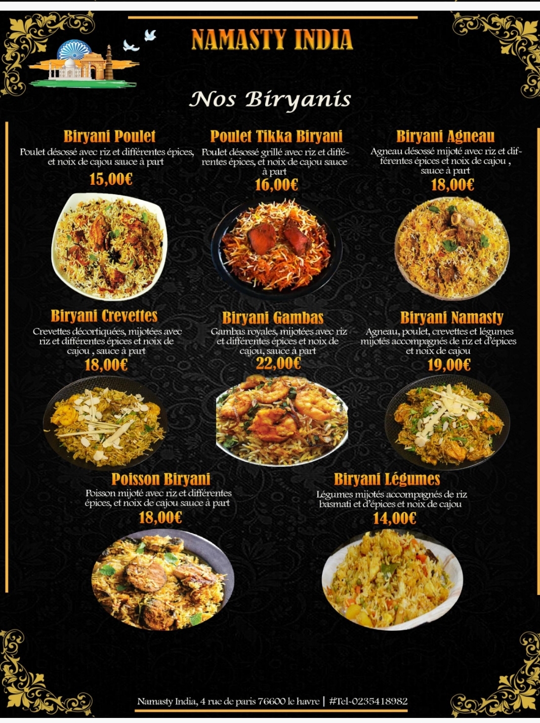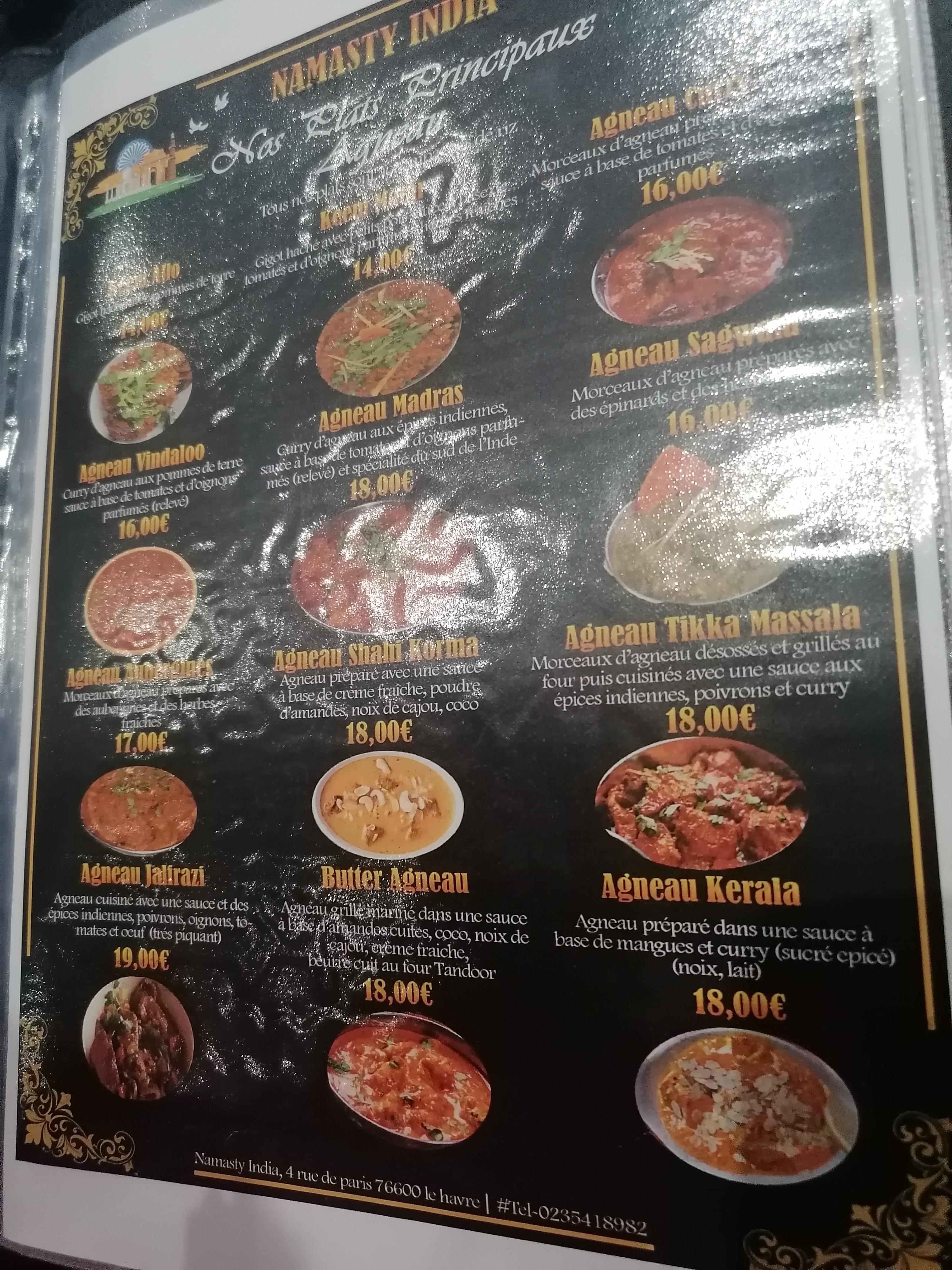 Pour toute les fois où je suis venue avec mon mari , je me régale toujours autant , service impeccable, plat délicieux en particulier l'agneau vindaloo (On fini le plat en se lechant les doigts) serveurs très professionnels très gentils. meilleur resto indien pakistanais du havre . Bref je reviendrai bientôt 🤗🤗🤗🤗🤗