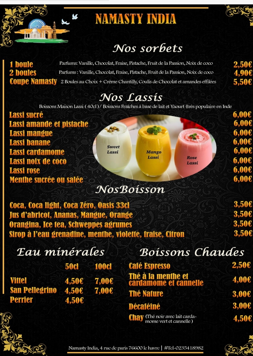 Accueil chaleureux, de bons plats, lassi (s) excellents, petit bémol, pas de choix de desserts dans les formules menu et prix relativement élevés