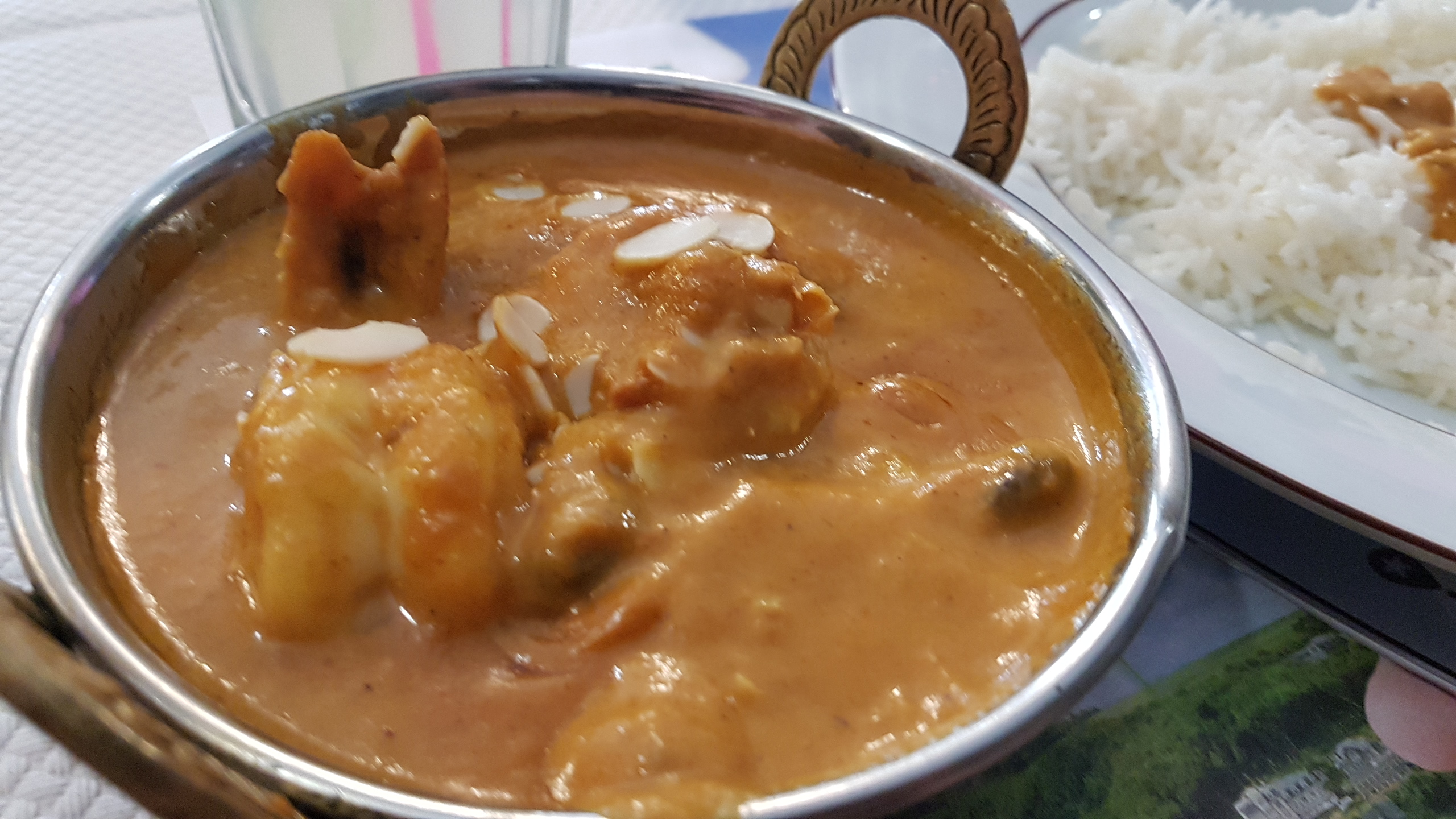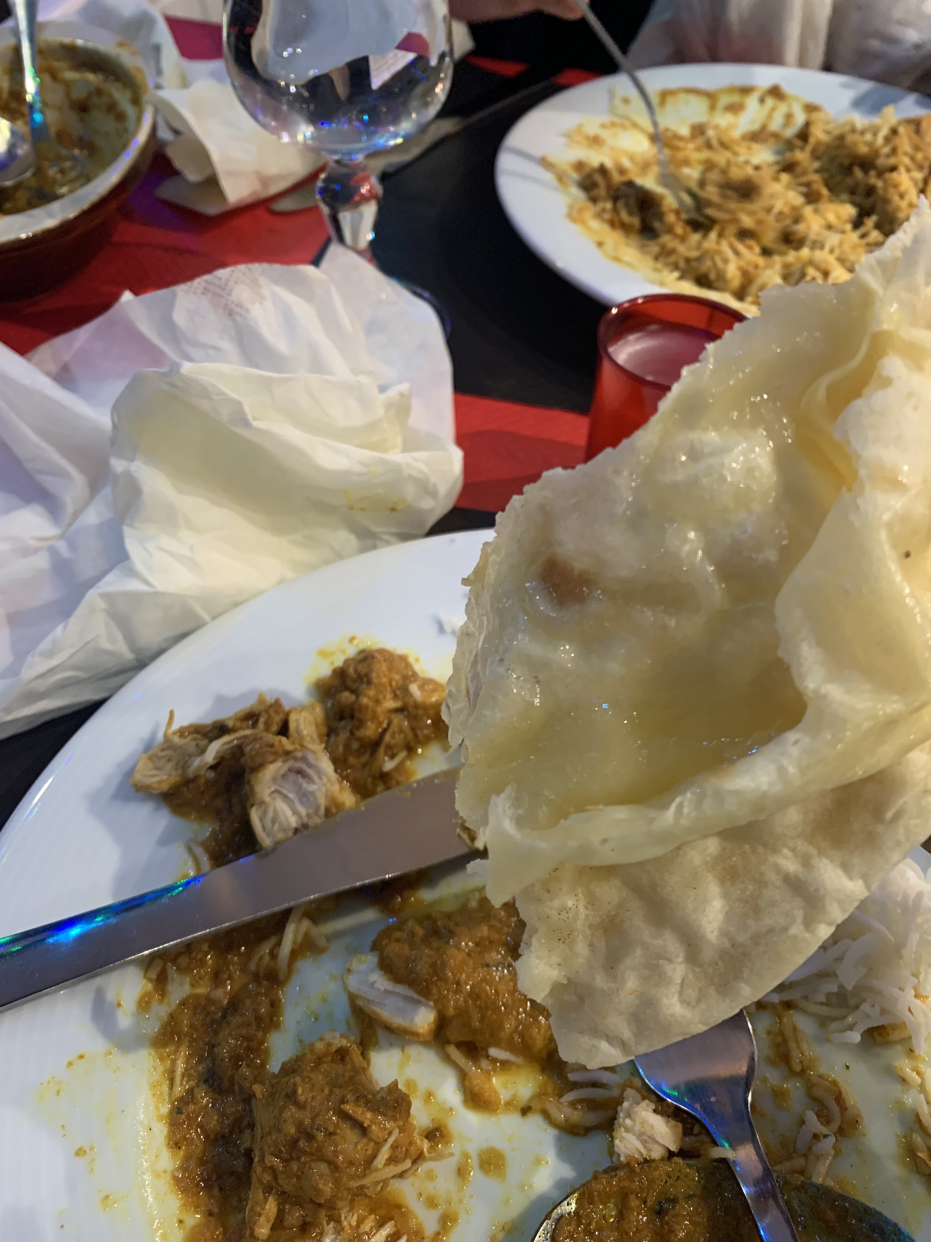 Repas livré par deliveroo. Ras sur la livraison. Les naams étaient bons, les entrées egalement mais je cherche encore le poulet dans ma sauce Madrassi, certe pas mauvaise mais 4 petits morceaux de poulet c'est un peu limite, heureusement qu'il y avait beaucoup de riz...