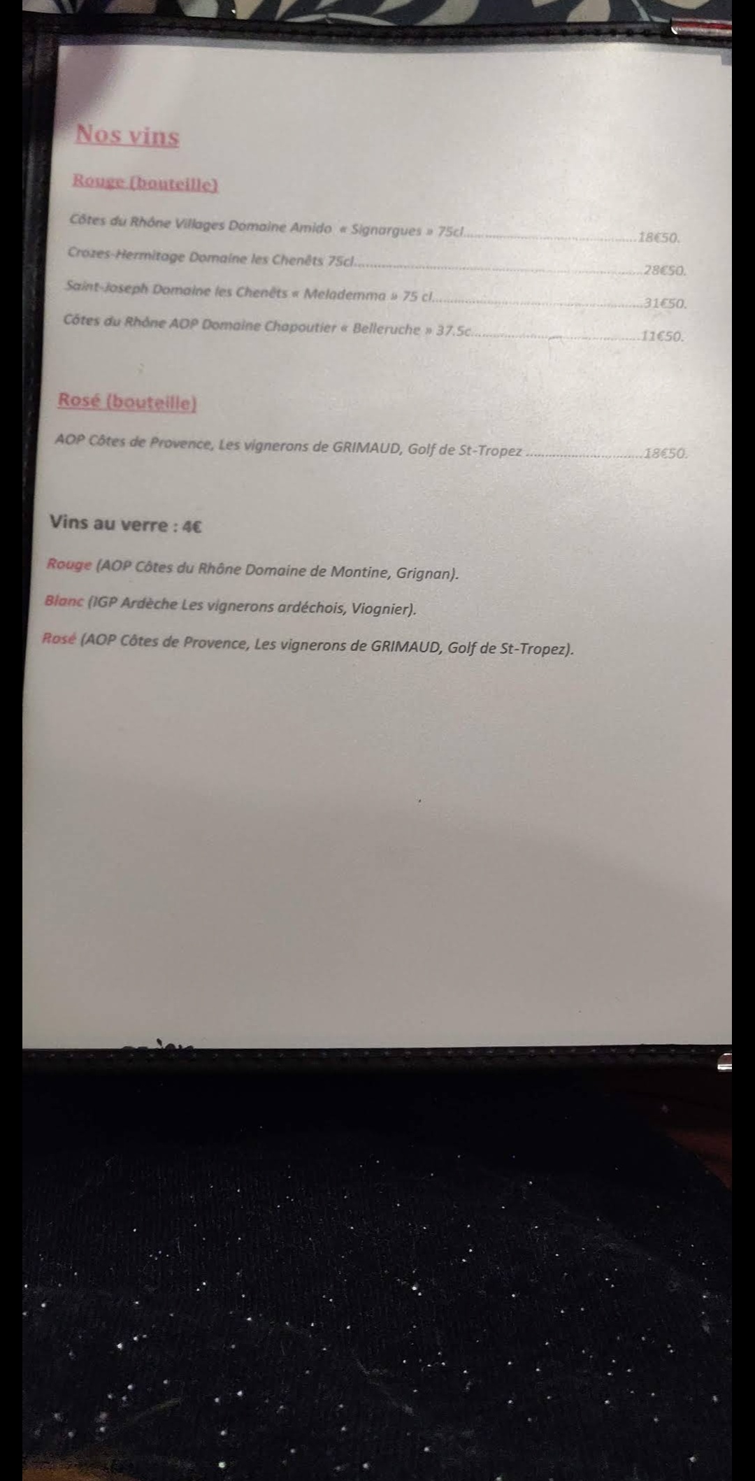 Très très bon Accueil très bien Patron très accueillant Par contre je trouve très très cher, table à 2 pour 71,50 2 entrées 3 pains aux fromages 2 plats 1 desserts 1 coca 1 vals 75cl