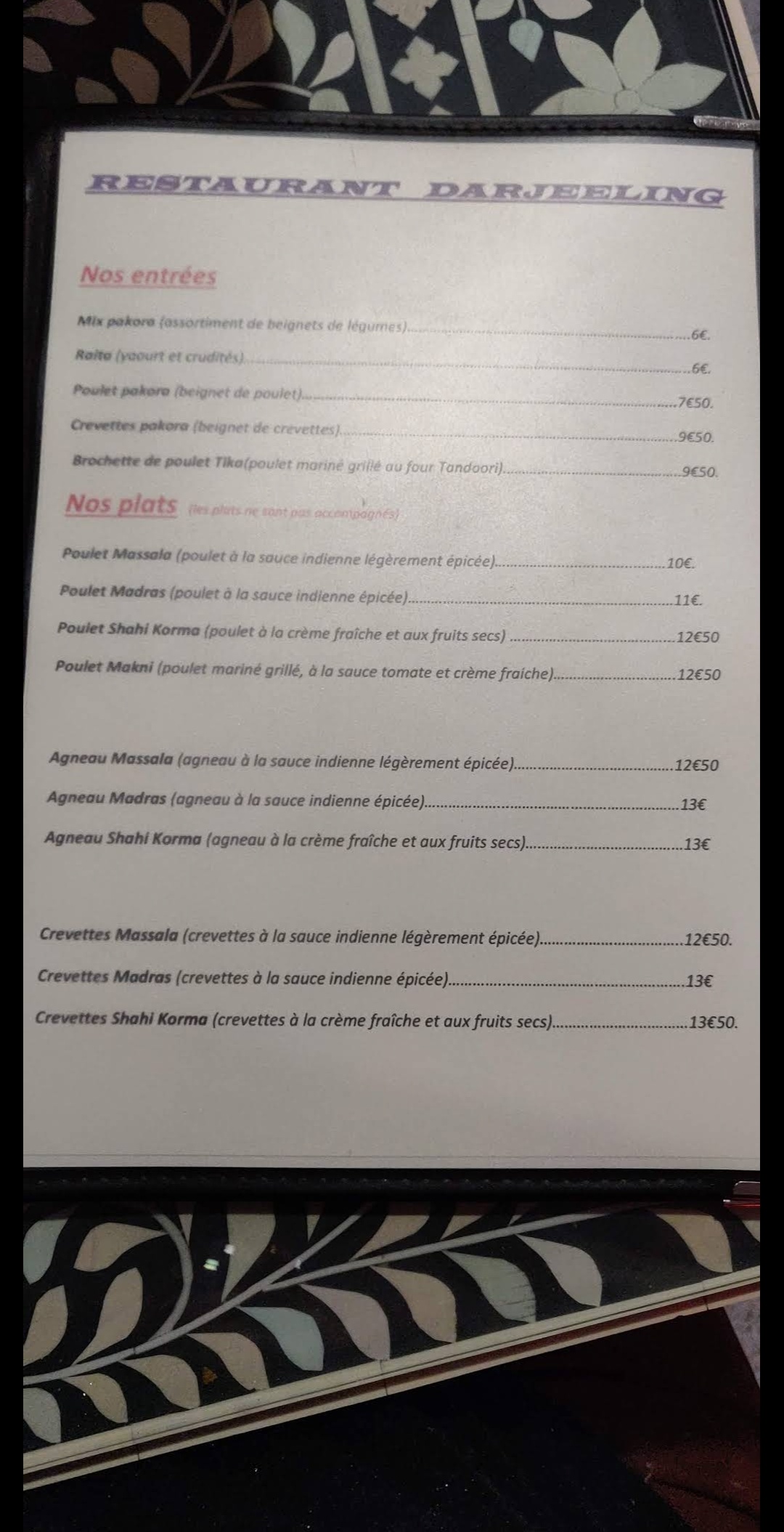 Une très belle expérience ! De l'humour et la sympathie du gérant à la présentation soignée et a la nourriture succulente je conseille très vivement le New Darjeeling, le meilleur restaurant indien de la région !