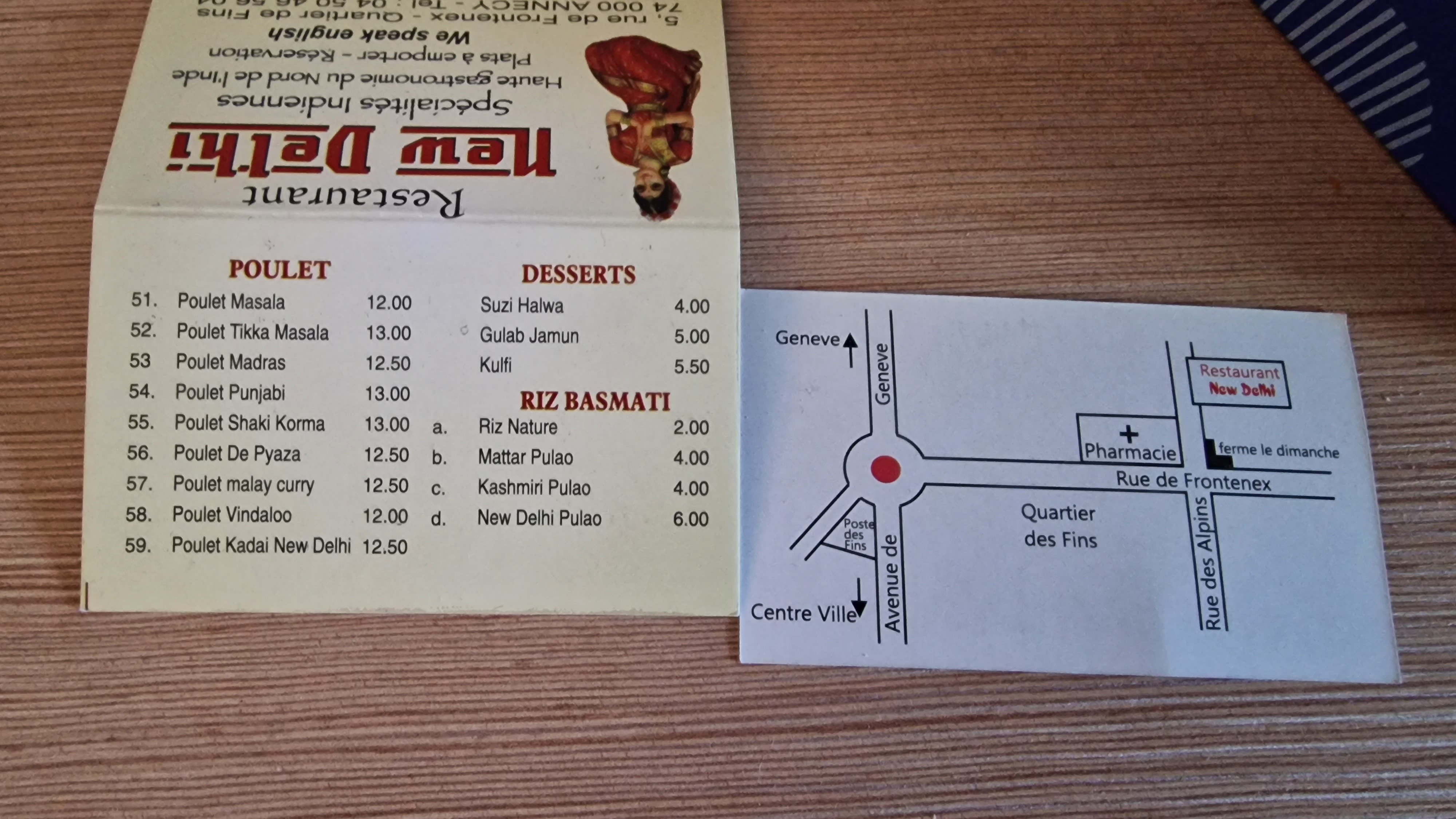 Toujours le meilleur restaurant indien authentique et incontournable sur Annecy Une carte et menu suffisamment riche sans s éparpillé dans un style de restaurant voulant tout faire.. Demander à n importe quel Annecien et sans exception tout le monde le connaît est ok pour dire que c est le meilleur en plus maintenant il y a la climatisation qui empêche les odeurs de rester sur nos vêtements Mais ce qui fait aussi son charme c est le sourire et la gentillesse du propriétaire cuisinier dans l ame et la charmante serveuse toujours rayonnante On peut également venir chercher son repas pour emporter c est génial tout est minutieusement bien préparé. Voilà a tous ceux qui ne connaissent pas encore foncez vous ne le regretterez pas et au nouveau touriste ou autre qui cherche un endroit un peu sorti de la ville pour passrr un agreable moment en couple ou entre amis ne chercher plus vous avez l adresse..