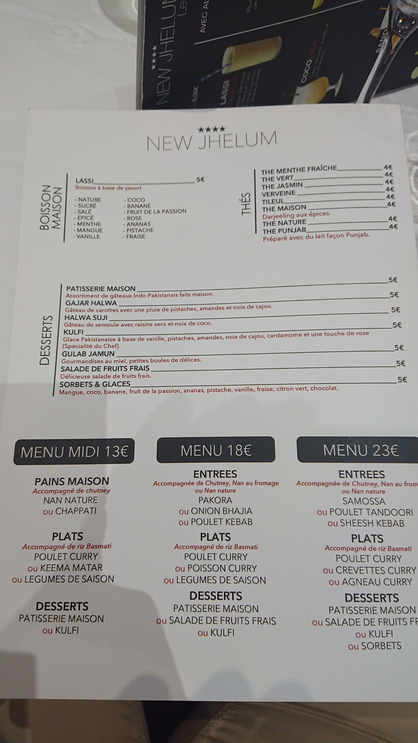 Deuxième fois que je viens à New Jhelum, toujours un plaisir ! Un accueil très agréable et le personnel du restaurant est toujours d’une gentillesse incroyable! Le butter chicken et les cheese Naan sont délicieux. Pour les boissons, le virgin colada et le sand island étaient parfait, rien a redire. Pour finir, le cadre est magnifique, très propre et bien décoré et les prix sont corrects. Que demander de plus ?