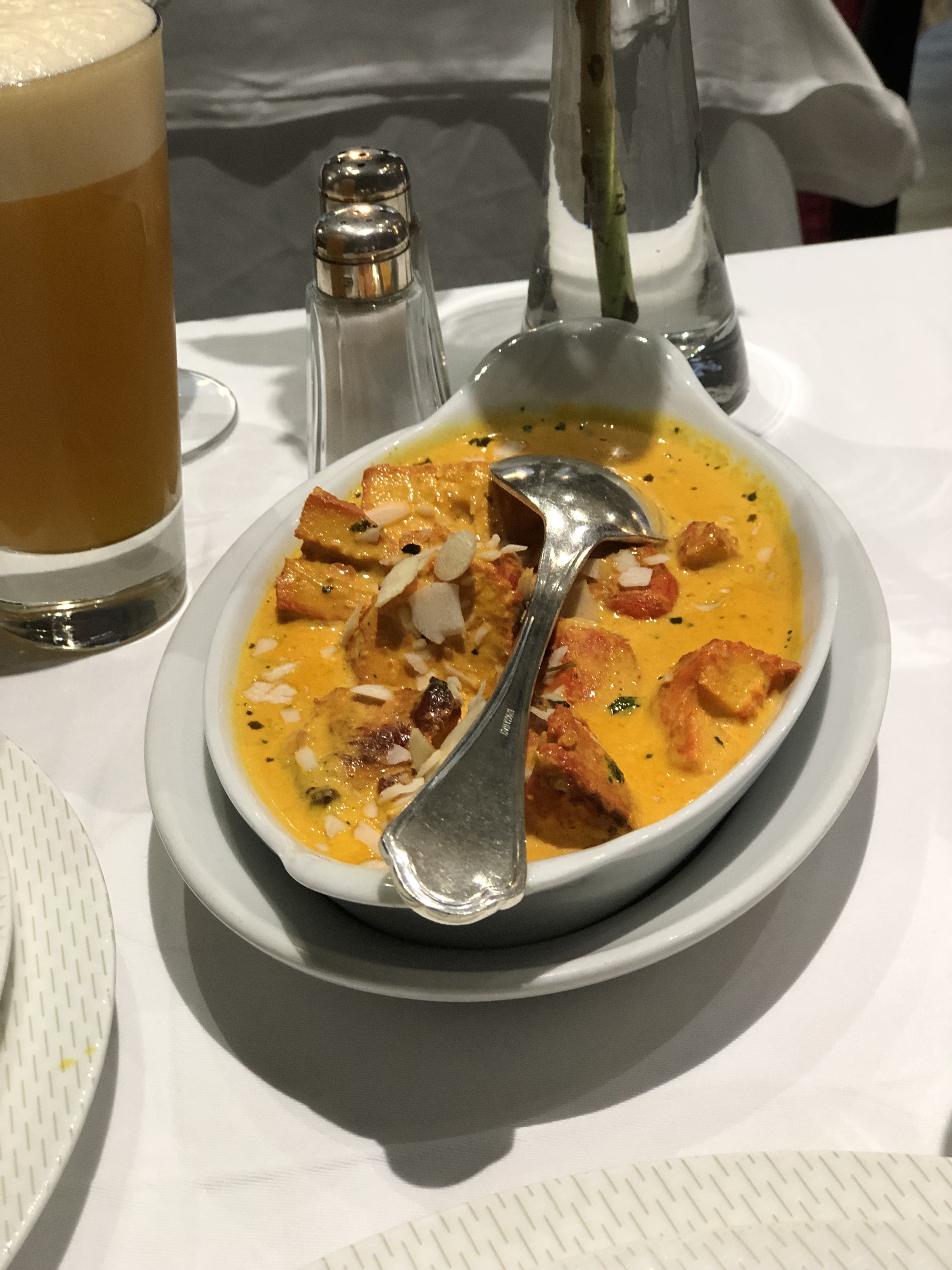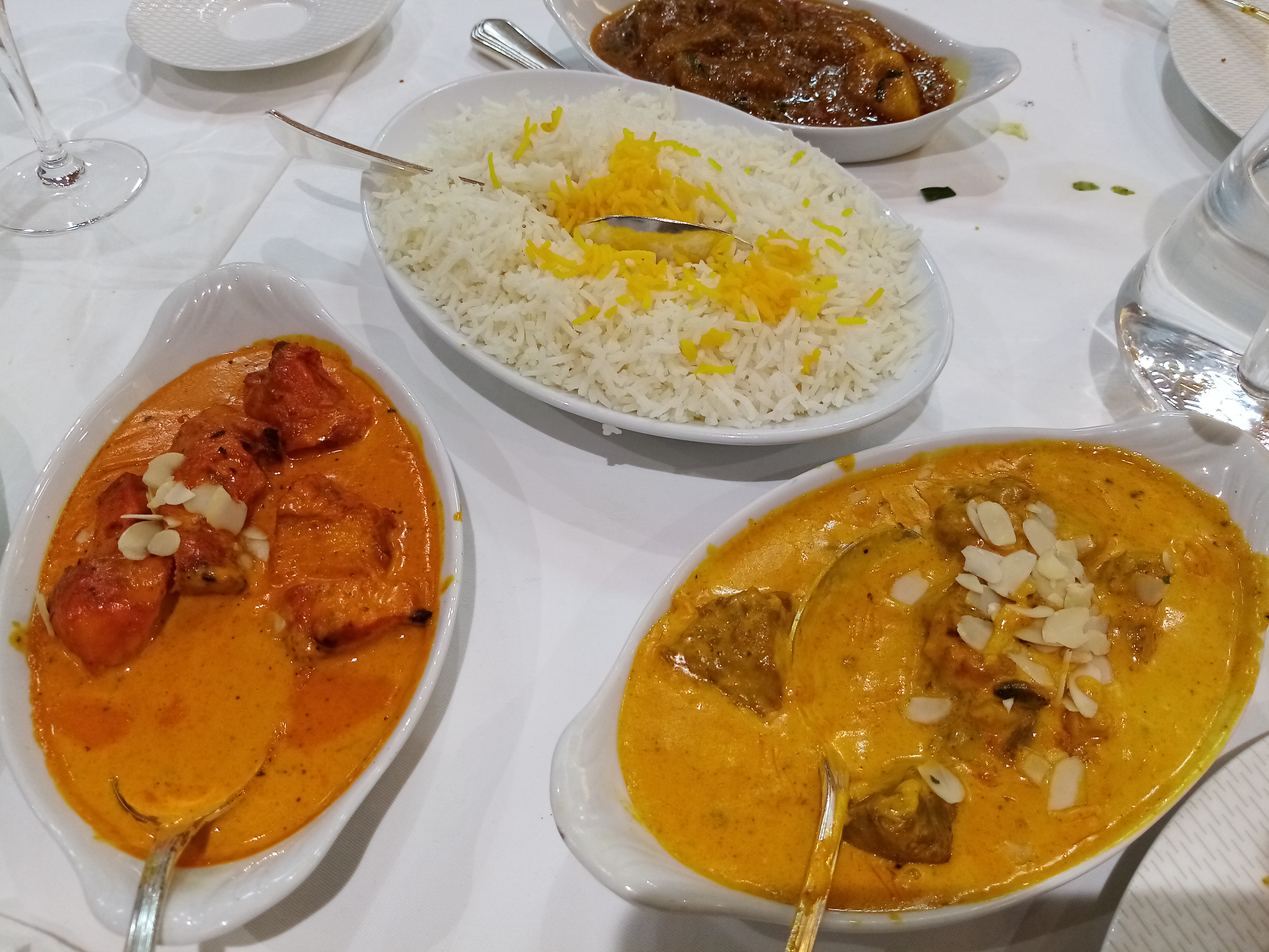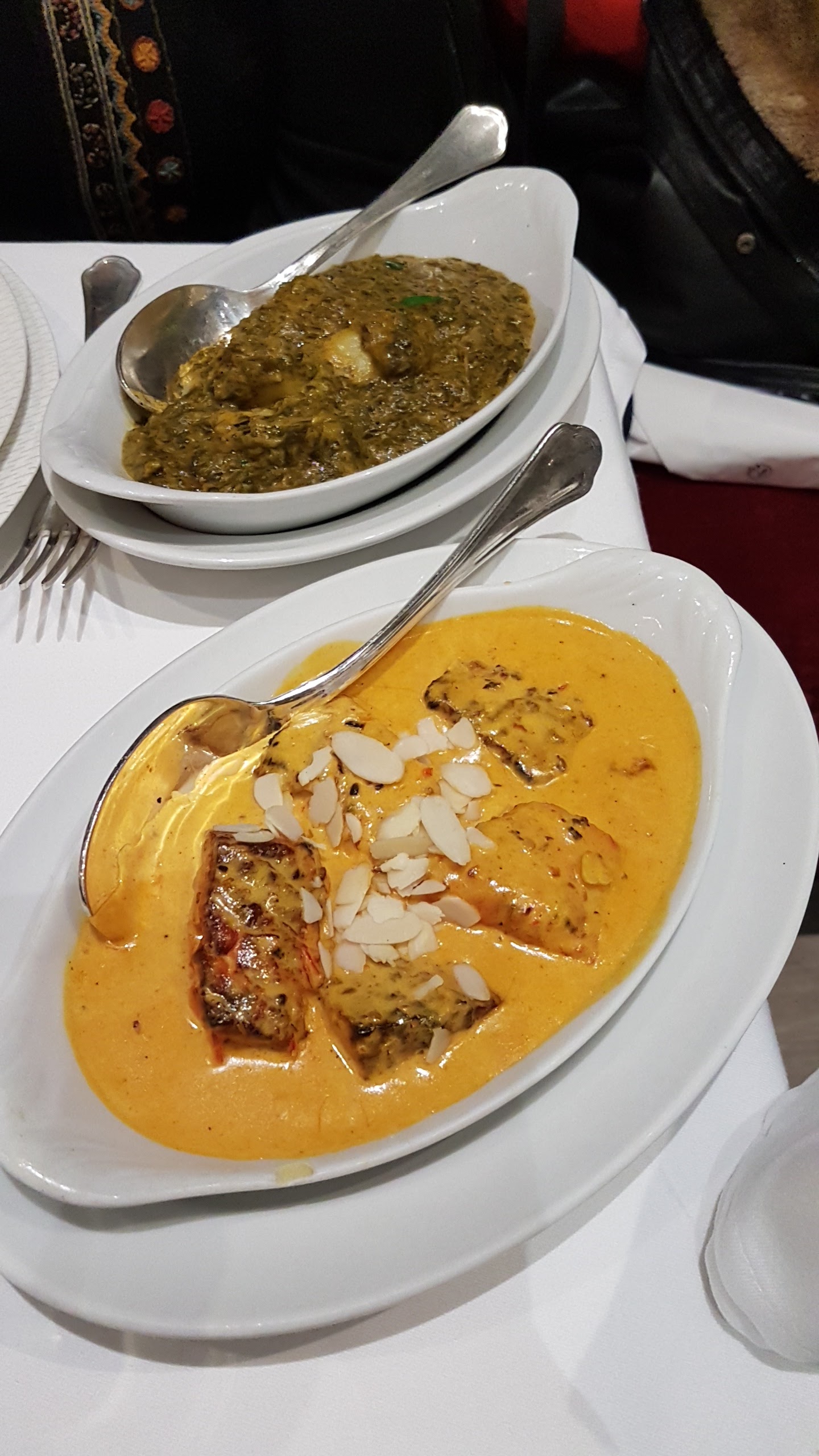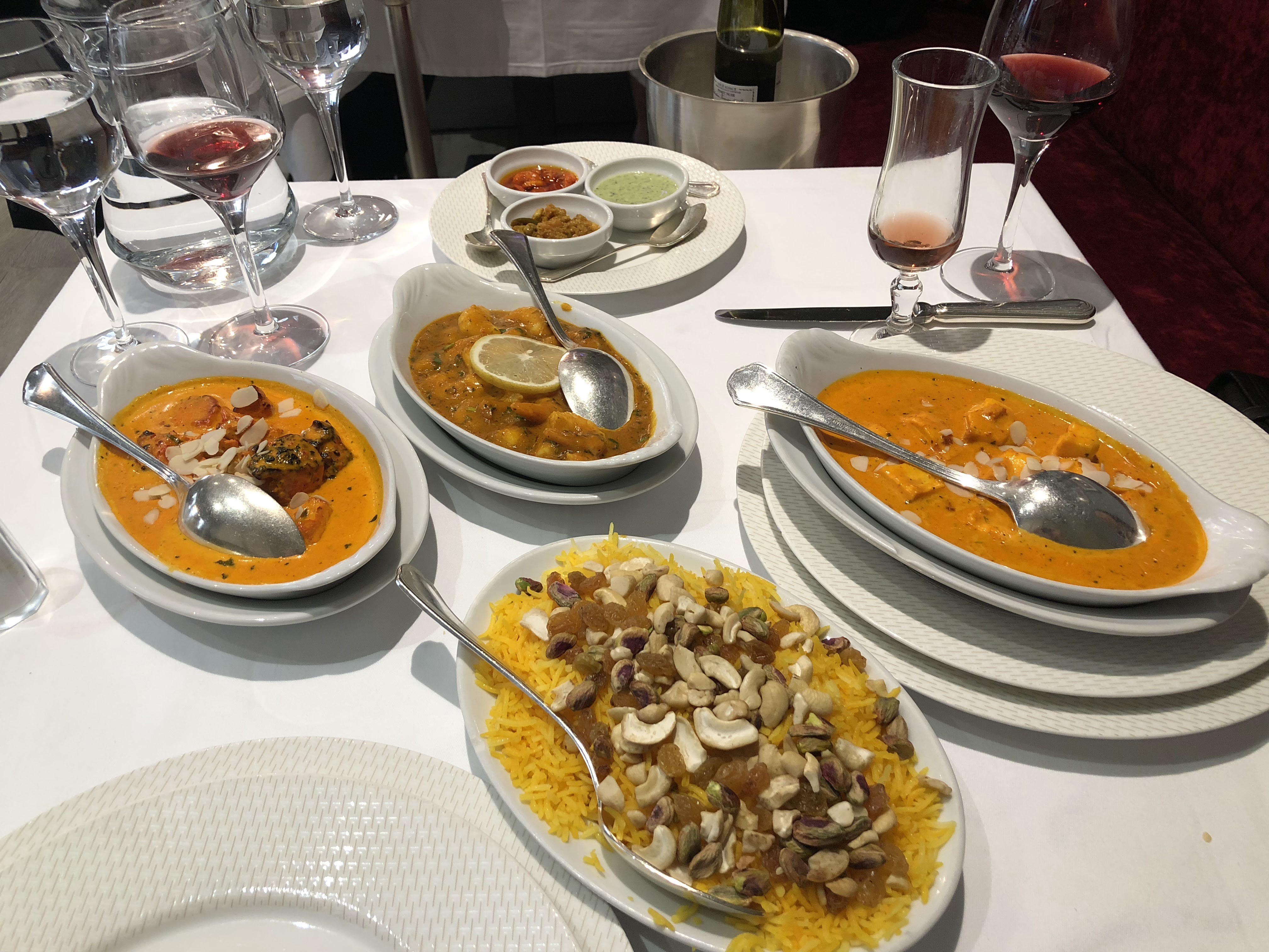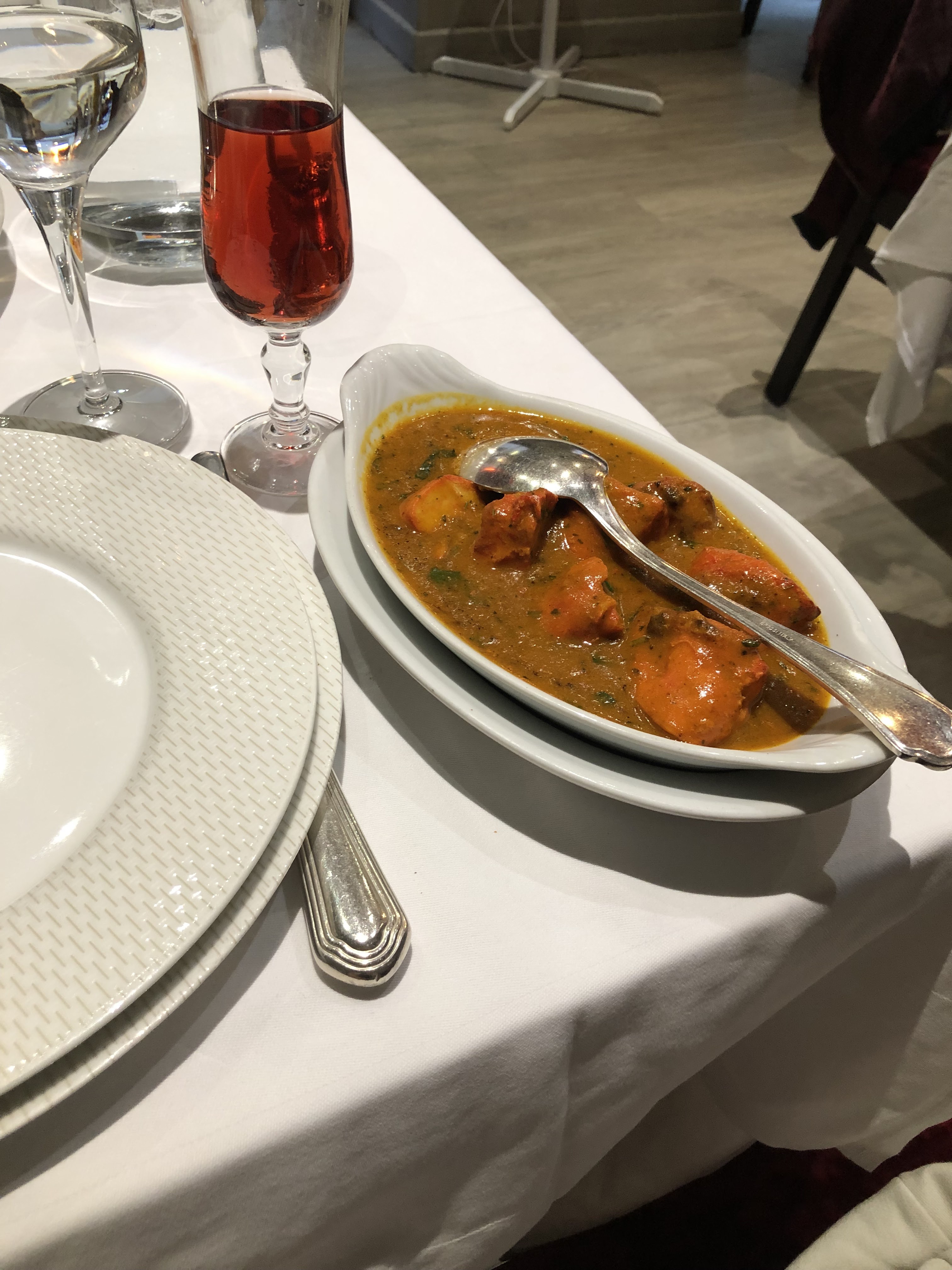 Un lieu élégant, très propre avec une équipe chaleureuse et professionnelle. Enfin un restaurant avec de vraies nappes et des serviettes en tissus, ça c’est pour le contexte et l’assiette n’est pas en reste. Excellents produit du poulet tandoori, à l’agneau massala et les cheese nan, sans parler du Kulfi en dessert un vrai délice. Nous étions édelweiss et l’addition se monte à 87€. J’y retournerai