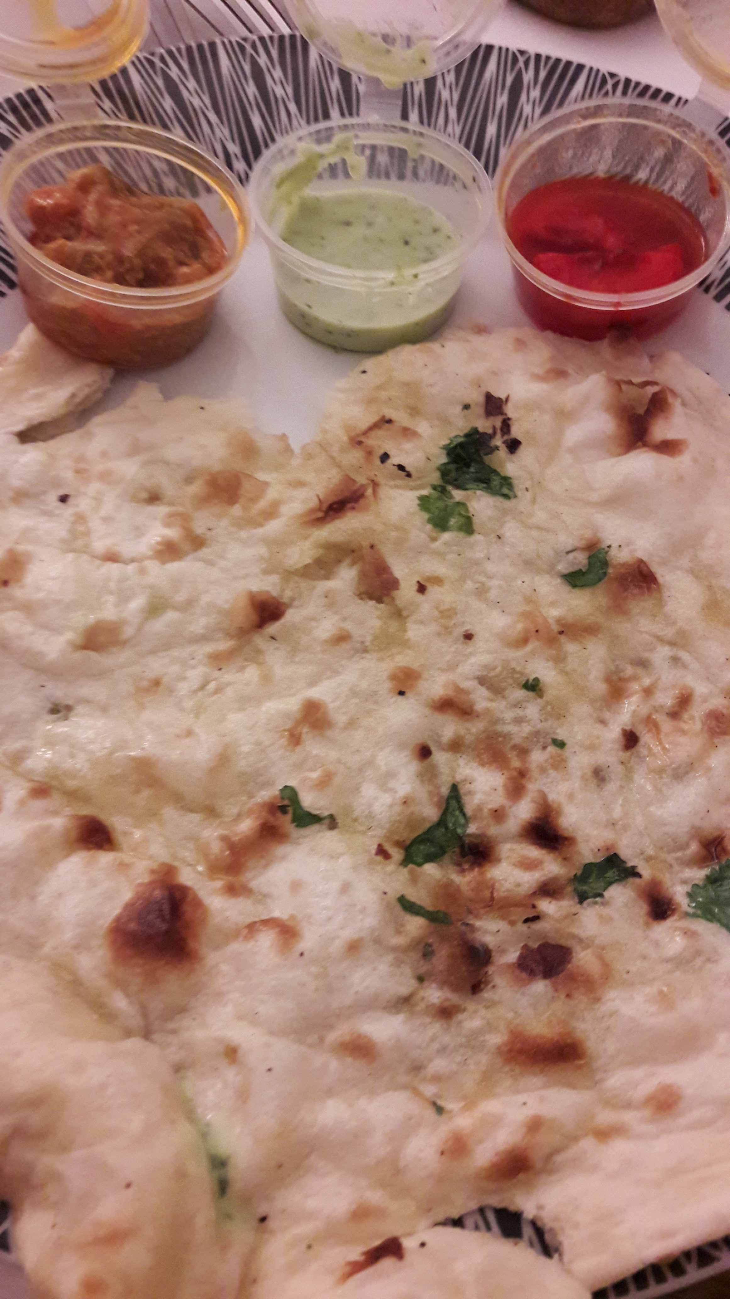 Pire indien testé sur Paris avec Deliveroo. Le butter chicken était sans saveur, de la crème avec du colorant. Les bouts de poulet étaient cramés dedans une honte. Sans parler du riz servi directement avec la sauce pour un rendu soggy à vomir et le nan au fromage si gras... ah et puis 1euros de plus pour les sauces avec des récipients à peine rempli... du vol.