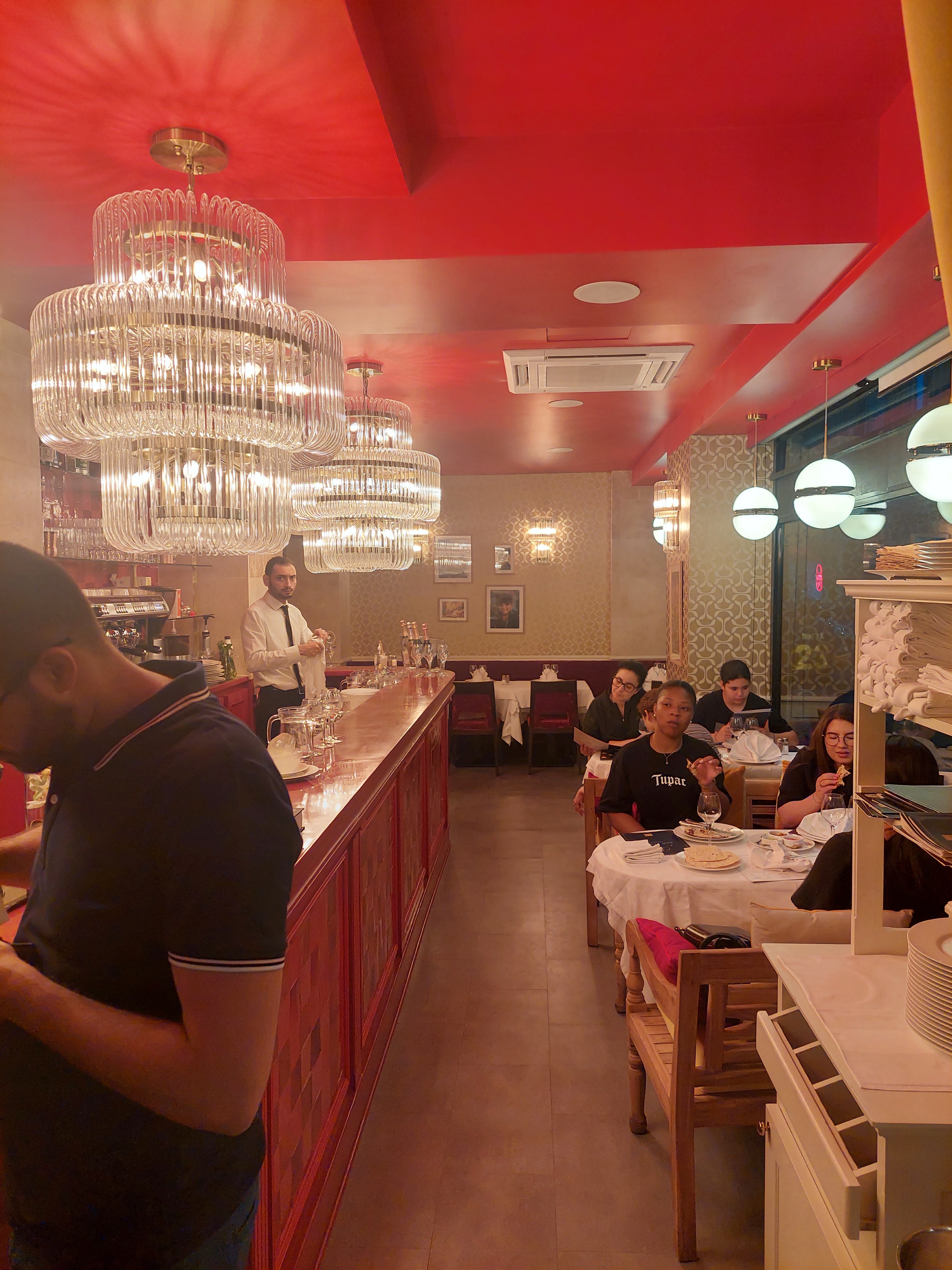 Entrez dans ce restaurant, et toute votre perception de la vie sera chamboulé. Mes ami.es et moi étions comme dans la 4eme dimension, entre les serveurs qui te servent de l'eau toute les 2 secondes et ceux qui te font des side eyes flippant avec un sourire en coin, nous étions comme dans the Truman show ! Le service est par contre irréprochable, comme les plats très bon. Une expérience particulière, mais après quelques moments gênant, c'est plutôt sympa.
