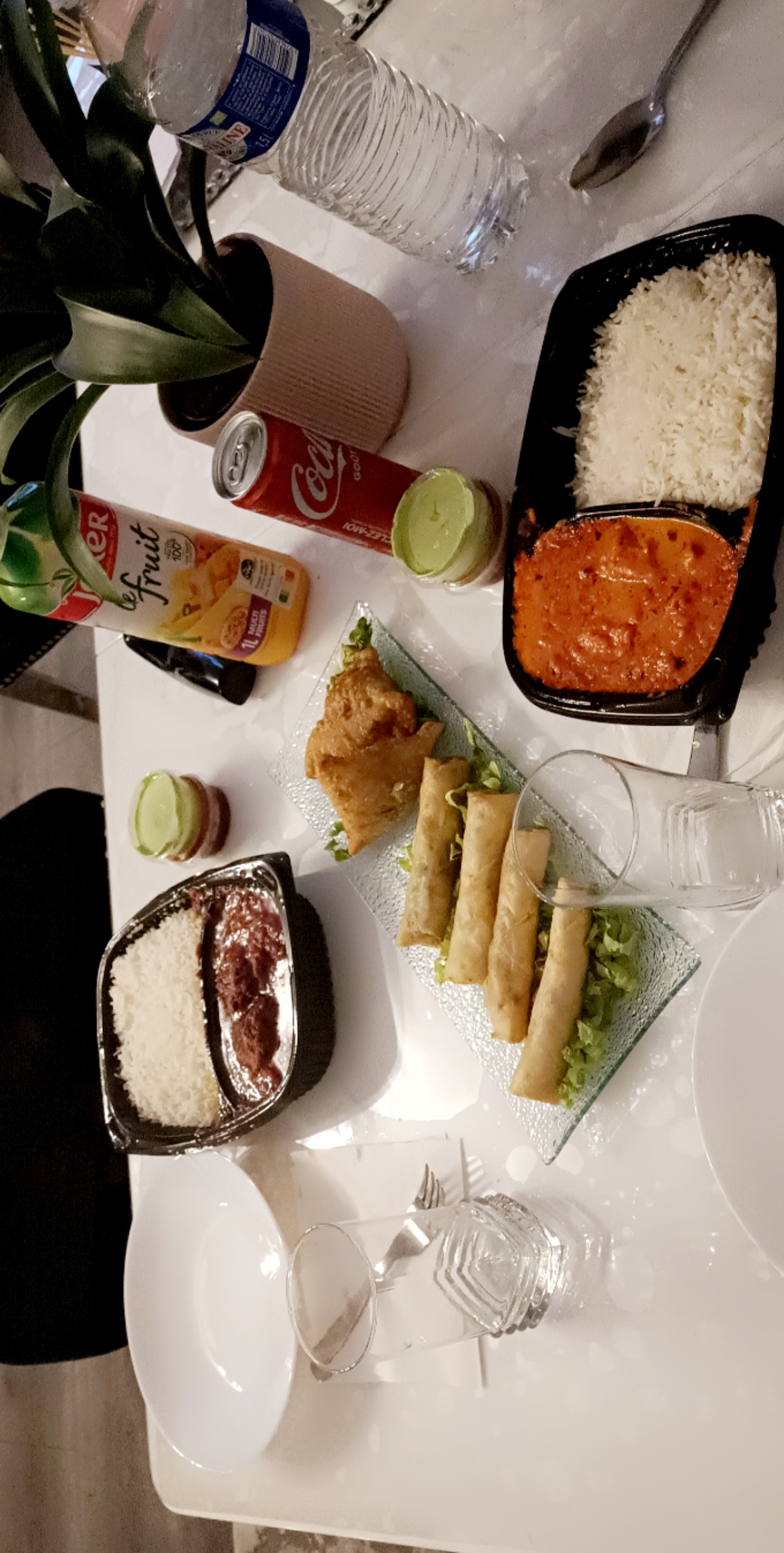 Un accueil très chaleureux !! On a pris à emporter!! C'est notre première fois. Le poulet tandoori ( c'est le meilleur que j'ai mangé) et les samoussas au bœuf étaient une tuerie. Les samoussa au poulet étaient bon mais ma préférence est celui au bœuf. J'ai pris le chicken butter ( accompagné de riz) qui était trop bon ainsi que les naans. Le lassi mangue était bon. Les portions sont généreuses. Je recommande sans hésitation. Le prix est plus que correct par rapport à la qualité et à la quantité.