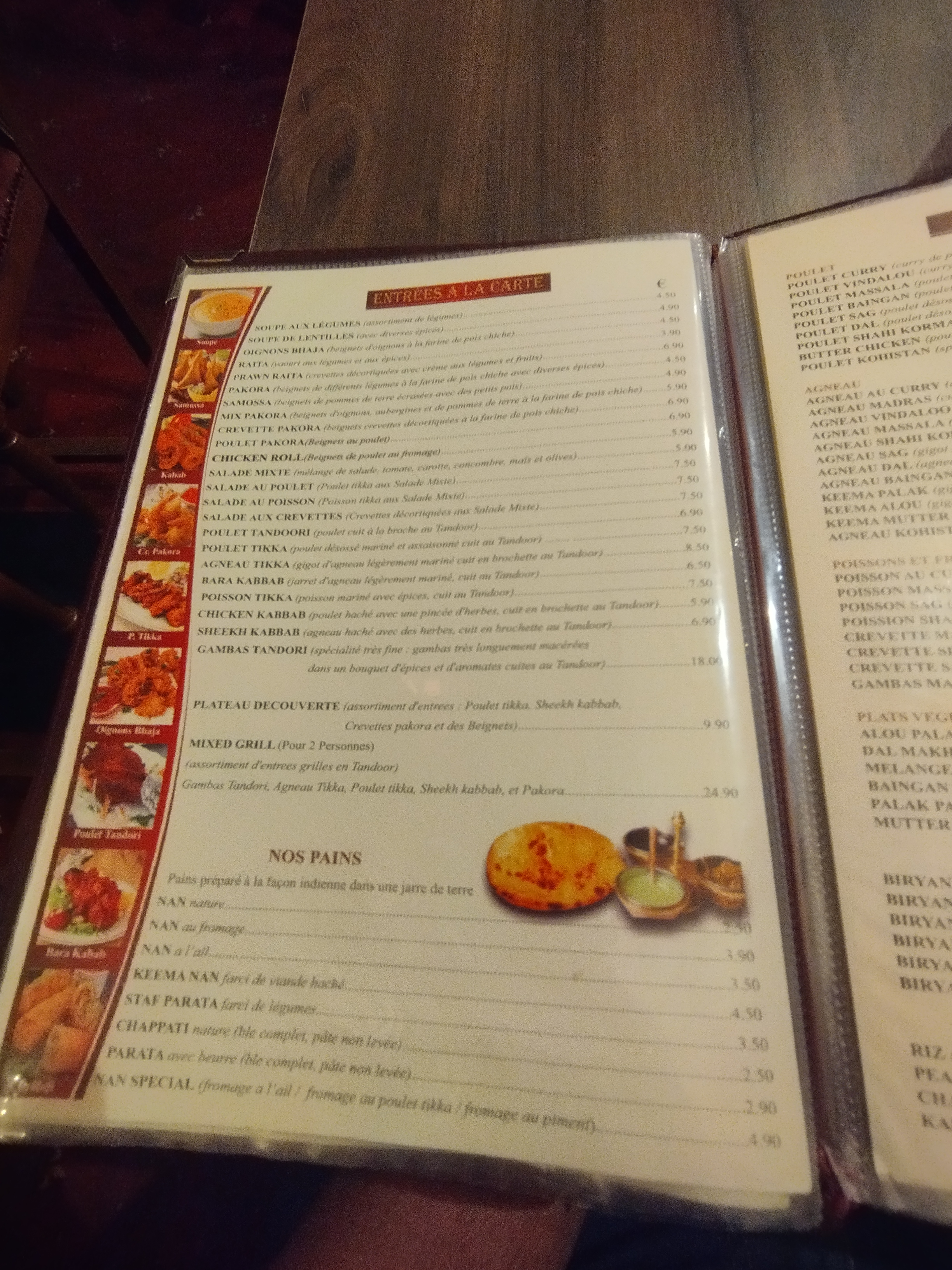 Tres bon accueil et tres bon service. Nous n'etions pas sur en entrant dans le restaurant vu que nous ne connaission que tres peu la cuisine Indienne mais sommes ressorti sans prendre de dessert car deja bien nourri juste avec entre et plat. A recommander et a essayé pour ceux qui ne connaisse pas. Un pur plaisir. Meme au 2eme passage toujours bien nourris.
