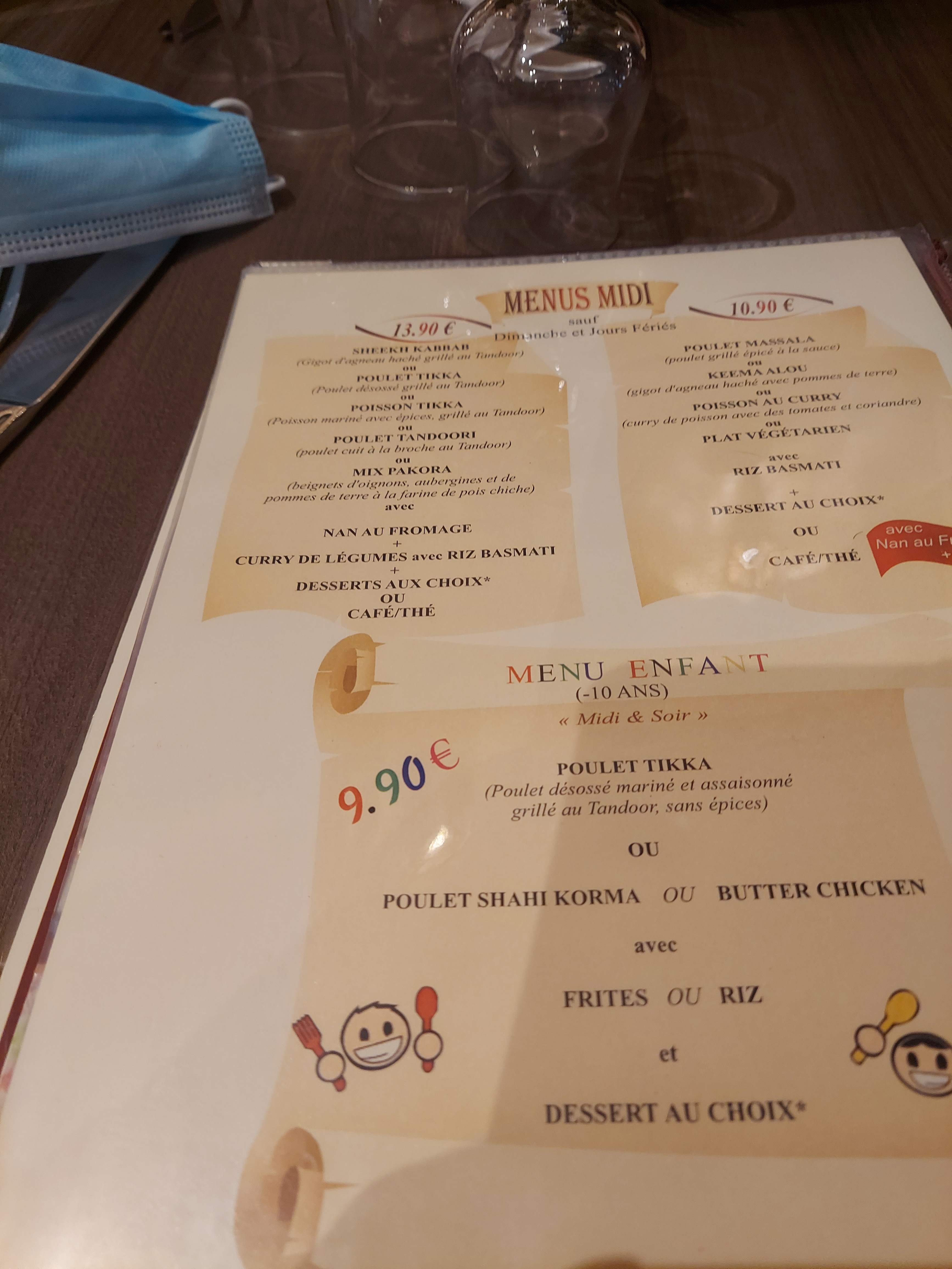 Beau restaurant, serveurs agréables, assiettes copieuses, bien présentées et excellentes. J'ai été agréablement surprise de ne pas trouver les fameux nuggets dans le menu enfant, ma fille a pris le poulet tikka et c'est vraiment régalée. - Bref une très bonne expérience à refaire -