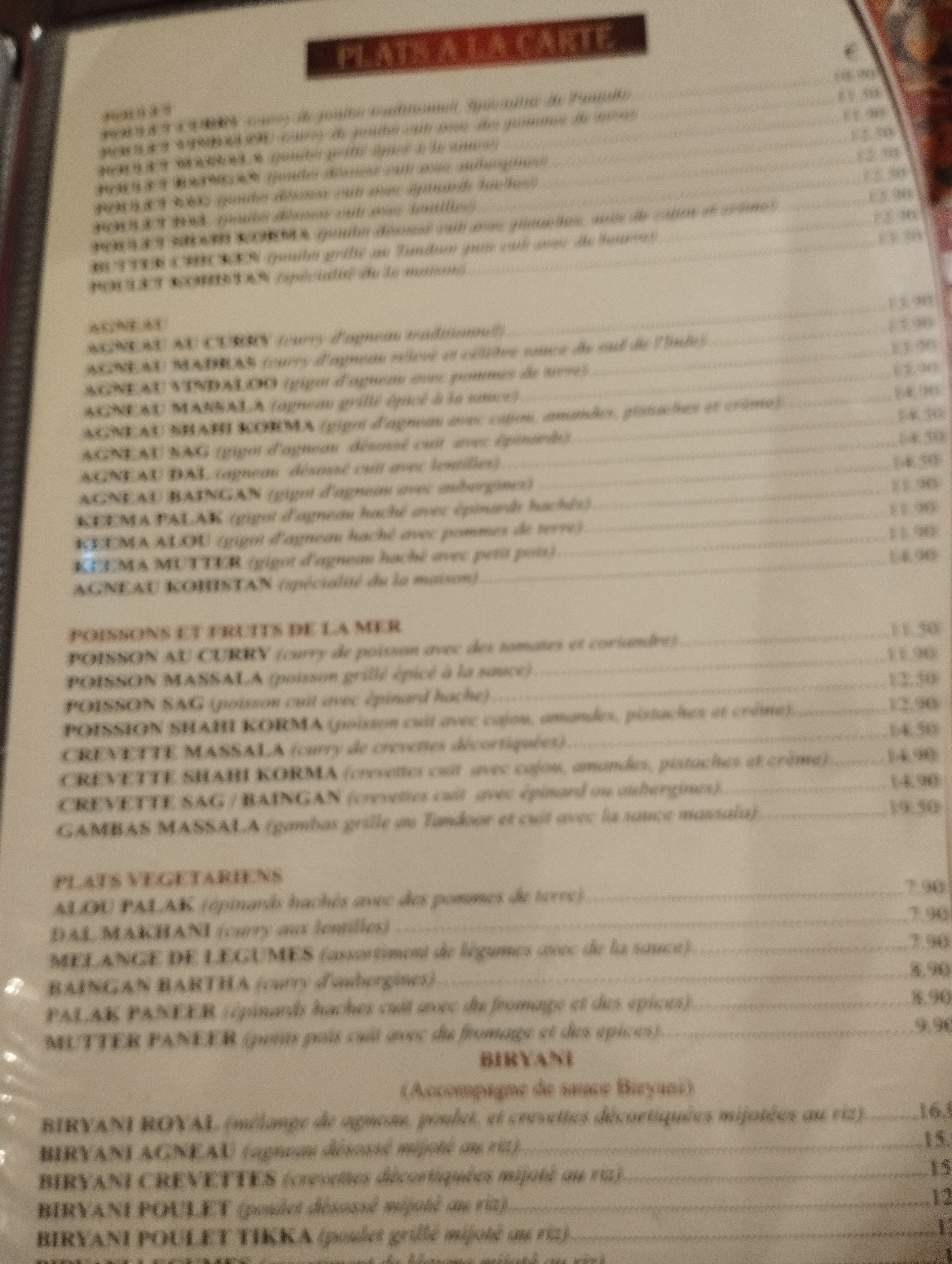 Presque 30 ans que nous venons régulièrement dans ce restaurant, mais vraiment la prestation n'est plus à la hauteur. Les plats n'ont pas le goût des épices annoncées, beaucoup trop de crème et un manque de finesse pourtant tellement représentative de la cuisine Indienne. Sans parler des sonneries incessantes ubereats, qui de fait, pour respecter les délais de livraison, engendre une attente importante pour les clients en salle. Le personnel reste sympathique, mais bien moins attentif. Vraiment très décevant... Dommage.