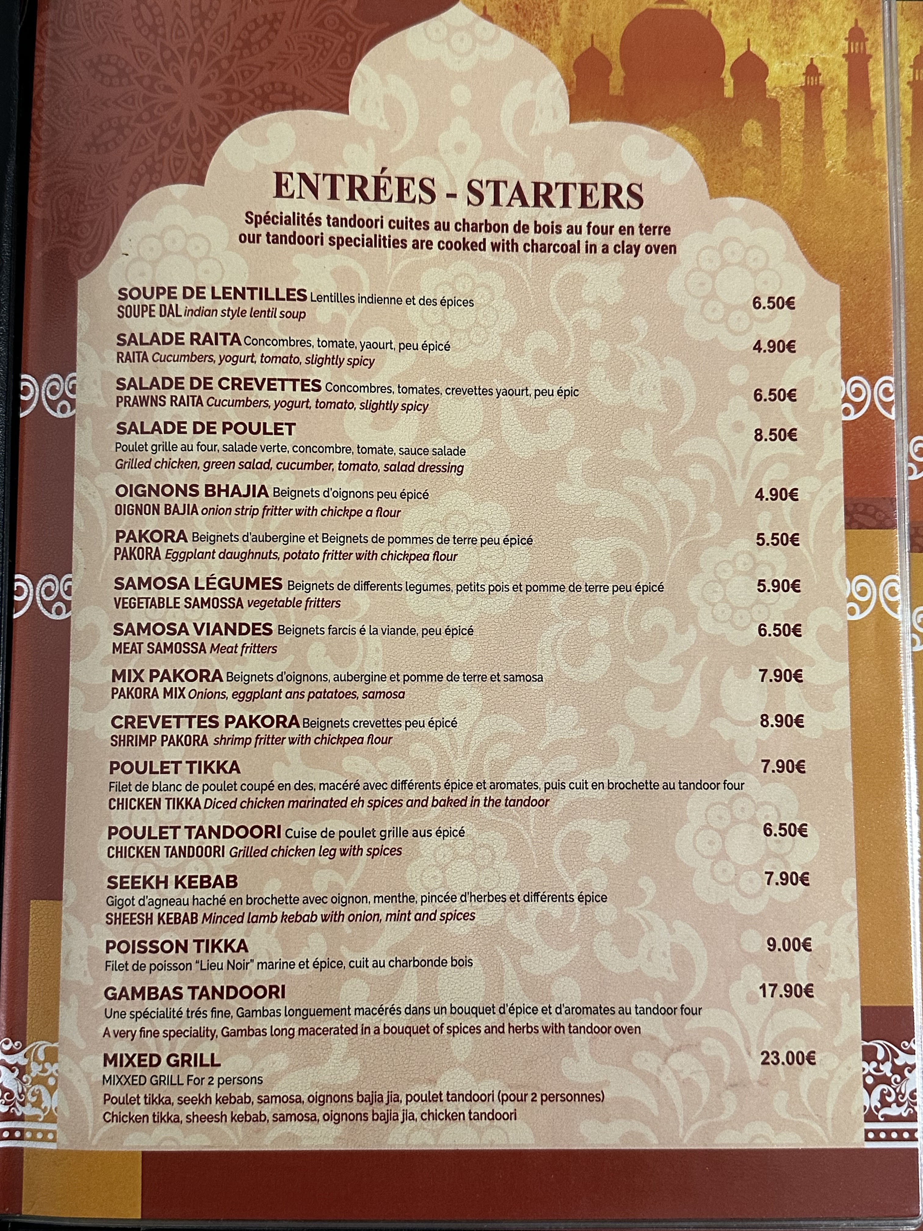 Première fois que je mange indien et je recommande largement! Accueil chaleureux, prise en charge aussitôt et personnels très sympathique. Les plats sont très bons et très copieux, il y a des repas qu’à base de légumes ce qui est agréable pour les vg. Un très large choix d’entrées/plats/desserts et des tarifs très attractifs surtout pour les menus. Je recommande très fortement.
