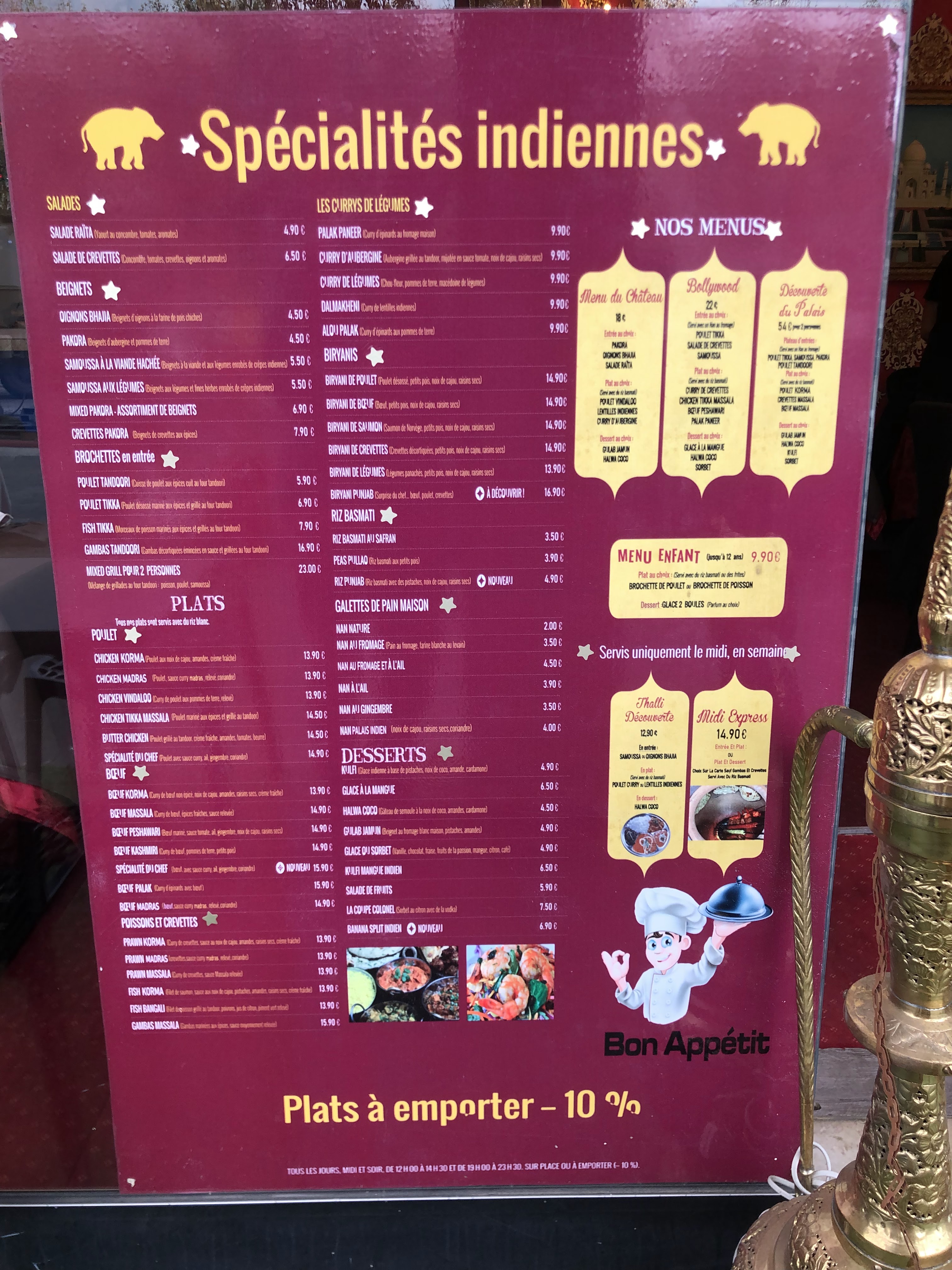 J’ai mangé ce soir au palais indien avec mon mari ,franchement c’était super : présentation ,goût, accueil. Je vous le recommande on a passé un moment très sympa
