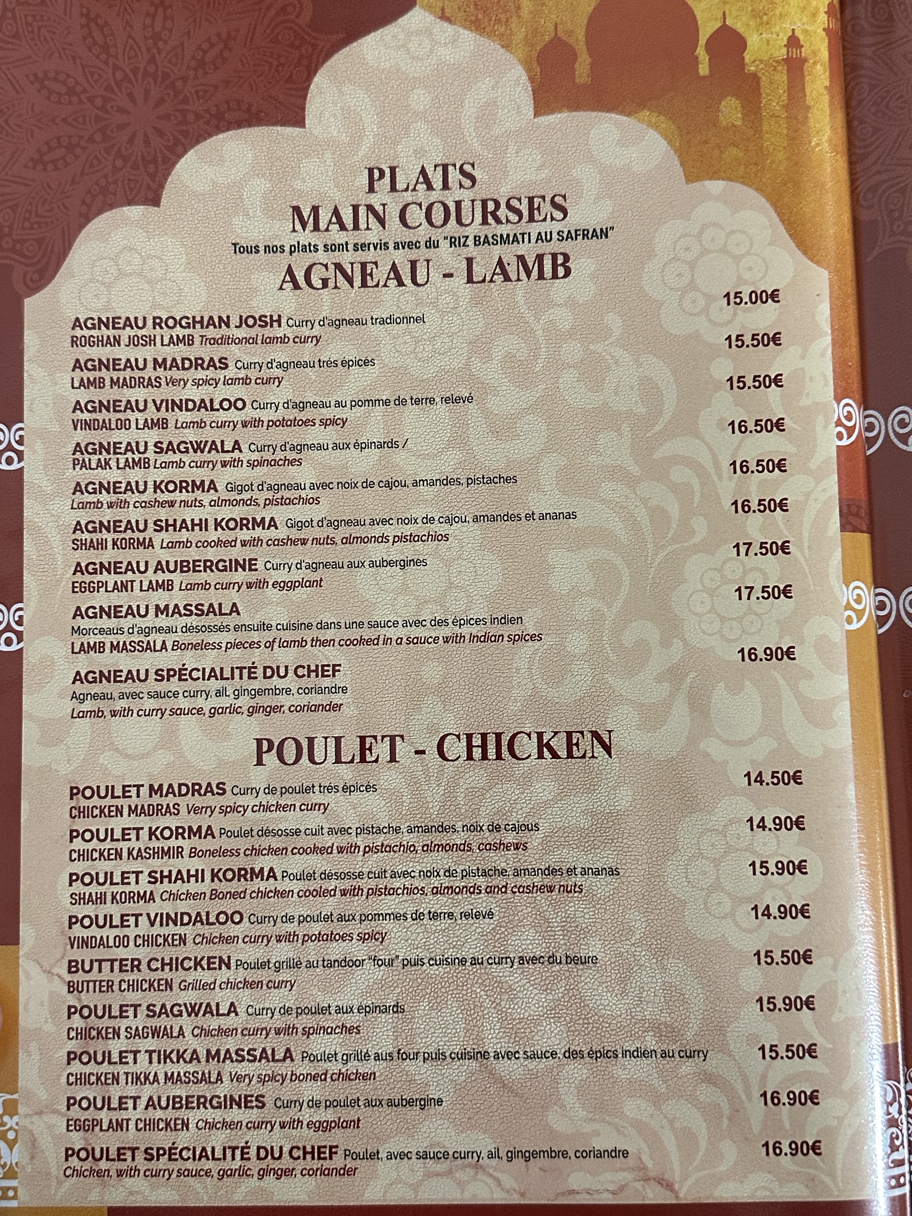 De passage sur la commune de Lisieux, étant d’origine indienne et ayant fait de nombreux restaurants indiens, je n’ai pas compris le concept de mettre des feuilles salades presque noire autour du biryani et de servir la viande telle que du butter chicken et bœuf vindaloo dans des assiettes creuses.. Une galère sans nom pour manger,
