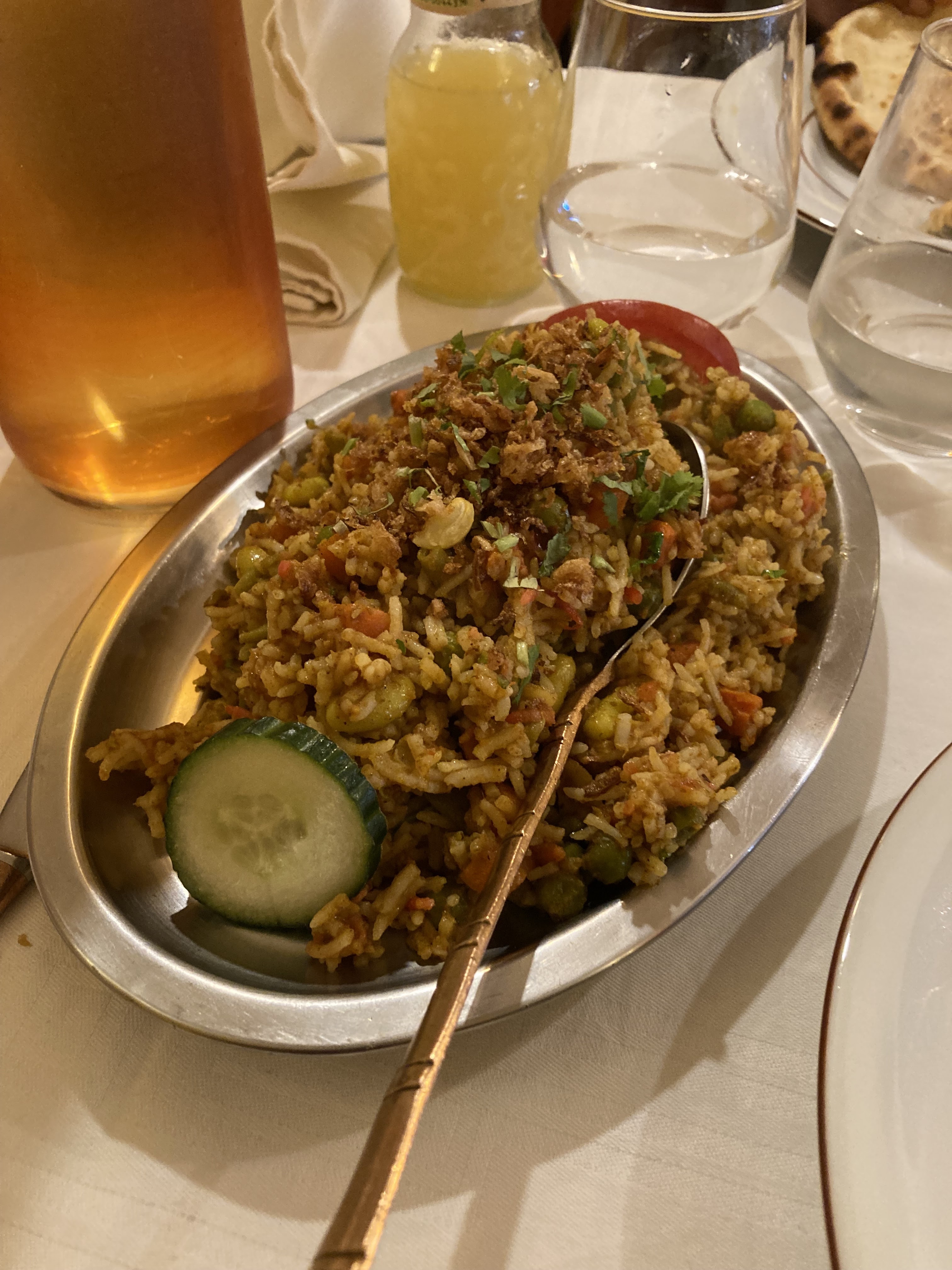 Nourriture excellente, ambiance agréable. Seul défi - les tables sont un peu petites - pas adaptées à la quantité de nourriture que vous commanderez (en supposant que vous ayez un goût pour la cuisine indienne).