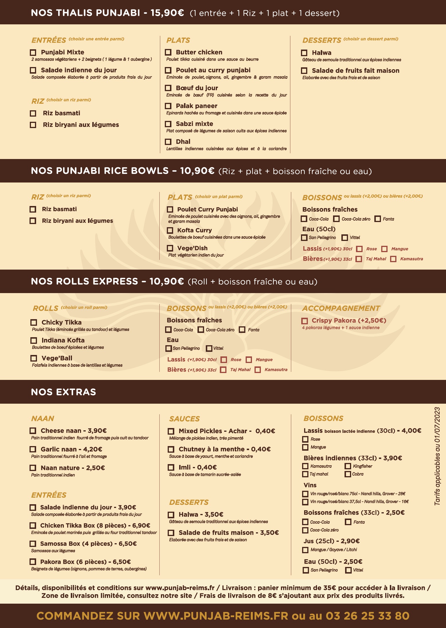 Un buffet à volonté plutôt très bien garni pour un tarif raisonnable (15,90 €) mais les nans et les boissons sont en sus. Les entrées sont très bonnes (mention spéciale pour les beignets pakora d'aubergines), les plats sont de qualité variable (le biryani de poulet est un peu triste pour un biryani mais le butter chicken est impressionnant), et les desserts sont suffisamment variés pour que chacun trouve son plaisir.