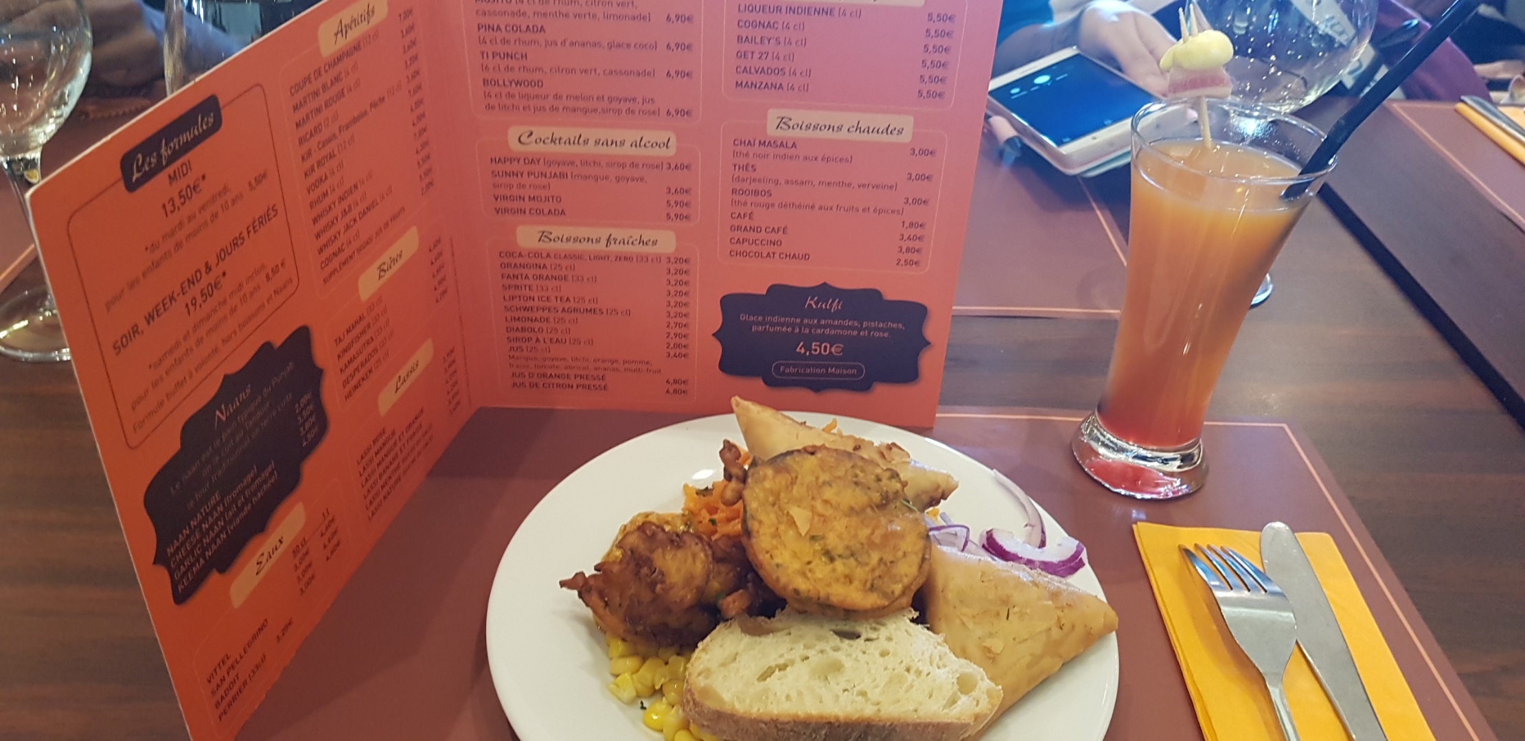 Dans l'ensemble entrée-plat était bon,par contre le naan au fromage était pas top et les dessert pas top,celui au potiron est écœurant.Au moment du paiement, choquée qu'un enfant de 8 ans soit comptabilisé en menu adulte.